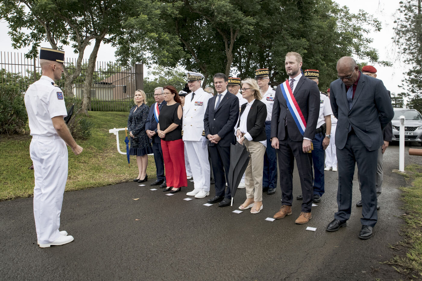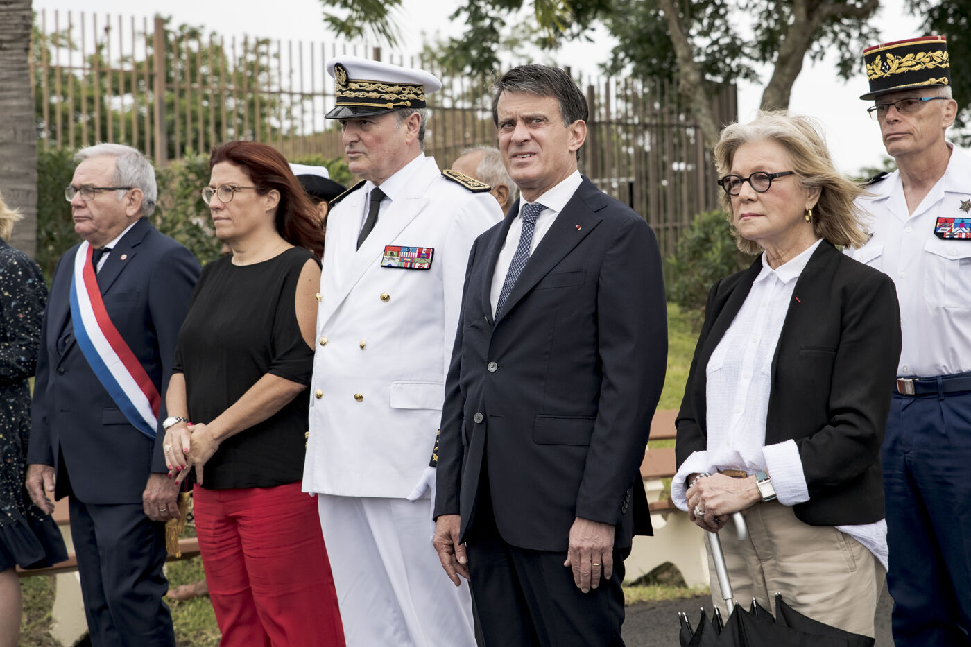 Nouvelle-Calédonie - Dépôt de gerbe par le nouveau Haut-Commissaire de la République Jacques Billant durant la visite officielle de Manuel Valls