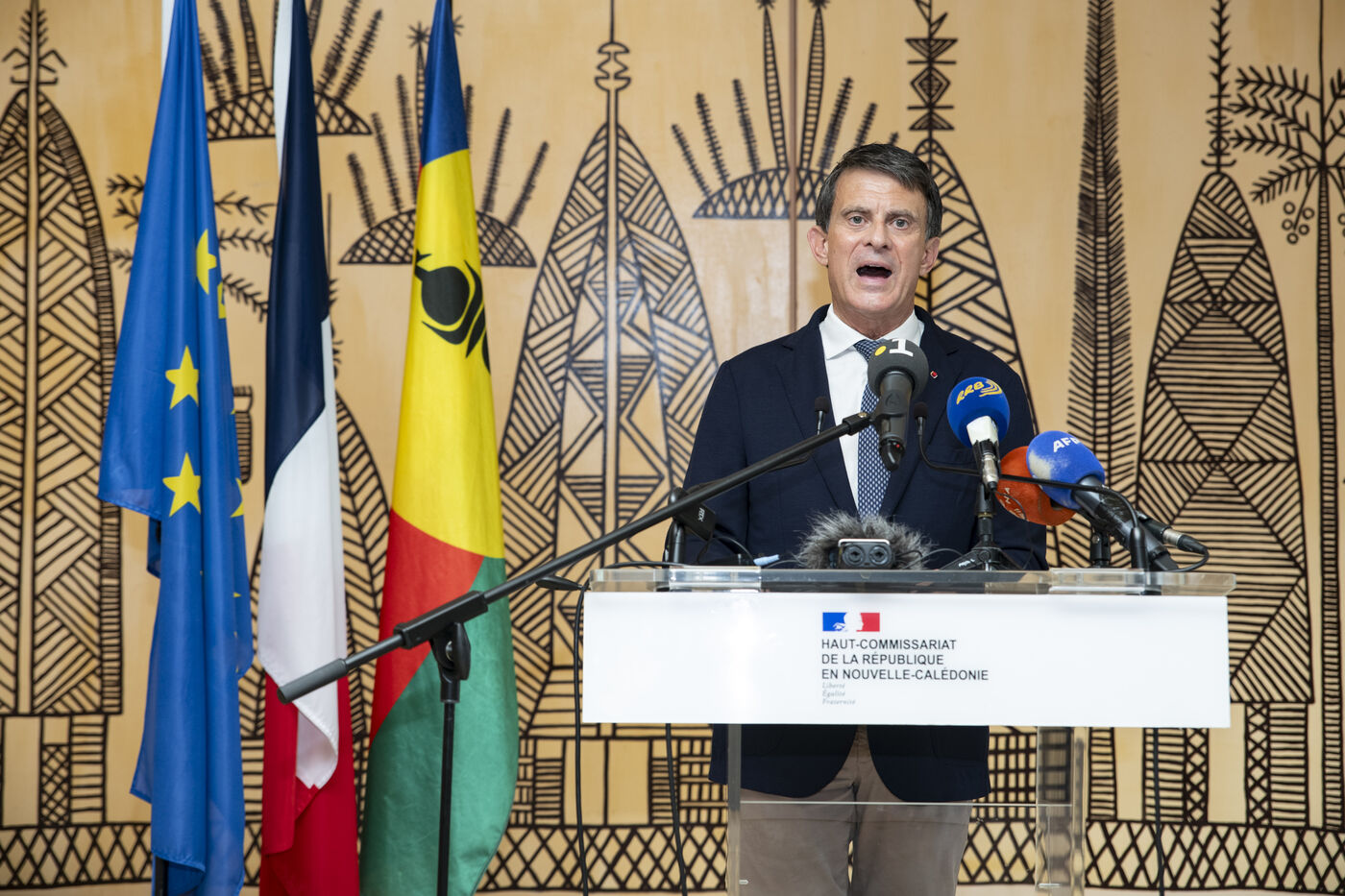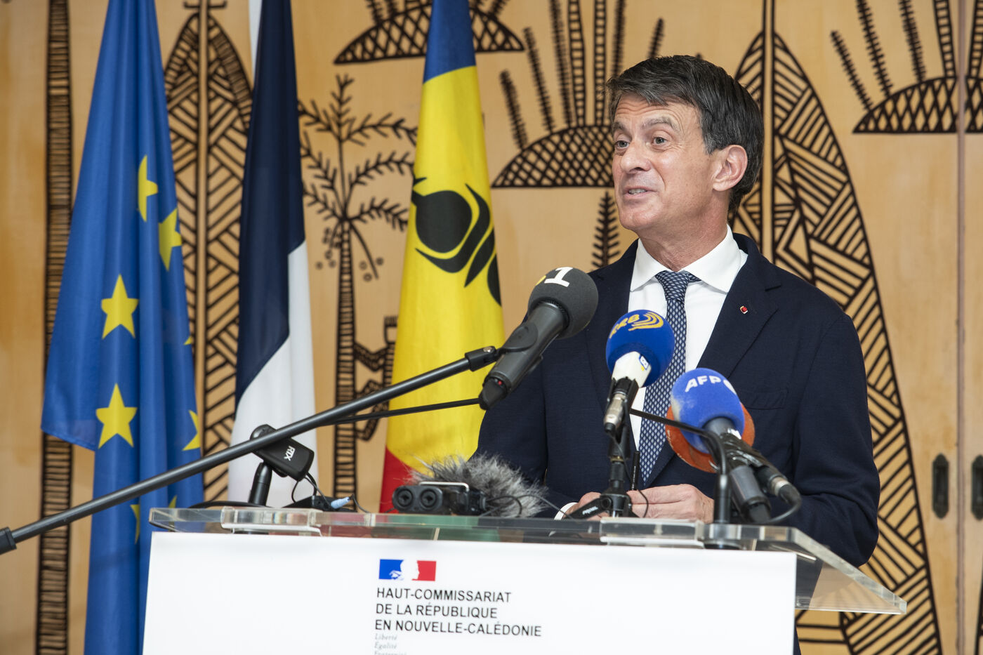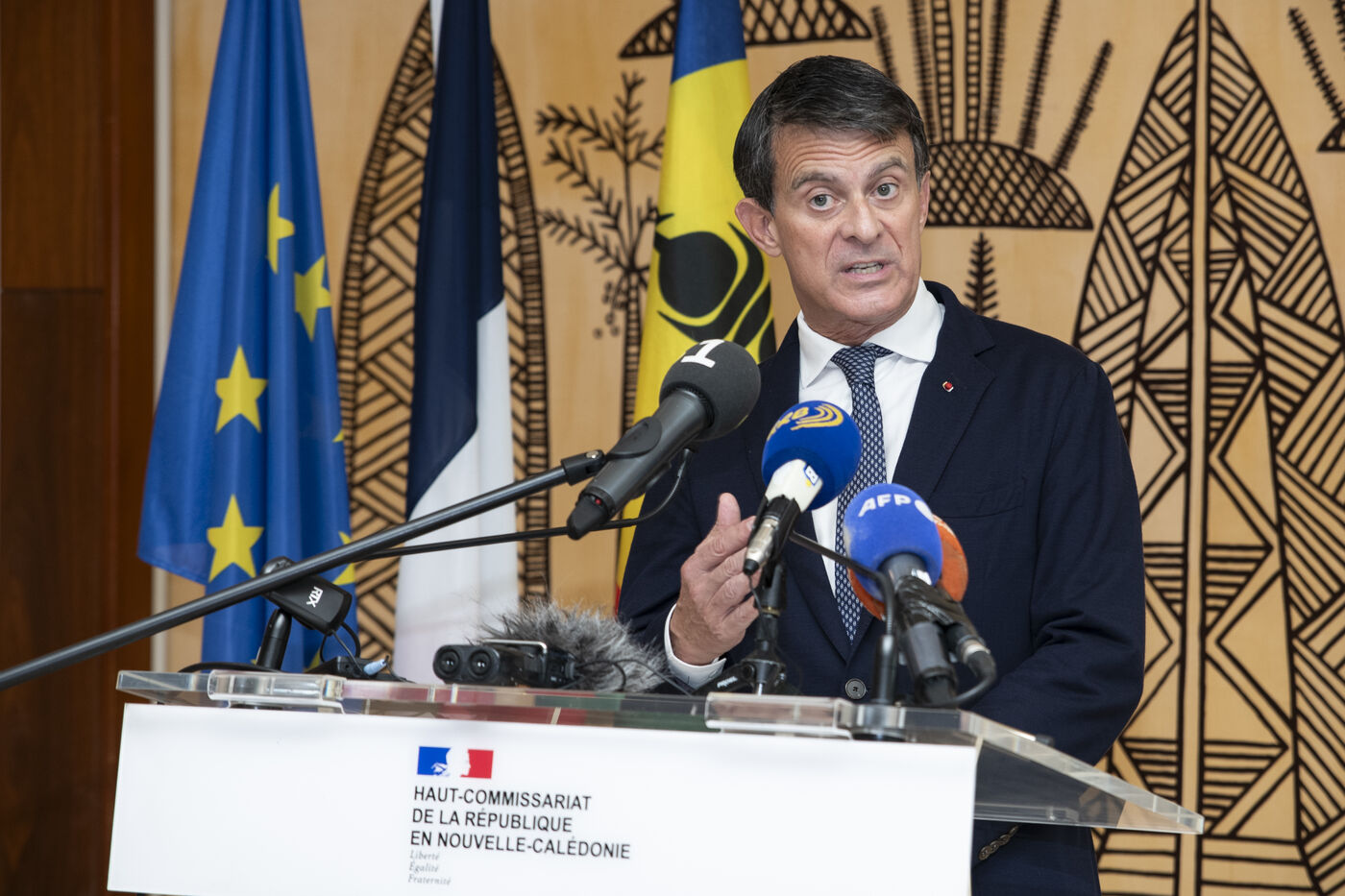 French Overseas Territories Minister Manuel Valls meets the press at the Haut-commissariat in Noumea to announce that no agreement has been reached between pro-independence and non-independence parties on the institutional future of New Caledonia at the end of “conclave” discussions held at the Sheraton in Deva.