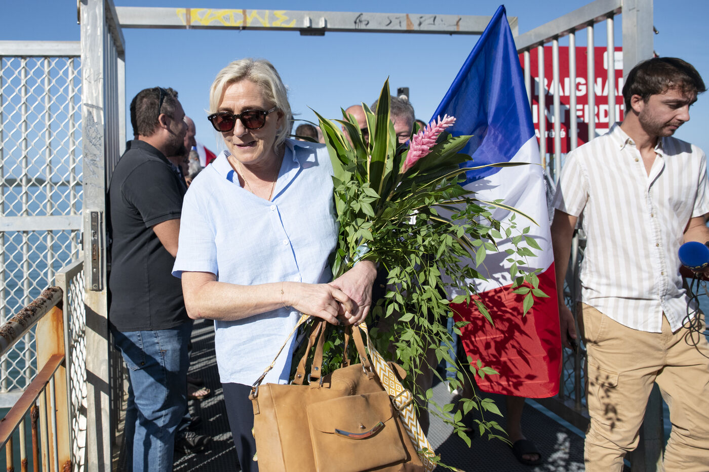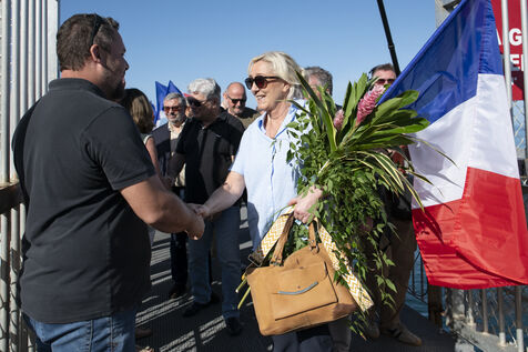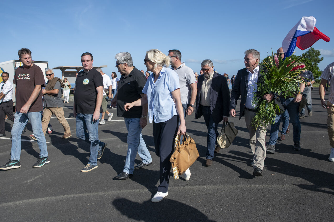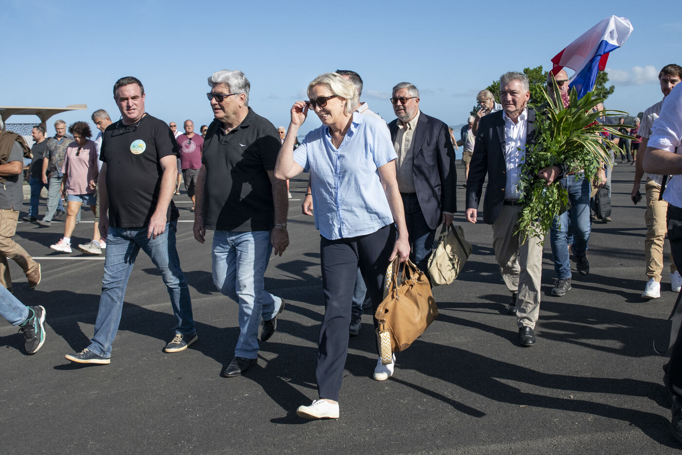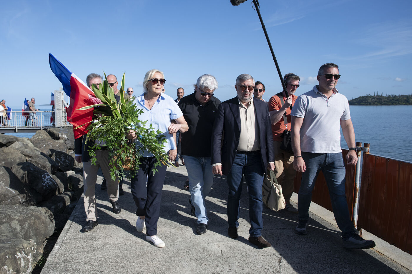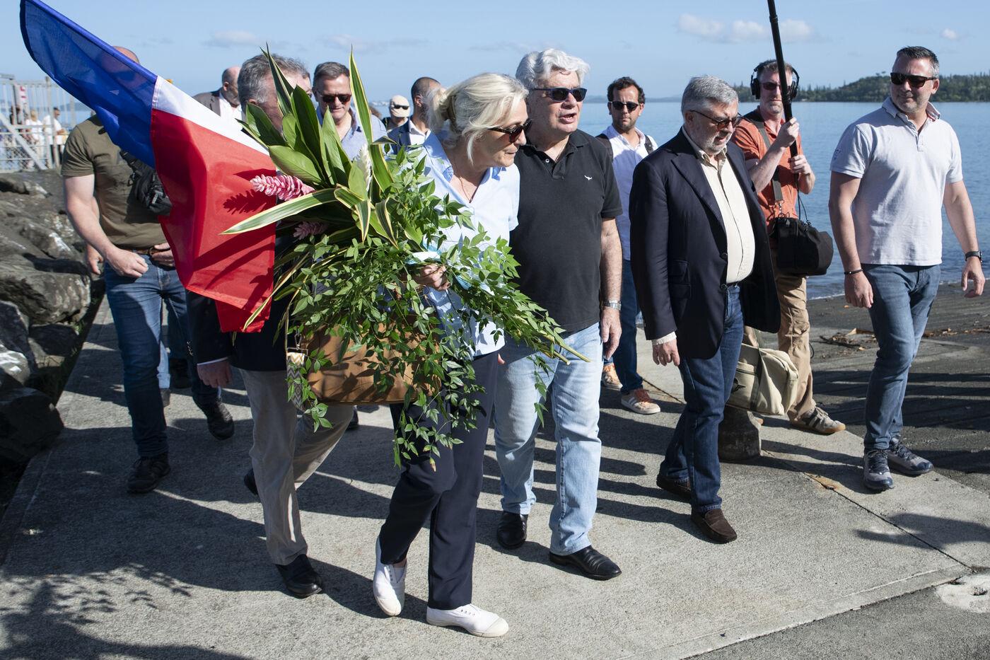 Visiting New Caledonia for three days, the leader of the Rassemblement National party, Marine Le Pen, met the inhabitants of Le Mont-Dore, accompanied by the first vice-president of the Rassemblement National, Louis Aliot, the two European deputies, Andre Rougé and Christophe Bay, and the departmental delegate of the Rassemblement National in New Caledonia, Alain Descombels. Welcomed on arrival by boat from Nouméa by the Association Citoyen Montdorien (ACM), the delegation then held lengthy discussions with local residents and members of the association in a particularly tense and animated atmosphere.