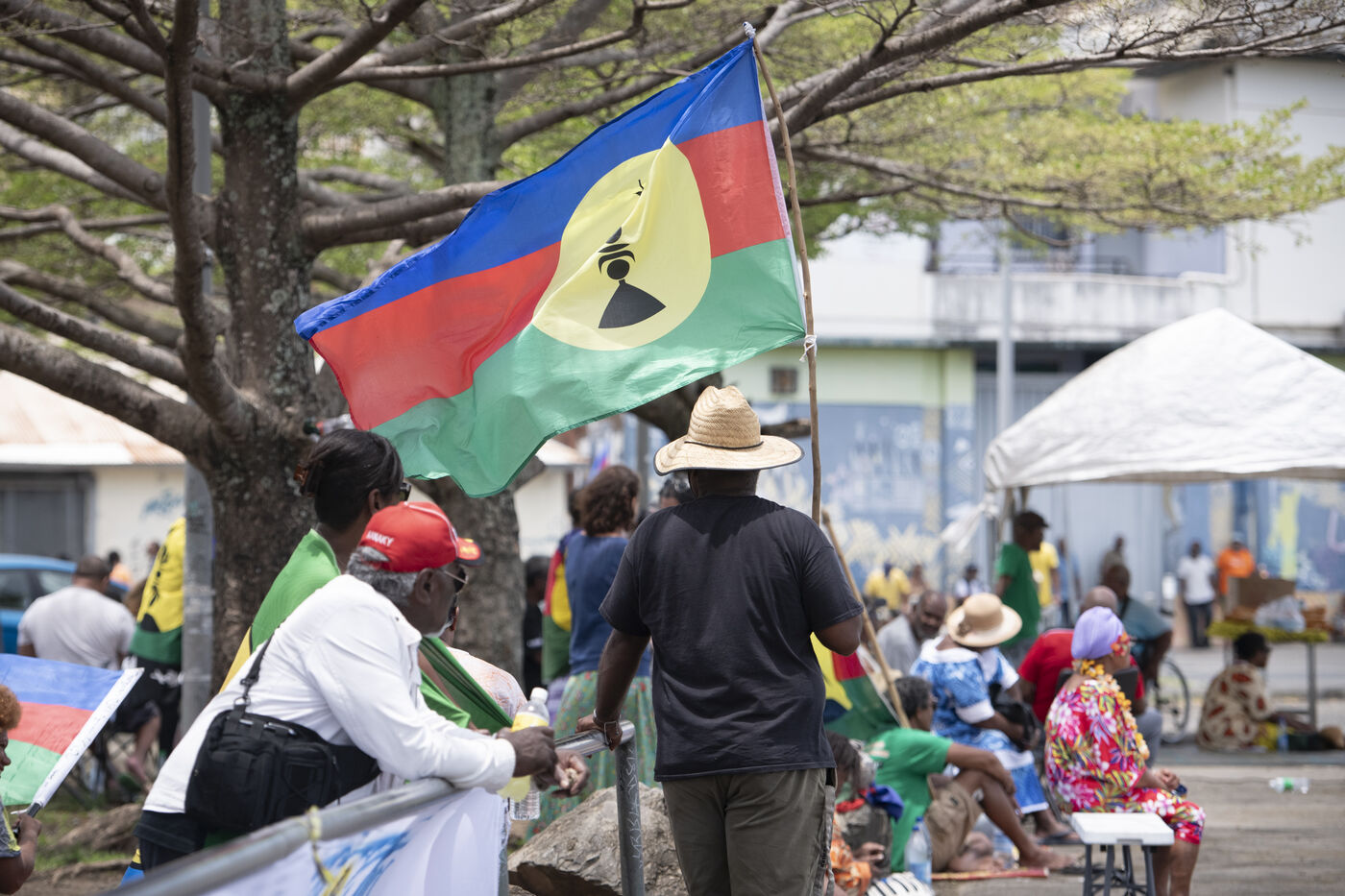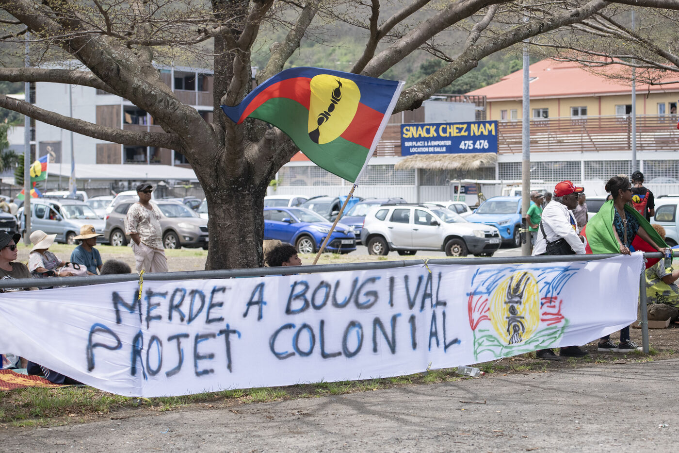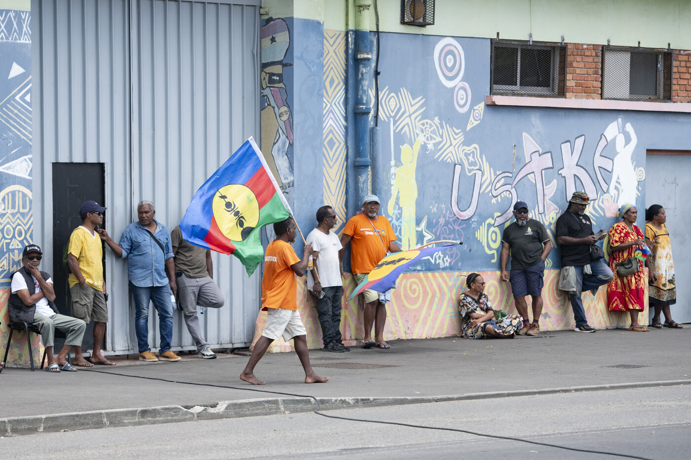 Les militants et sympathisants de la Cellule de Coordination des Actions Terrain (CCAT) se mobilisent dans le quartier de la Vallée du Tir à Nouméa, suite à la validation du report des élections provinciales et à l’avis favorable du Conseil d’État sur le projet de loi constitutionnelle lié à l’accord de Bougival.