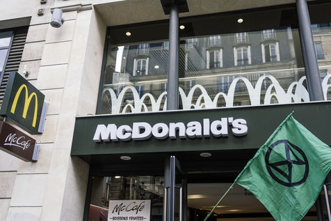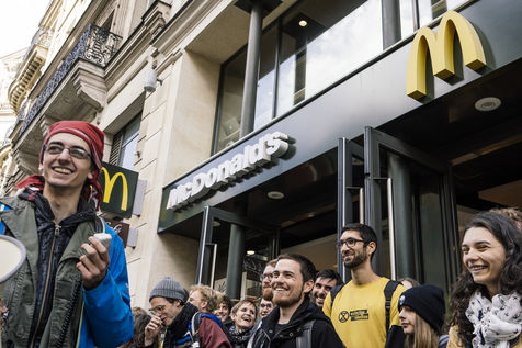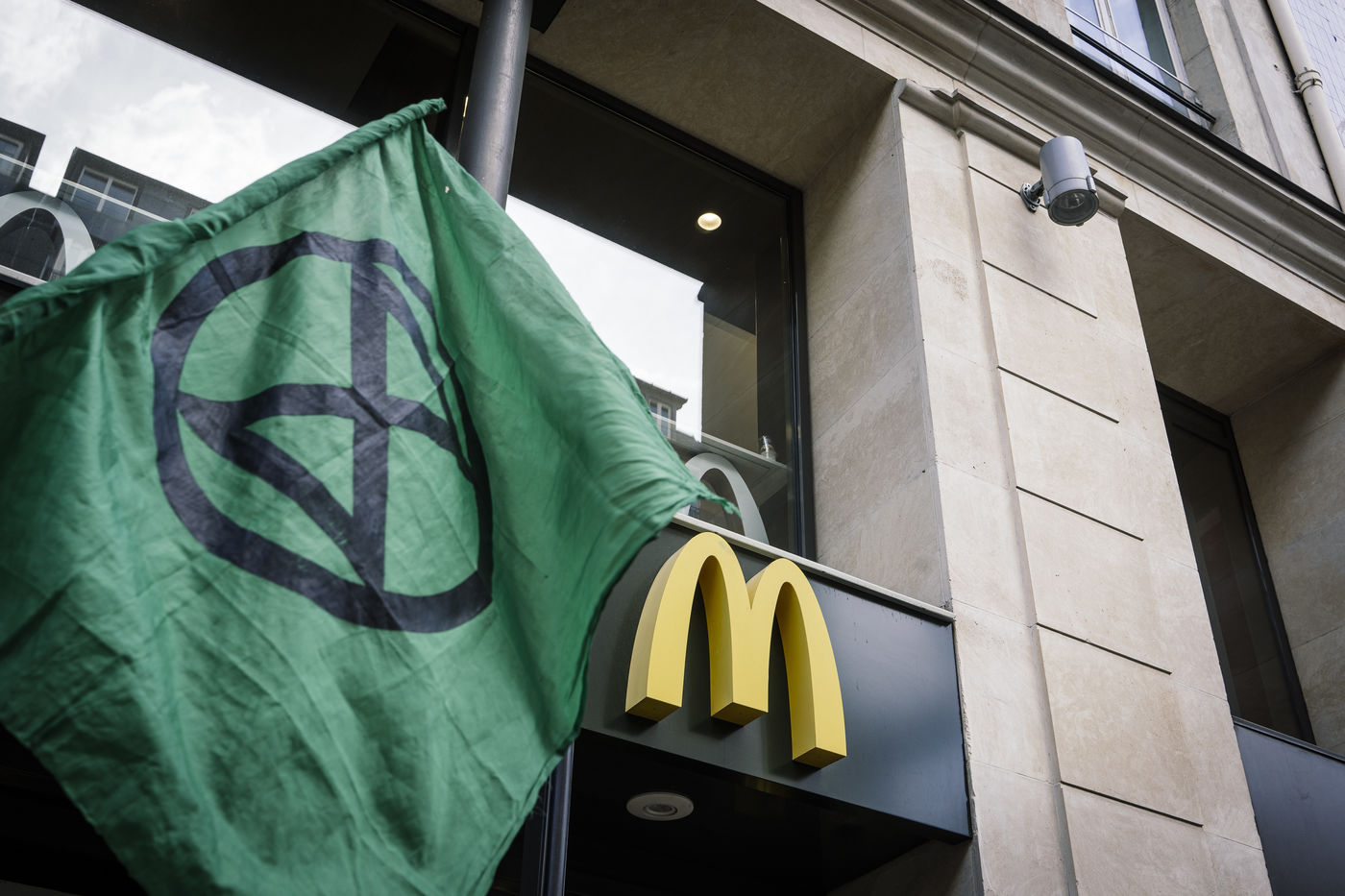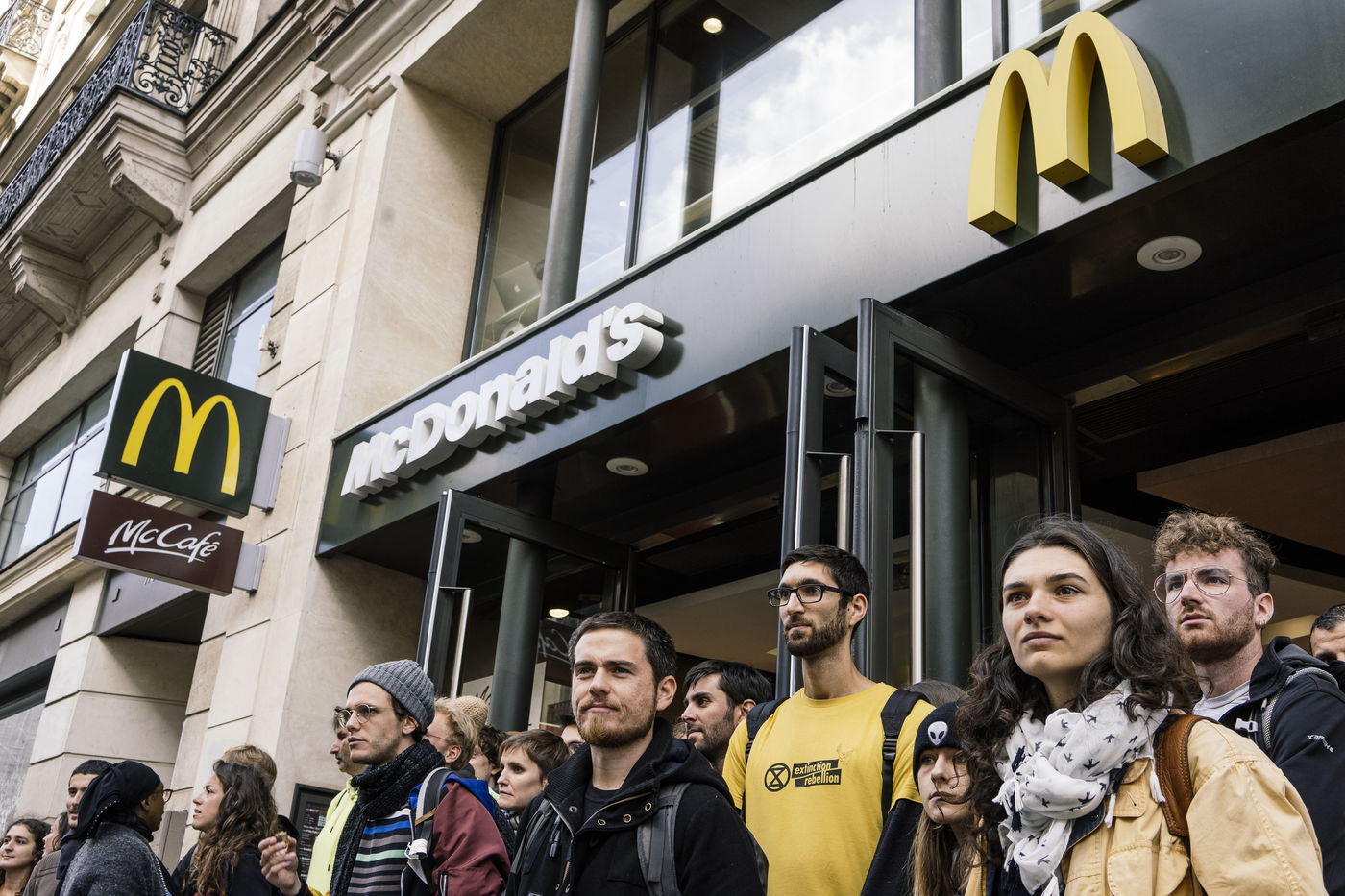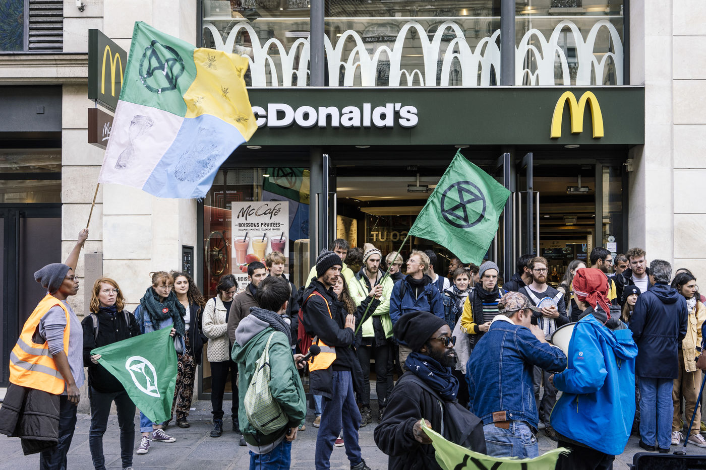 Extinction Rebellion: Blockage of McDonald's restaurant, rue de Rivoli.