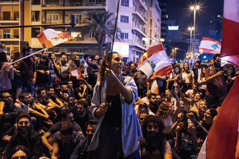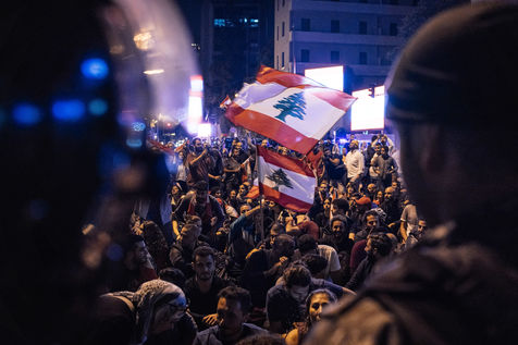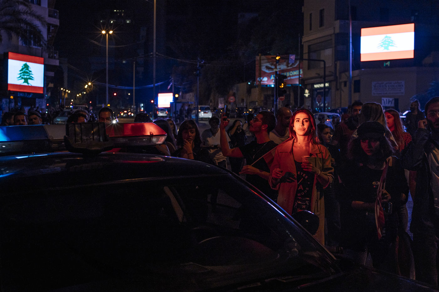 A l'issue du discours du Président de la République, le Général Michel Aoun, les routes du quartier de Saïfi ainsi que l'axe majeur du Ring Fouad Chéhab, à Beyrouth, ont été coupées par des manifestants qui ont entamé un sit-in toute la soirée, avant de se faire déloger. Beyrouth, Liban, 1er novembre 2019.