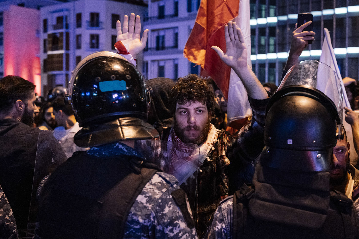 At the end of the President of the Republic's speech, General Michel Aoun, the roads of the Saïfi district as well as the major axis of the Ring Fouad Chehab, in Beirut, were cut off by demonstrators who started a sit-in all evening, before being dislodged. Beirut, Lebanon, October 31, 2019.