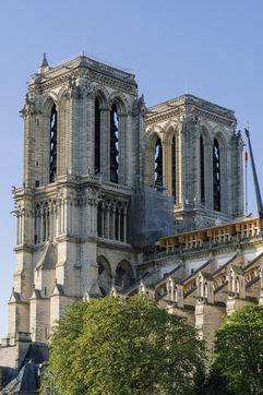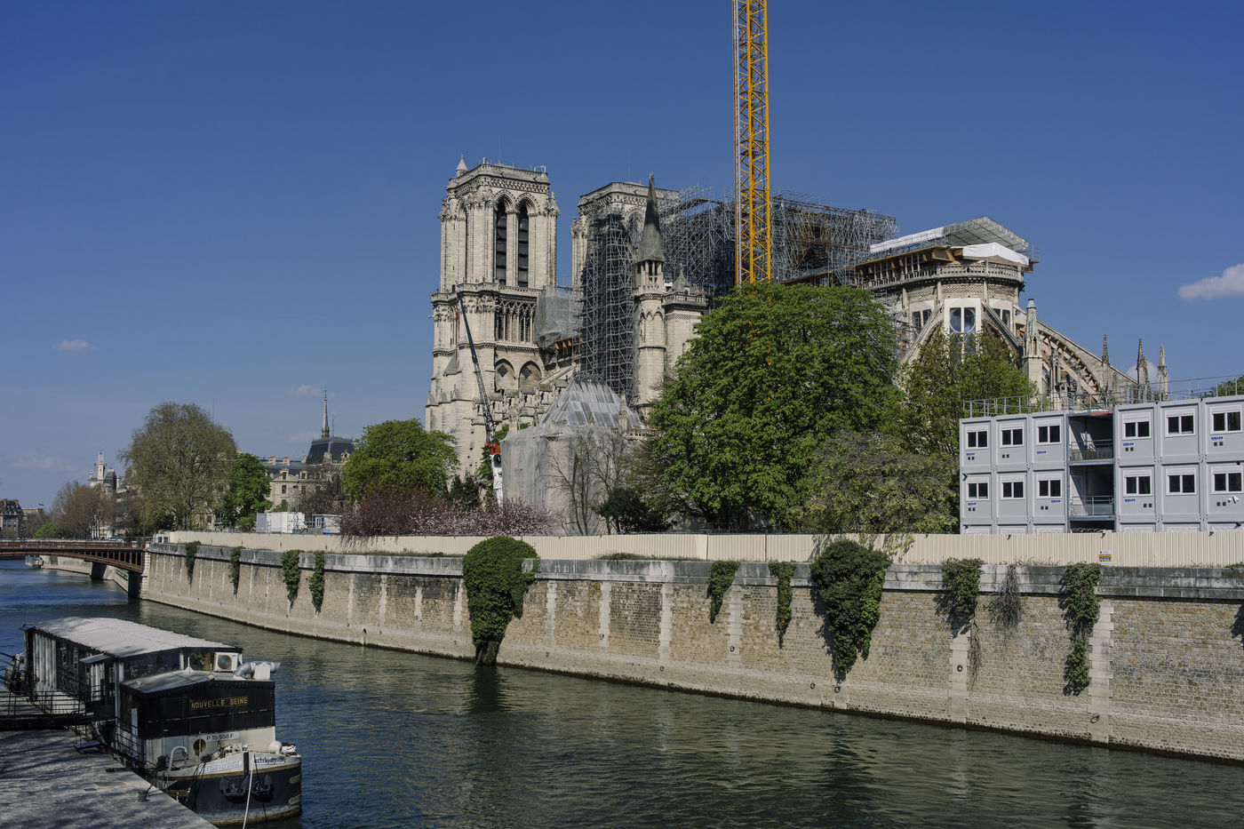 Like the vast majority of public and private worksites, the restoration of Notre-Dame de Paris Cathedral is at a standstill during this period of containment, one year after the fire that ravaged part of the building. Paris, April 4, 2020.