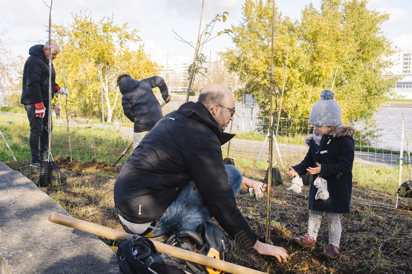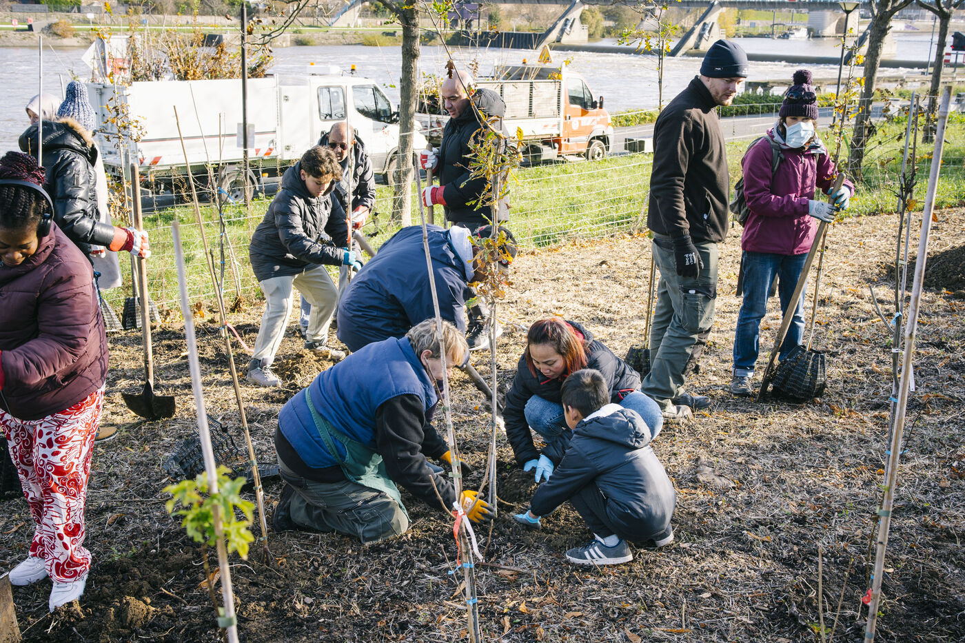 The municipality of Vitry-sur-Seine and the Department of Green Spaces organised a festive planting of an urban micro-forest on the banks of the Seine and an ash tree donated by the Vitriosart collective in the Parc Joliot-Curie.