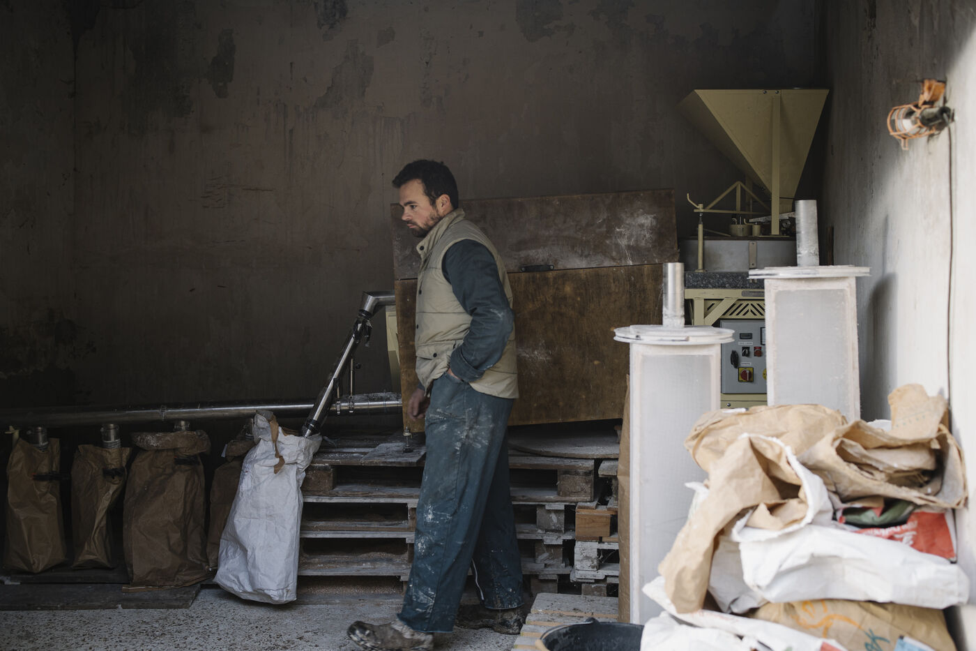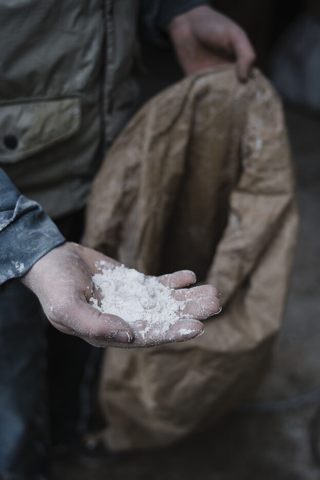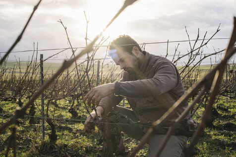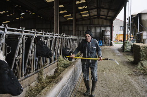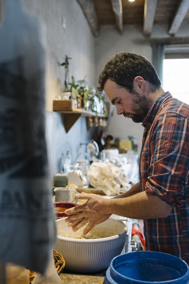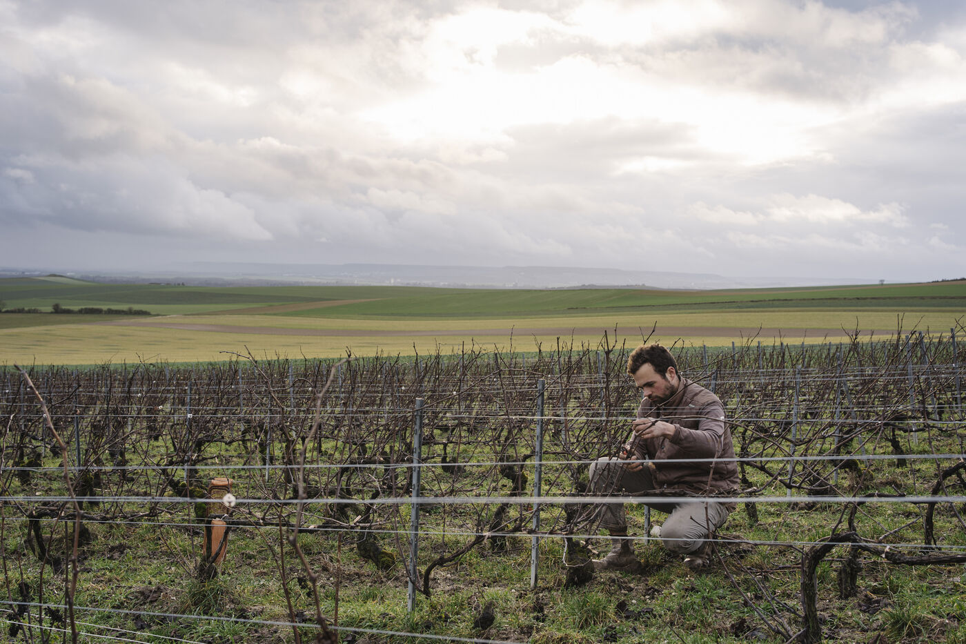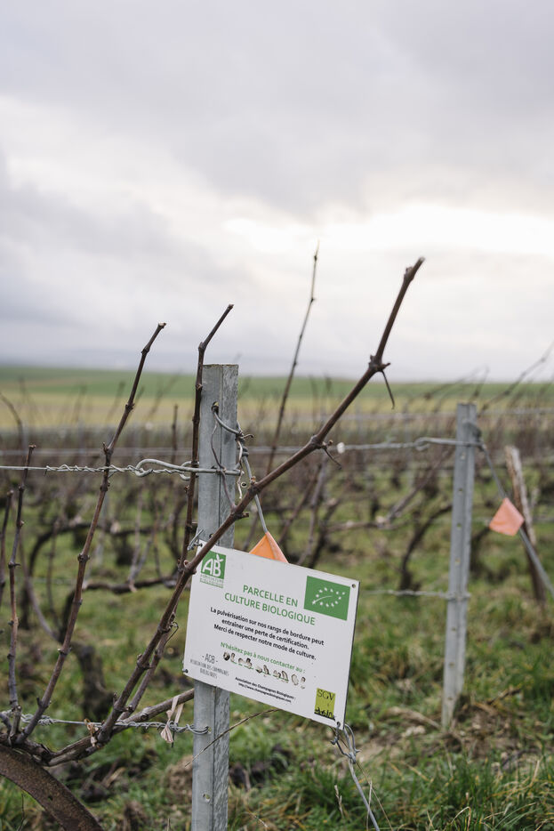 France, Athis, 2023-12-13. Alexia and Pierre-Edouard have started growing their vegetables under cover and in the open field, without chemical fertilisers or pesticides, on a plot of land in its third year of conversion to organic farming. Their vegetable plot is tilled using animal traction with their mare Charlotte.