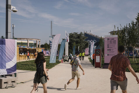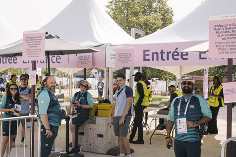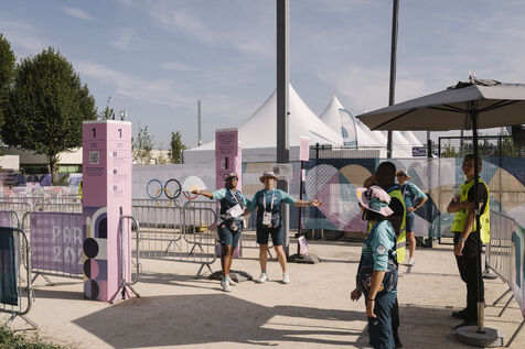 France, Le Bourget, 2024-08-06. Épreuve d'escalade sportive sur le site d'escalade du Bourget, supporters et infrastructure du quartier olympique, dans le cadre des Jeux Olympiques Paris 2024.
