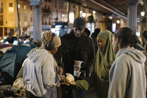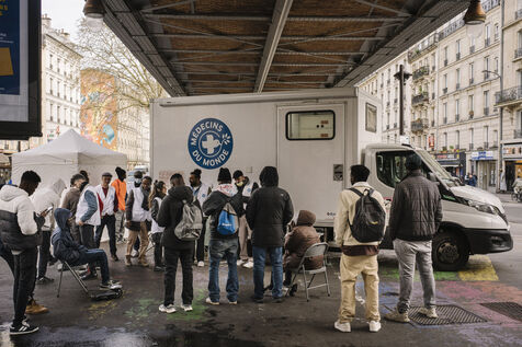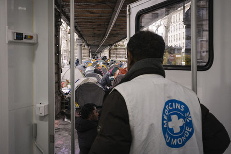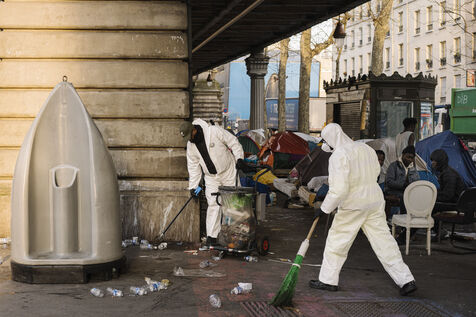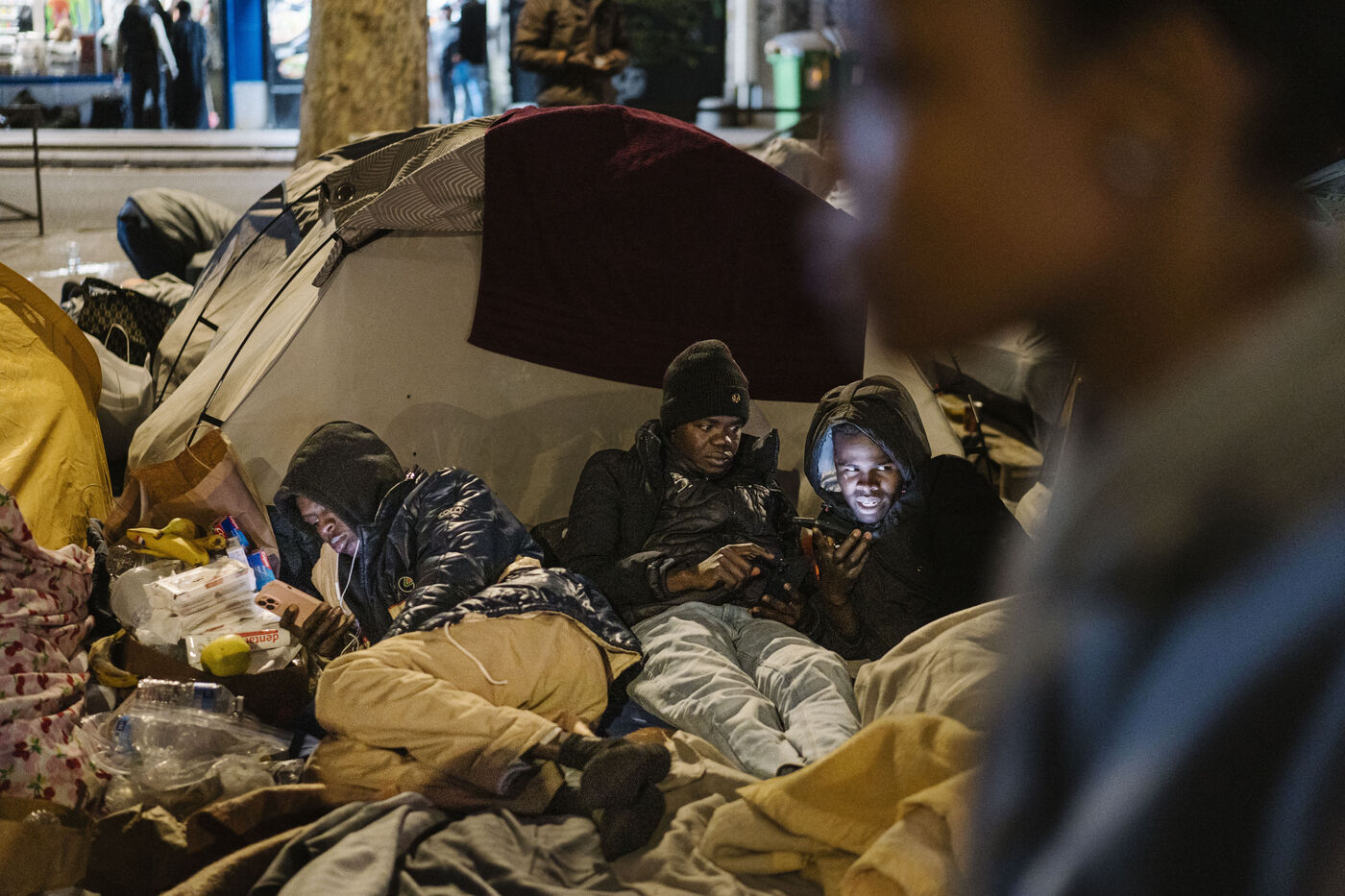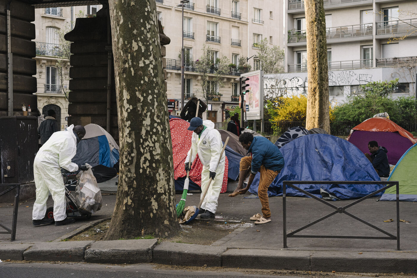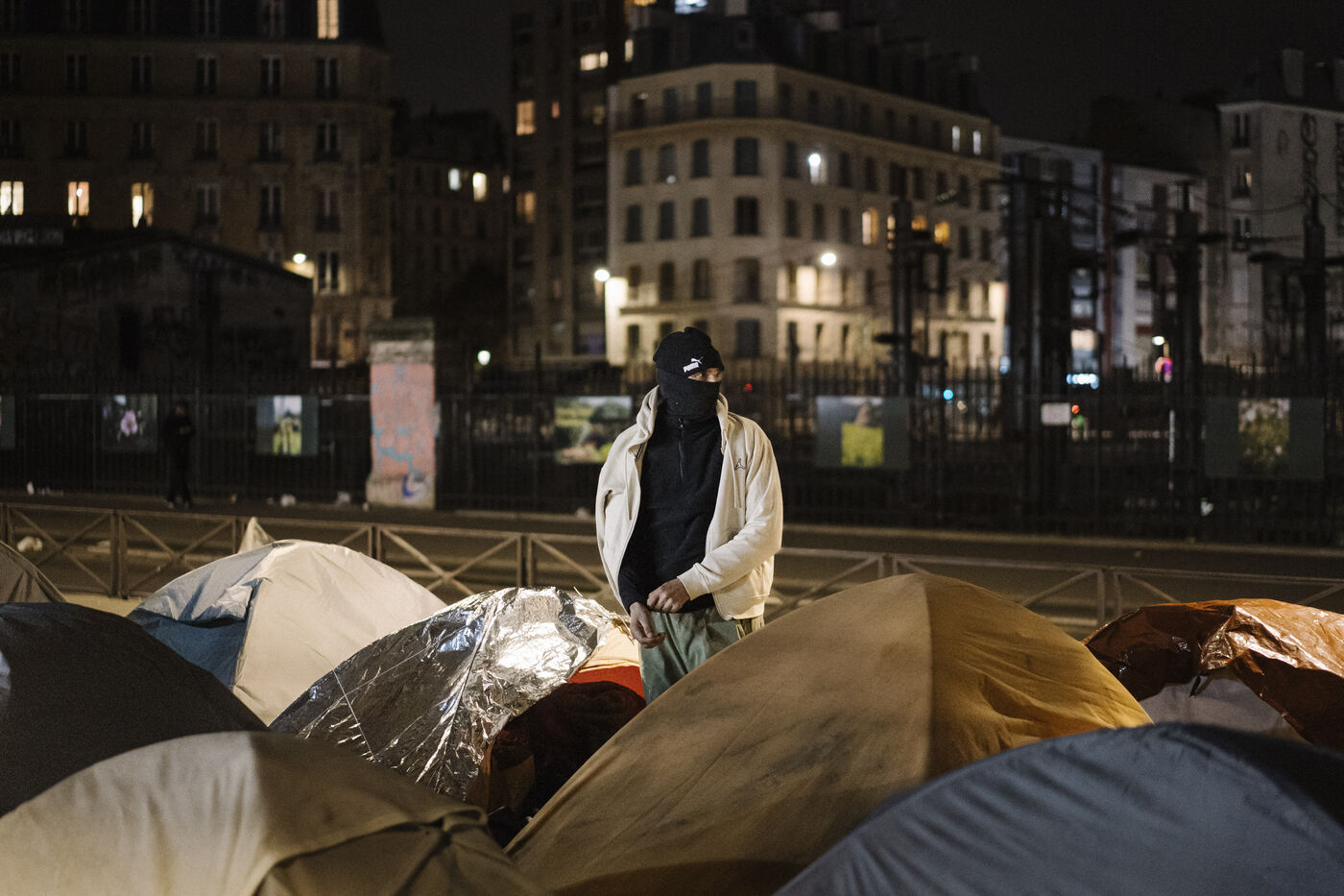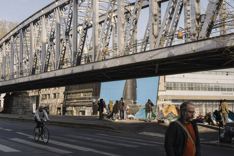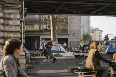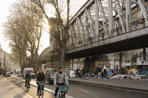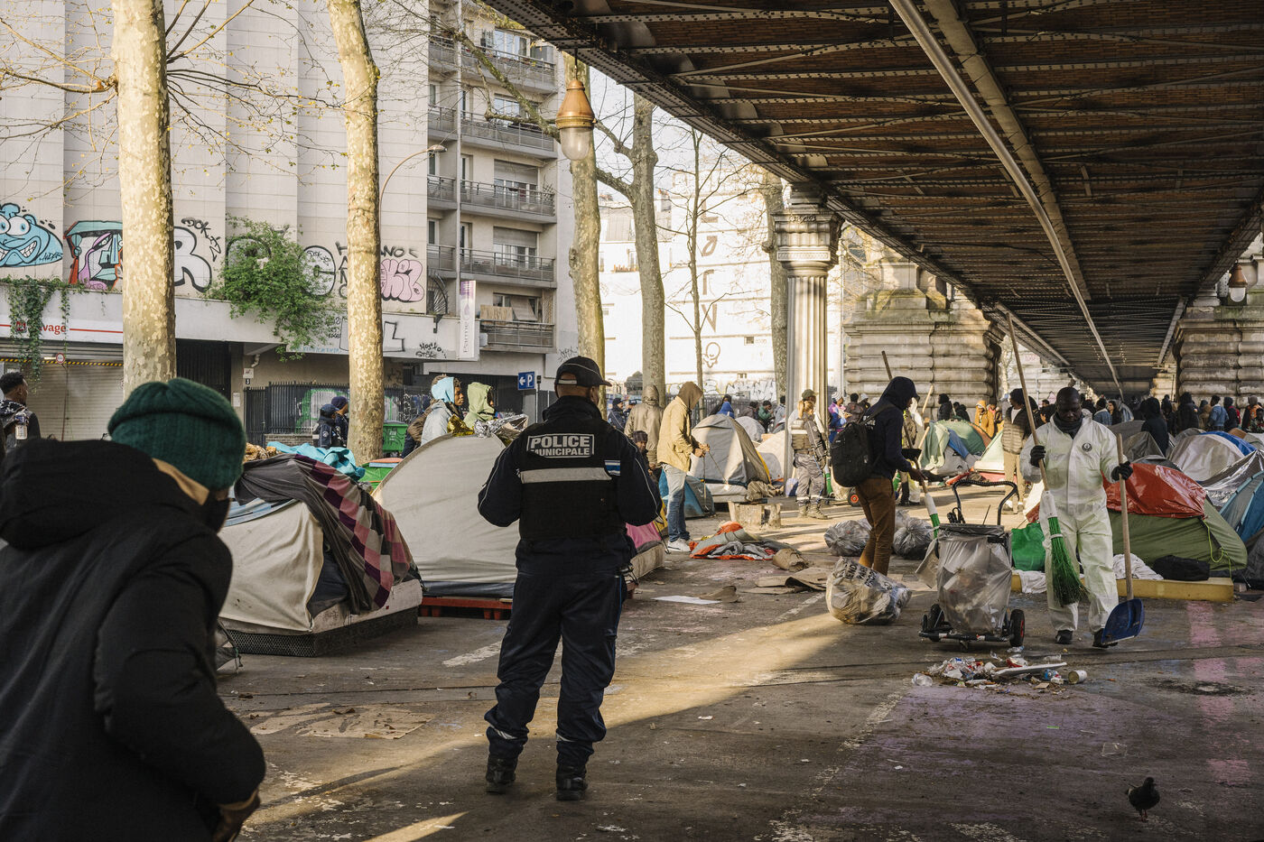 Migrant camp beneath Line 2 of the Paris Metro, between Jaurès, Stalingrad and Porte de la Chapelle stations.