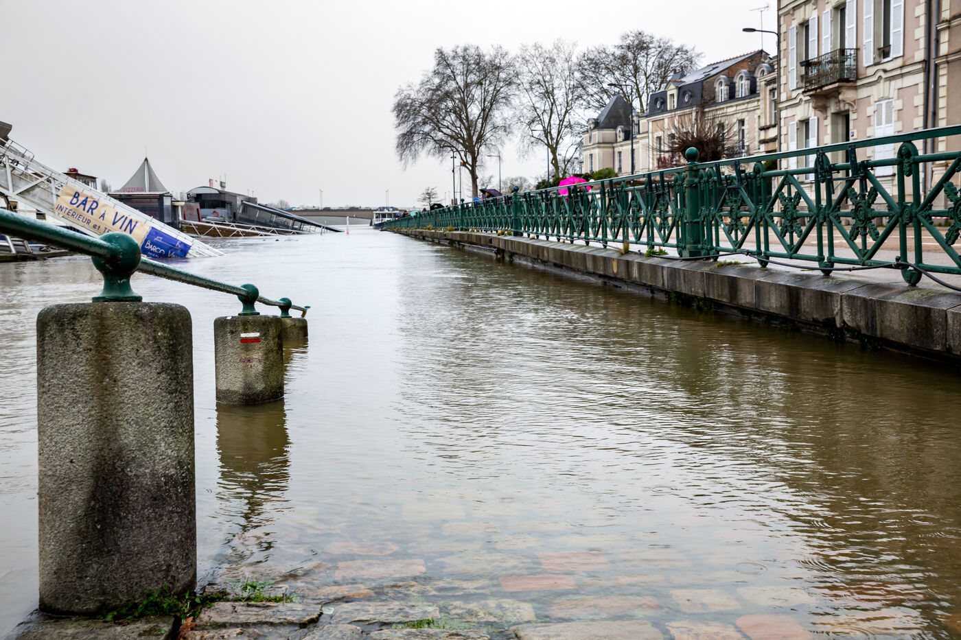 Due to heavy rainfall causing the Loire River to rise, severe flooding of the Maine River creates flooding in the streets of Angers. Municipal services are working to secure traffic, as many roads are flooded and closed to the public.