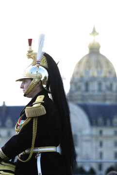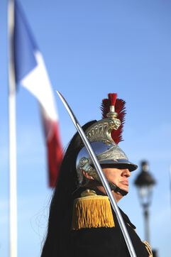 The french Republican Horse Guard is an integral part of the national gedarmerie and, as such, the only mounted unit of the French army today. It carries out security and honor missions with the highest authorities of the french Republic. Its presence during receptions of foreign heads of state is part of the classic decorum of diplomacy, like other units in the world such as the English Royal Horse Guard dedicated to the protection of the household of the English sovereign.