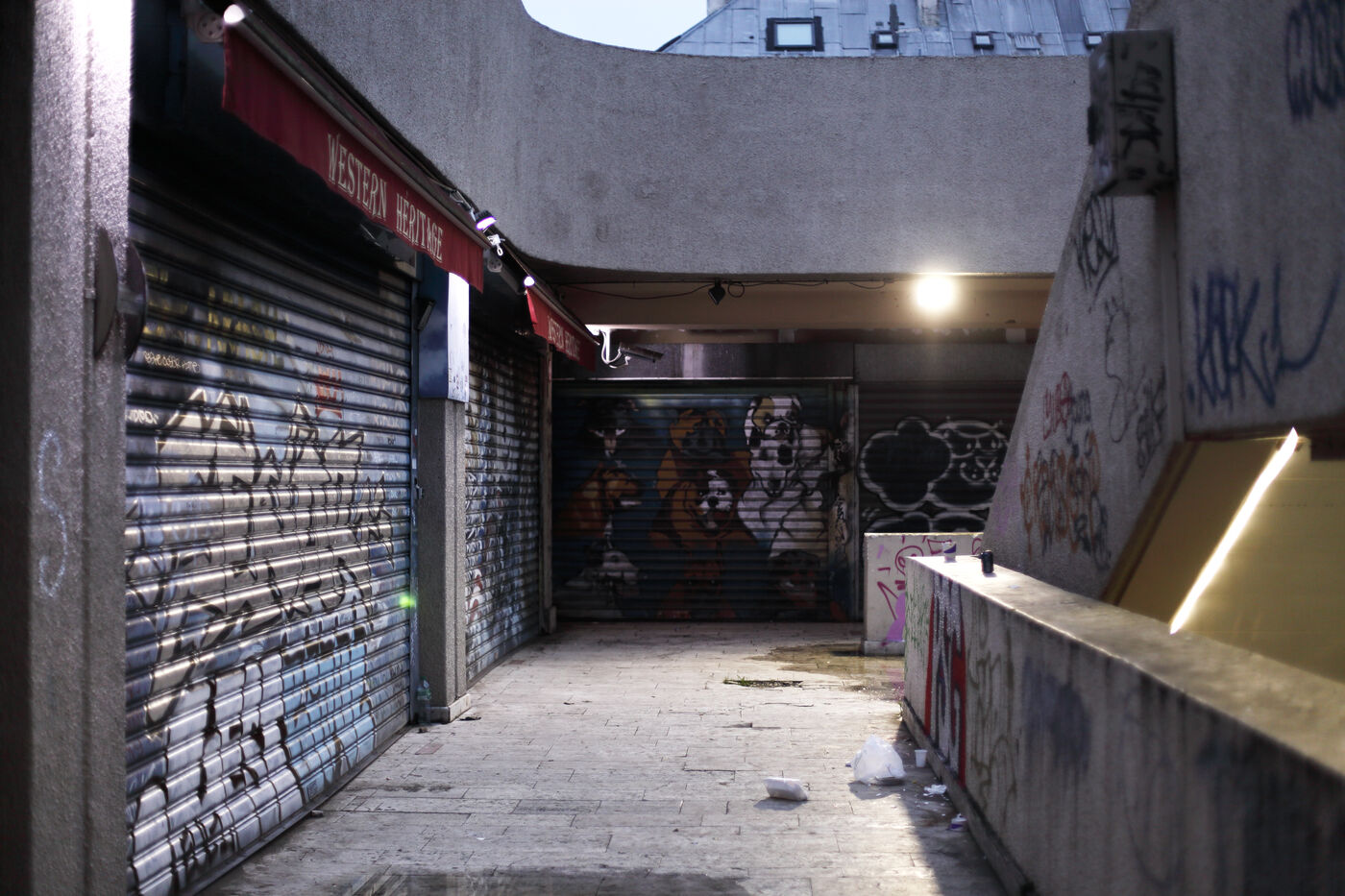 The Tour Maine Montparnasse real estate complex was definitively built in 1973 after four years of work. It contains the Montparnasse Tower, 210 m high, and the shopping center inaugurated in 1972. This architectural ensemble marks the vision of an era, that of the end of the 1960s with the tertiarisation of the economy and the vision of a new modernity. This complex is today the subject of a restrusturation and renovation project and many commercial spaces are empty, awaiting the renewal which was announced in 2018 but did not come. The space thus abandoned gives way to what looks like a ghost gallery.