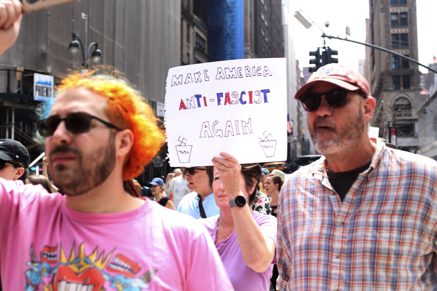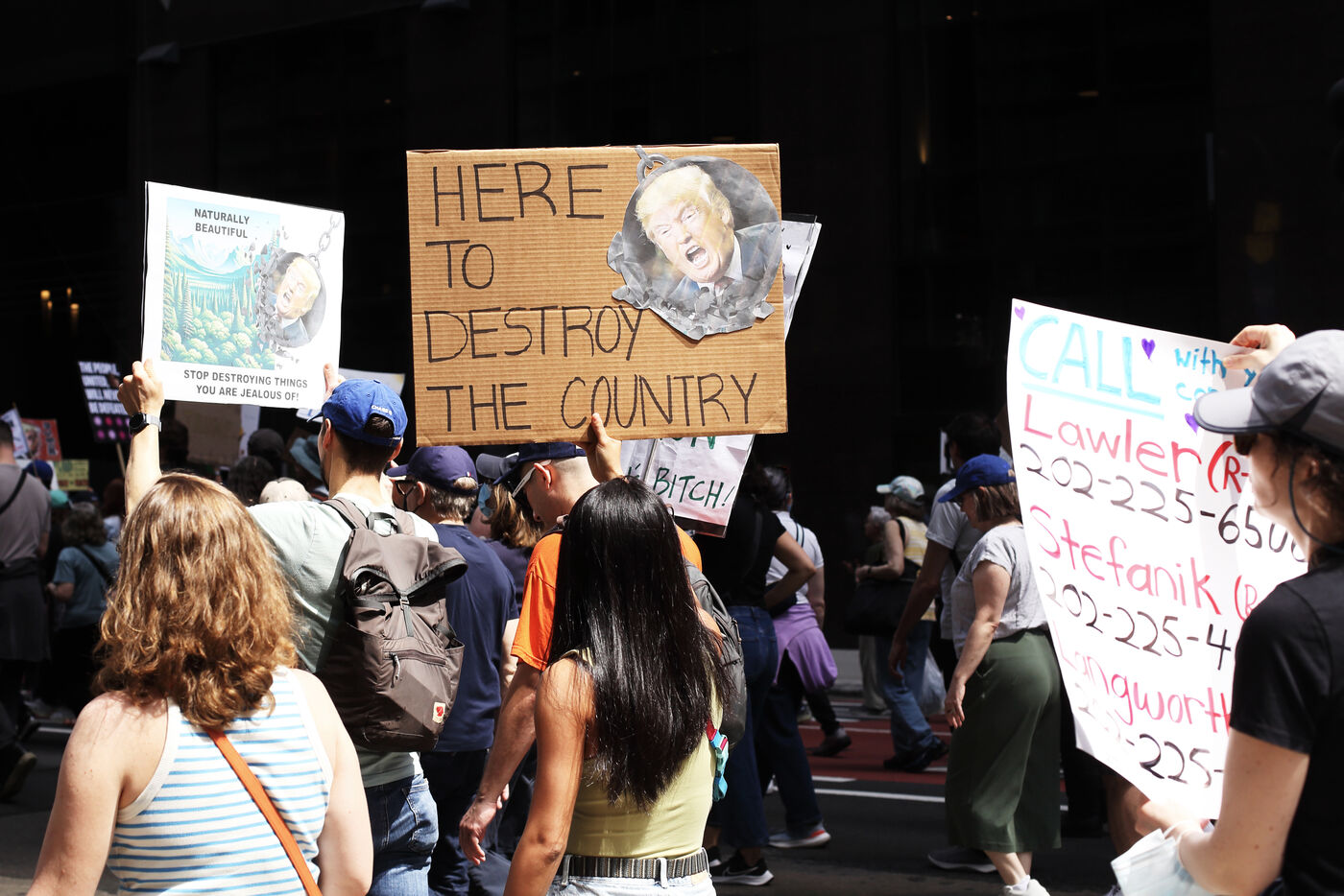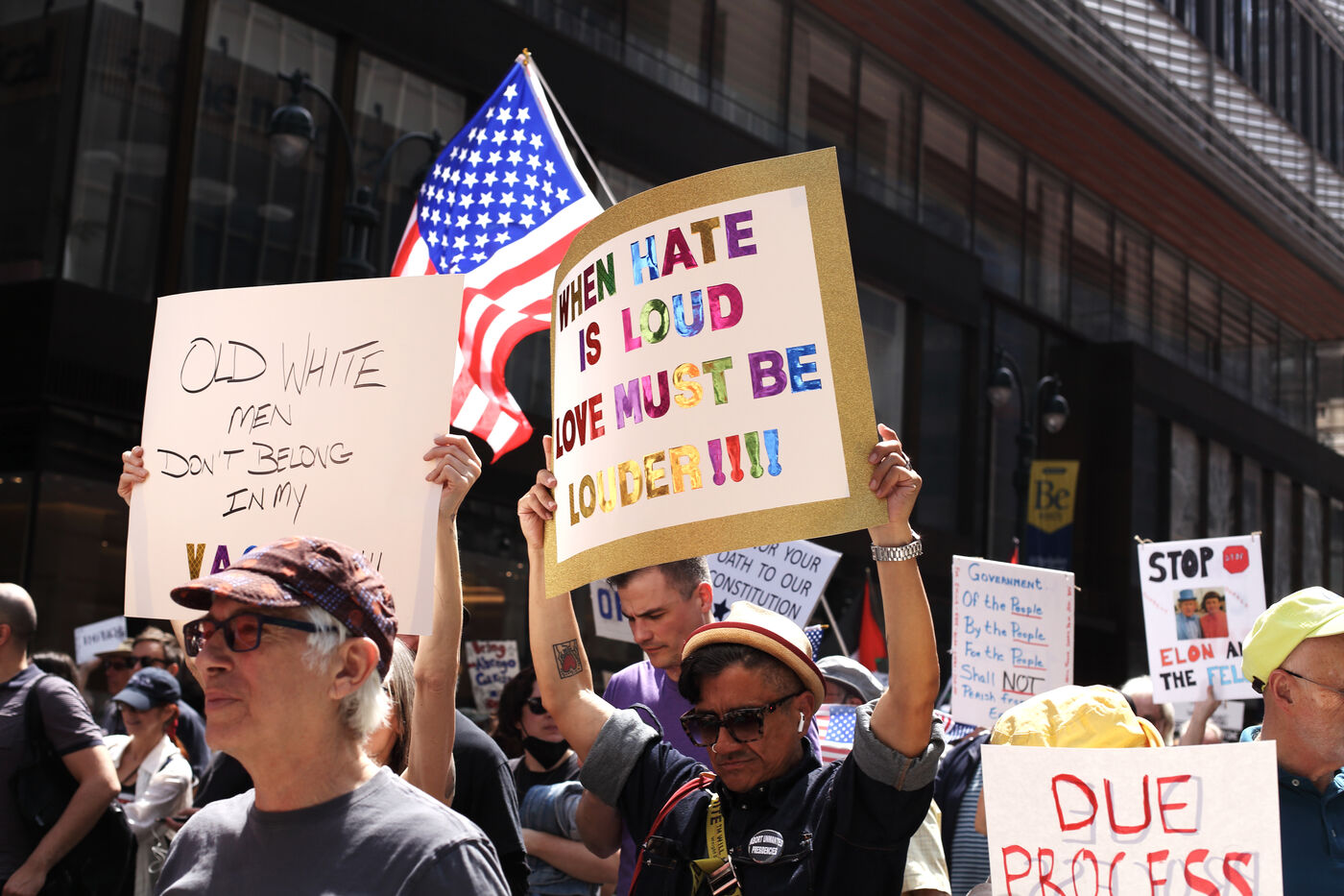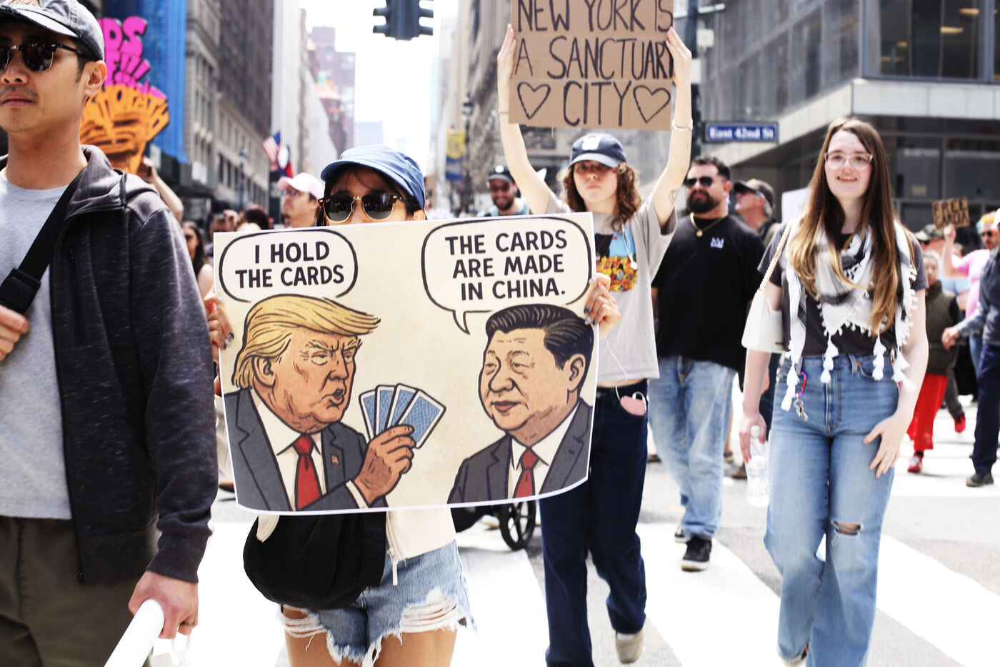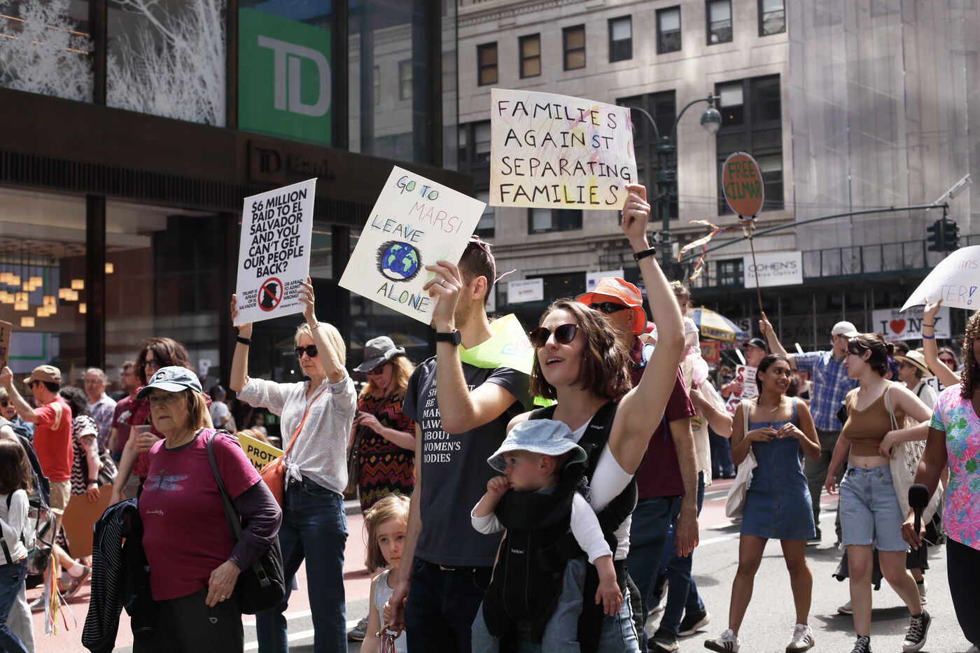 Alors que le président Trump continue de mettre en place une politique dure à l'égard des échanges commerciaux comme de la population immigrée aux Etats Unis, des mouvements de manifestations se déroutent dans le pays. Une manifestation a été organisée à New York le 19 avril 2025 dans les rues de Manhattan, rassemblant des milliers de personnes qui ont croisé les new yorkais et touristes qui déambulaient dans les rues.