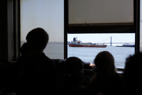 The boroughs of Manhattan and Staten Island are connected to New York City by a ferry line that ensures territorial continuity across the Hudson River, passing alongside the Statue of Liberty. The route allows visitors to admire mythical sites of the New World while mingling with a crowd of workers and tourists, who, depending on the hour, enjoy a short sightseeing cruise where others are resting.