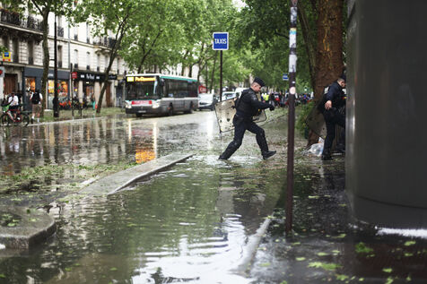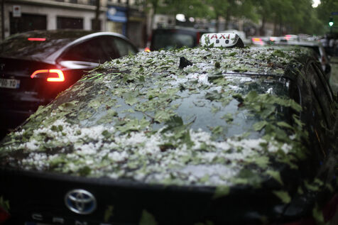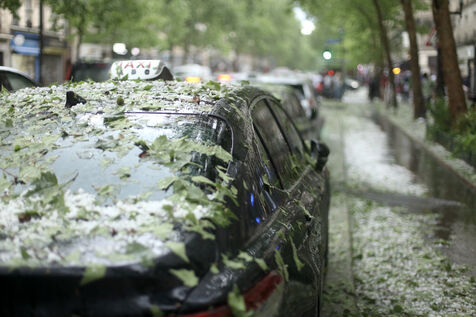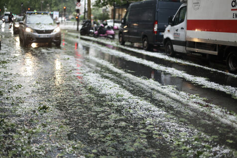 On Saturday, May 3, a hailstorm hit Paris. Hailstones several centimeters thick fell, forcing passersby to take shelter and then flooding the streets and some metro entrances. The storm lasted about fifteen minutes.