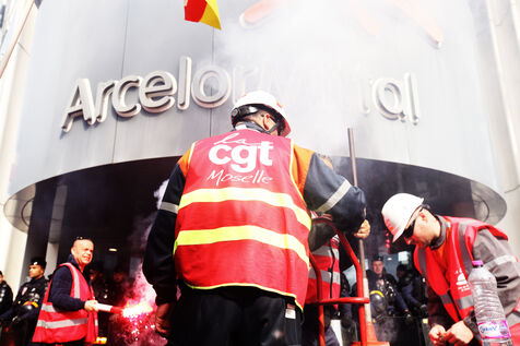 CGT rally in front of Arcelor Mittal headquarters