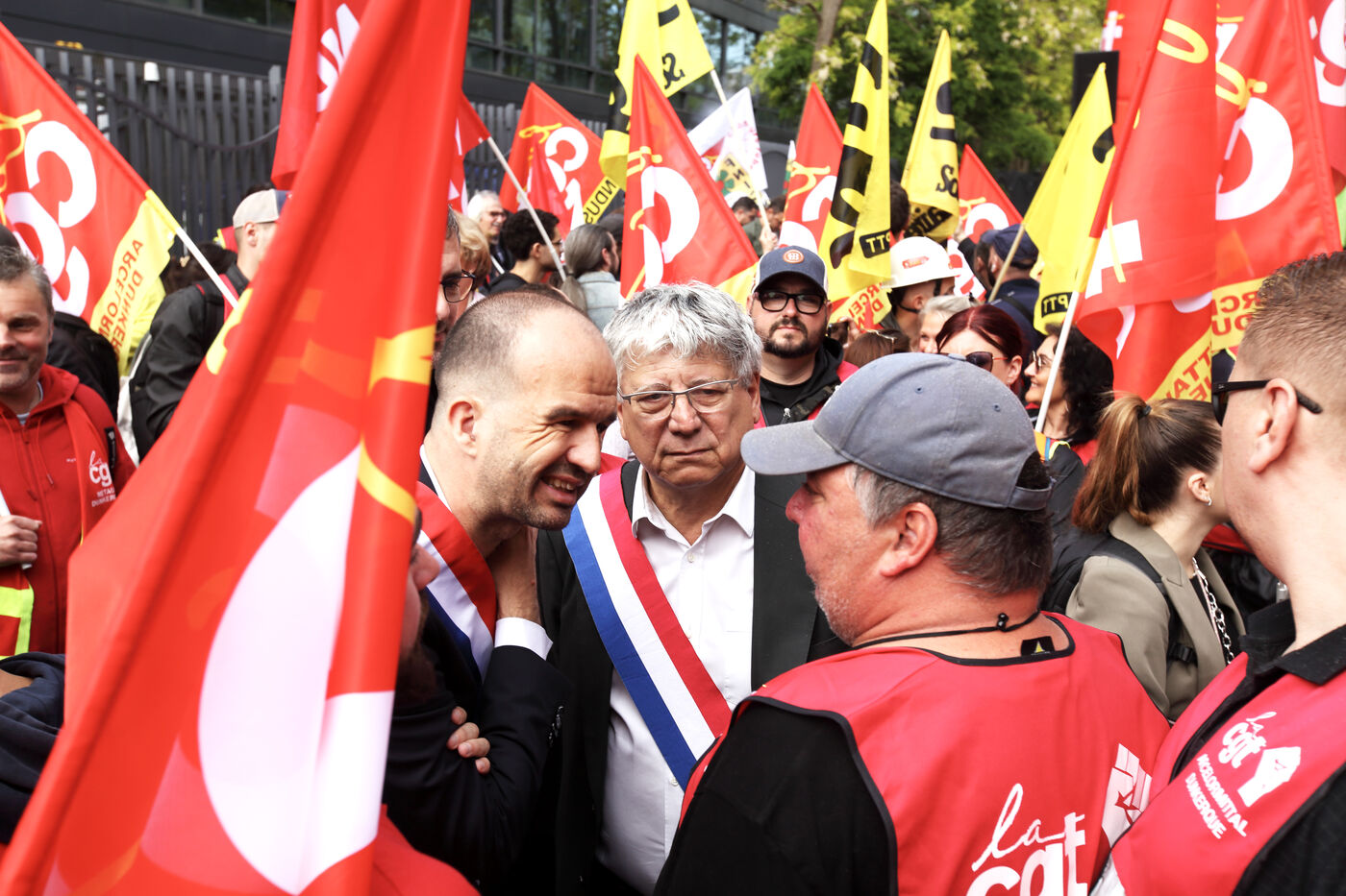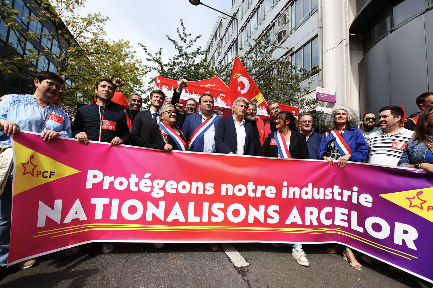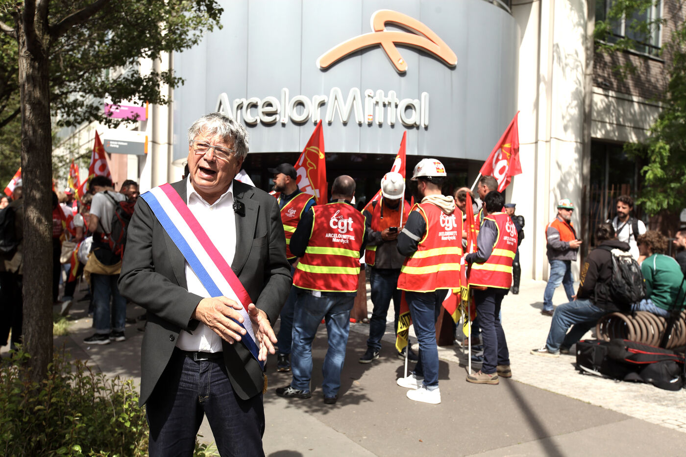 Alors que les inquiétudes grandissent quant à l'avenir des sites sidérurgistes du groupe Arcelor Mittal en France et en Europe; la CGT a appelé à manifester devant le siège du groupe à Sainty Denis le 13 mai 2025. De nombreux politiques étaient présents pour soutenir la revendication de la CGT d'une nationalisation des usines métallurgiques françaises au nom de la souveraineté de la productio industrielle conre les délocalisations.