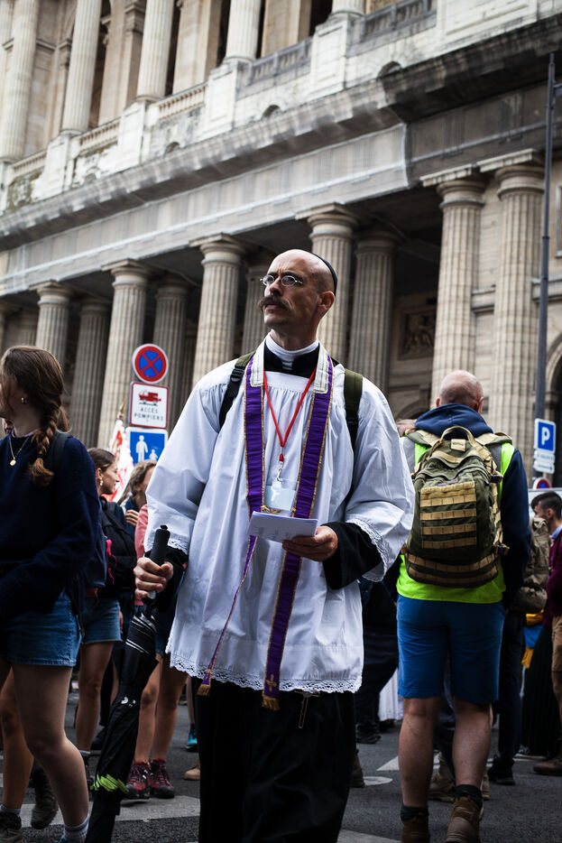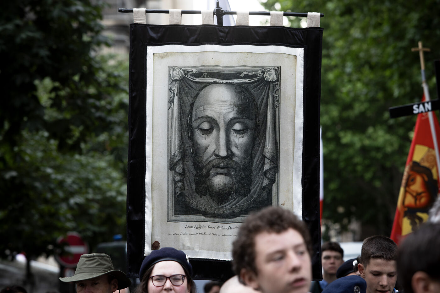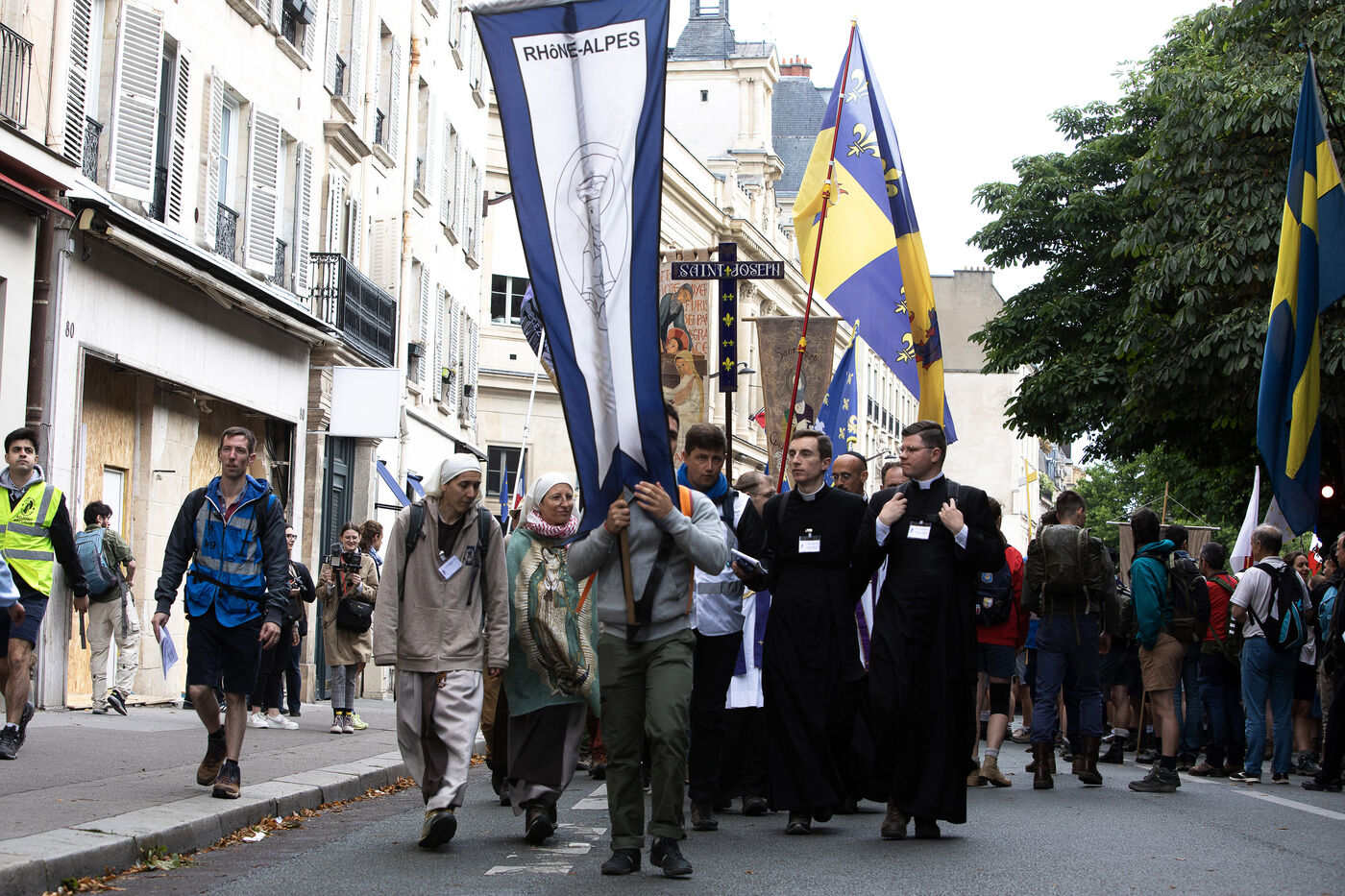 The Chartres pilgrimage departed from Paris. The pilgrims will walk for two days to reach Chartres. It has been organized by the Notre Dame de la Chrétienté association since 1994 and brings together pilgrims of all nationalities united under symbolic banners.
