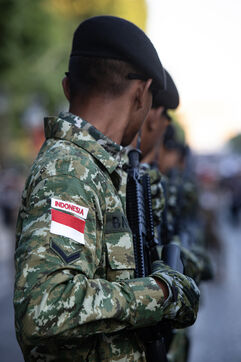 The July 14 military parade is a republican tradition intended to mark both the Republic's commitment to its armed forces and the armed forces' commitment to the Republic. To ensure the parade is perfect, numerous rehearsals take place the week before the national holiday, at the Satory base and also on the Champs-Élysées in the early morning, before the city reclaims the grounds. Paris welcomes foreign delegations; this year, a contingent of the Indonesian army is marching, as is the Finnish army.