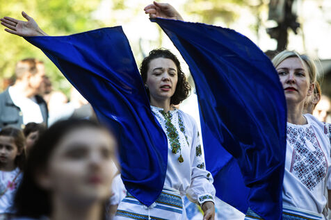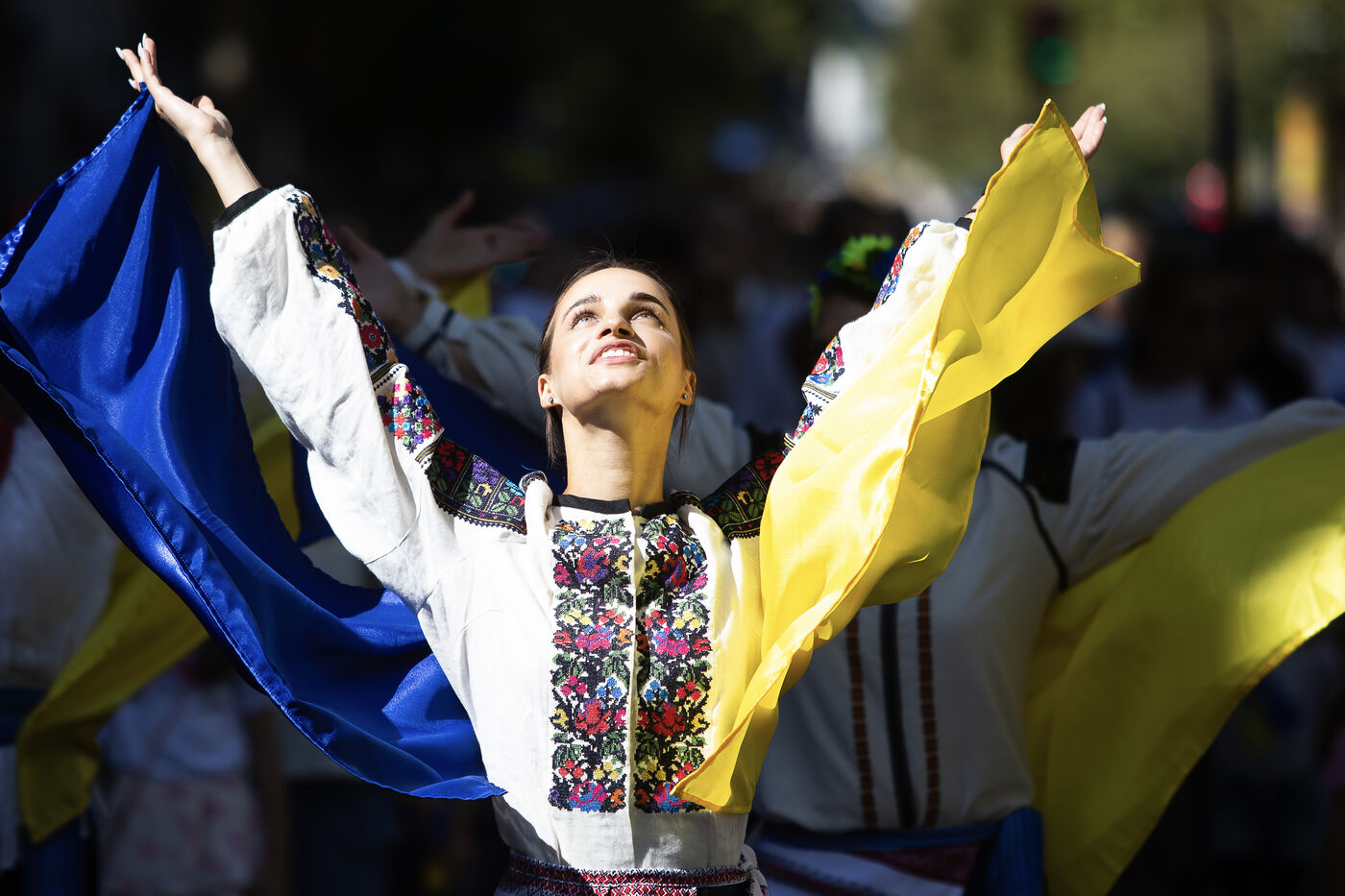 Ukrainians demonstrate in Paris for Ukrainian national holiday