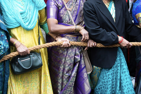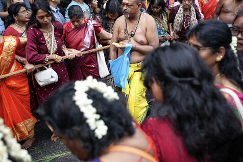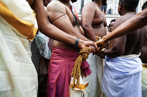 Ganesh, dieu hindou au corps humain et à tête d'éléphant est fêté chaque année dans les rues de Paris. Il attire les bons auspices sur les fidèles. la Communauté part du temple dédié à Ganesh dans le XVIIIe arrondissement de Paris et parcourt le quartier lors d'un dimanche de partage et de fête pour des milliers de participants à la procession.