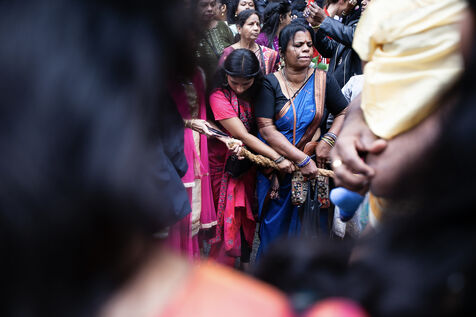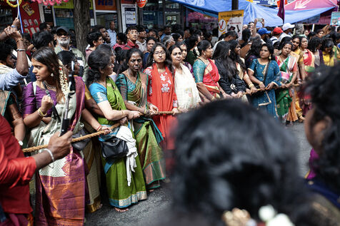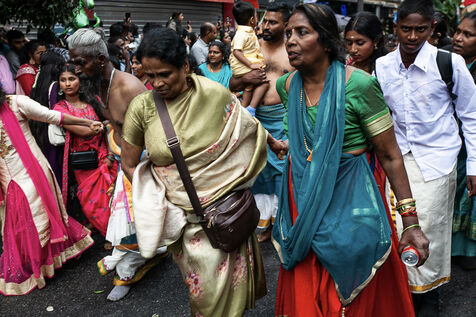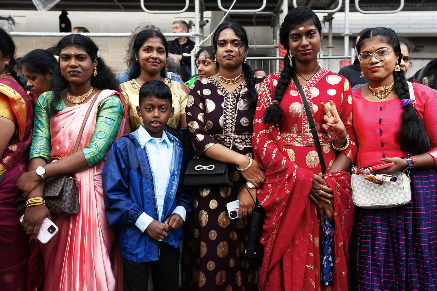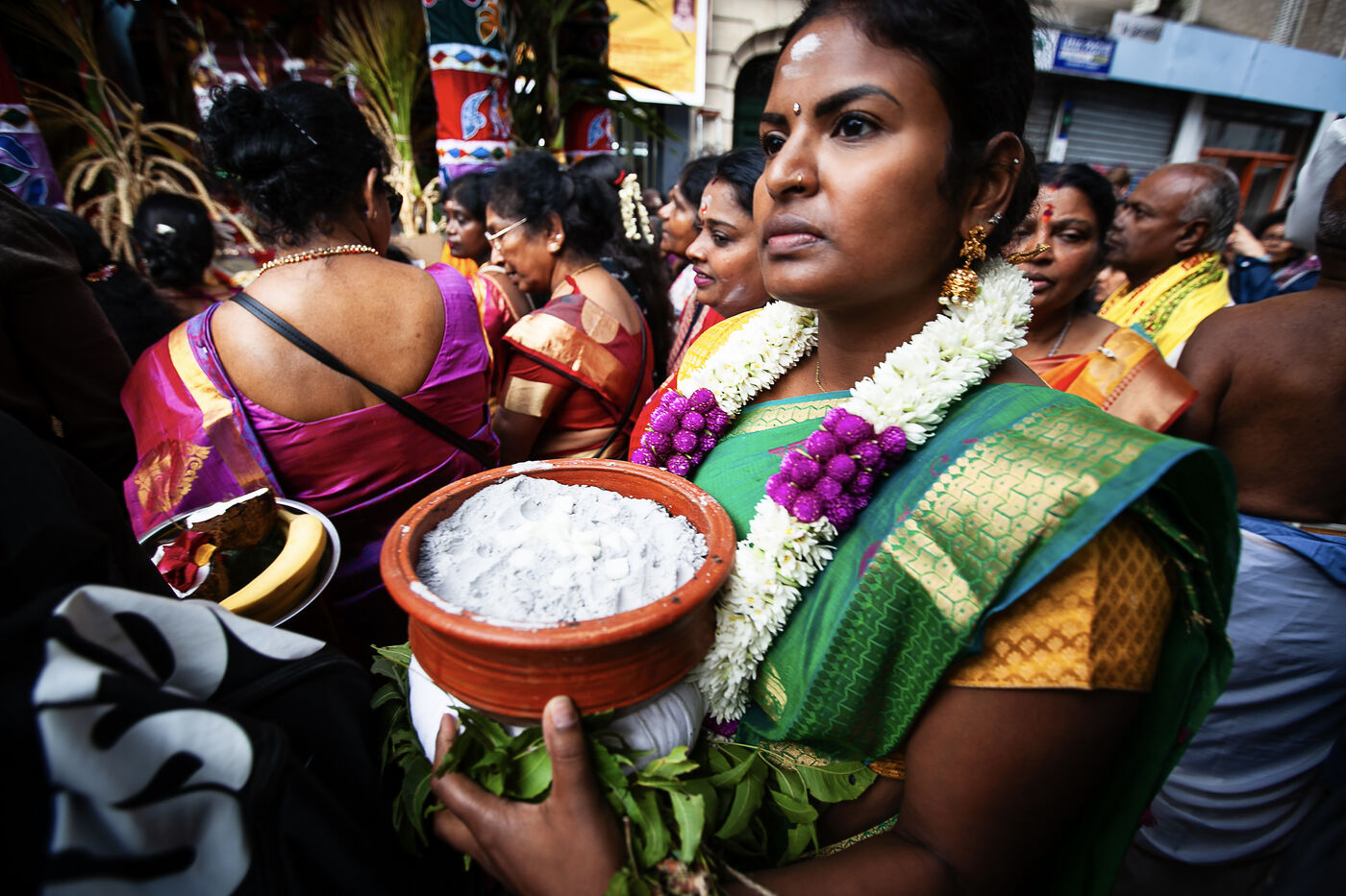Ganesh, the Hindu god with a human body and an elephant's head, is celebrated every year in the streets of Paris. He brings good fortune to the faithful. The community departs from the temple dedicated to Ganesh in the 18th arrondissement of Paris and travels through the neighborhood during a Sunday of sharing and celebration for thousands of participants in the procession.