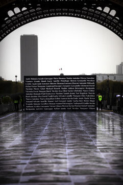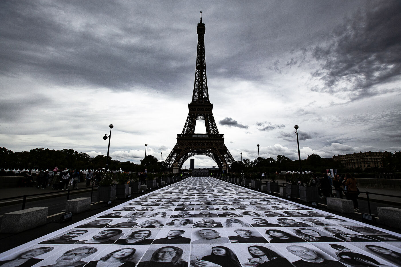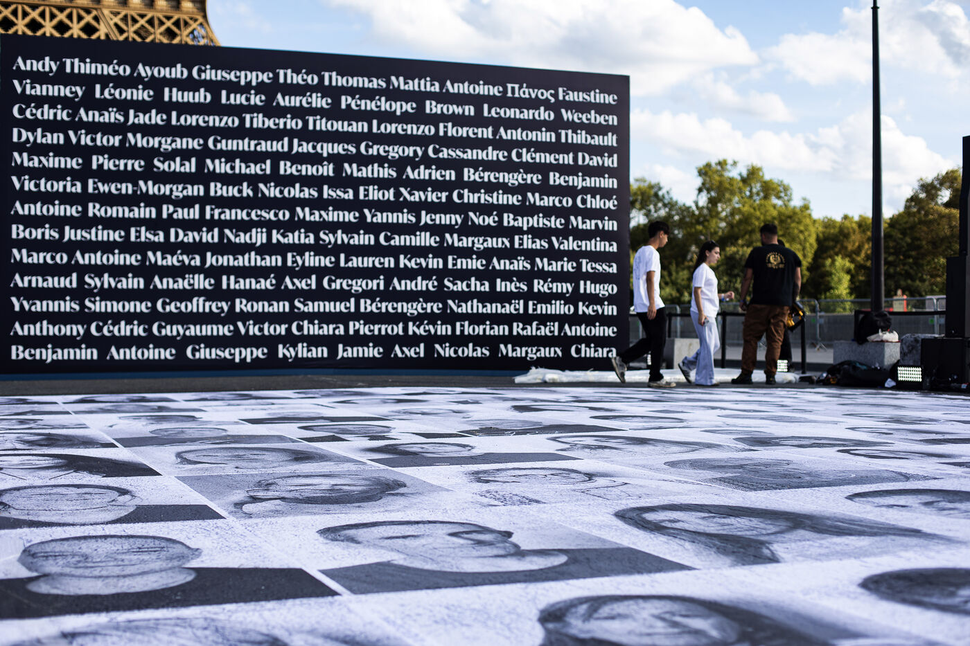 After the death of his son Antoine in a road accident caused by a drunk driver driving a stolen car on May 8, 2022, chef Yannick Alléno created the Antoine Alléno association "to prevent acts of violence against our children and to help victims under 25 years old and their families." To raise public awareness of this social issue, the chef teamed up with the artist JR to make the invisible visible. 1,500 portraits of relatives of road victims were pasted on September 12 on the roadway of the Pont d'Iena before being removed the next day to symbolize society's abandonment of co-victims.
