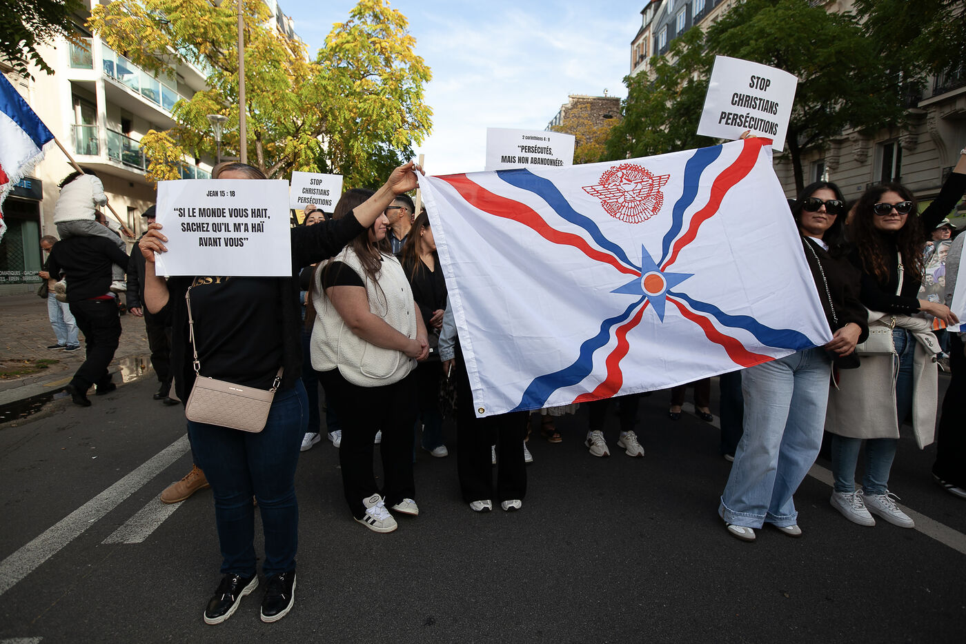 Several hundred people gathered in Place de la Nation before marching to Place de la Bastille to express their commitment to the Christian faith and denounce the abandonment of Christians by world leaders, who have failed to adequately respond to the mass killings targeting them.