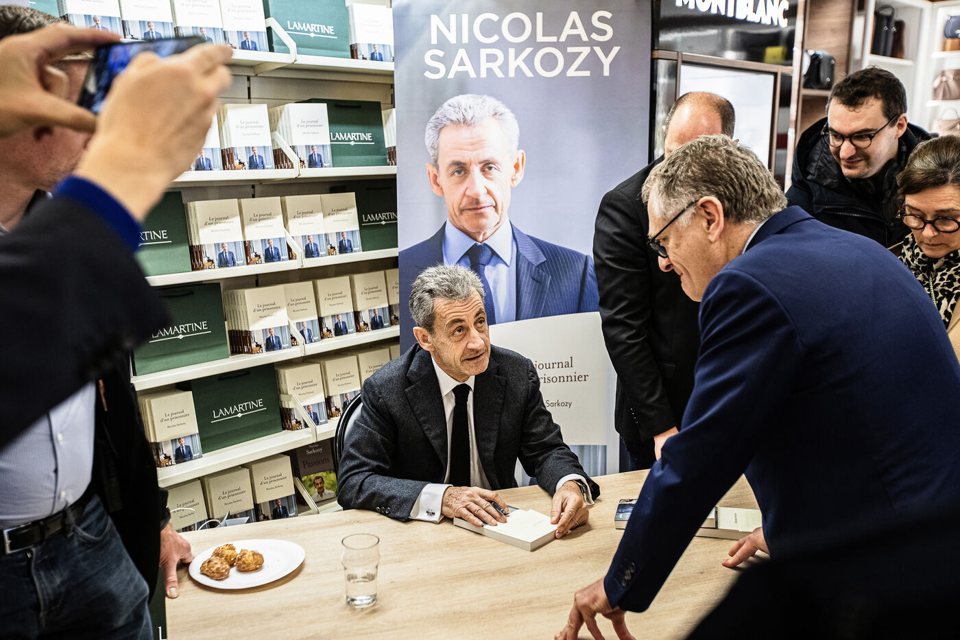 Former mayor of Neuilly, where he began his political career, and former member of parliament for the district before being elected president of the Republic in 2007, Nicolas Sarkozy traveled to his former constituency on the outskirts of Paris to meet with his supporters and sign copies of his book, Journal d'un Prisonnier (Diary of a Prisoner). In it, he recounts his experience of imprisonment after being found guilty in the first instance of conspiracy in the so-called Libyan affair by the Paris Judicial Court. He has appealed this decision, maintaining his innocence and denouncing what he considers to be judicial harassment against him.