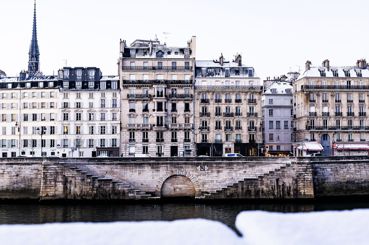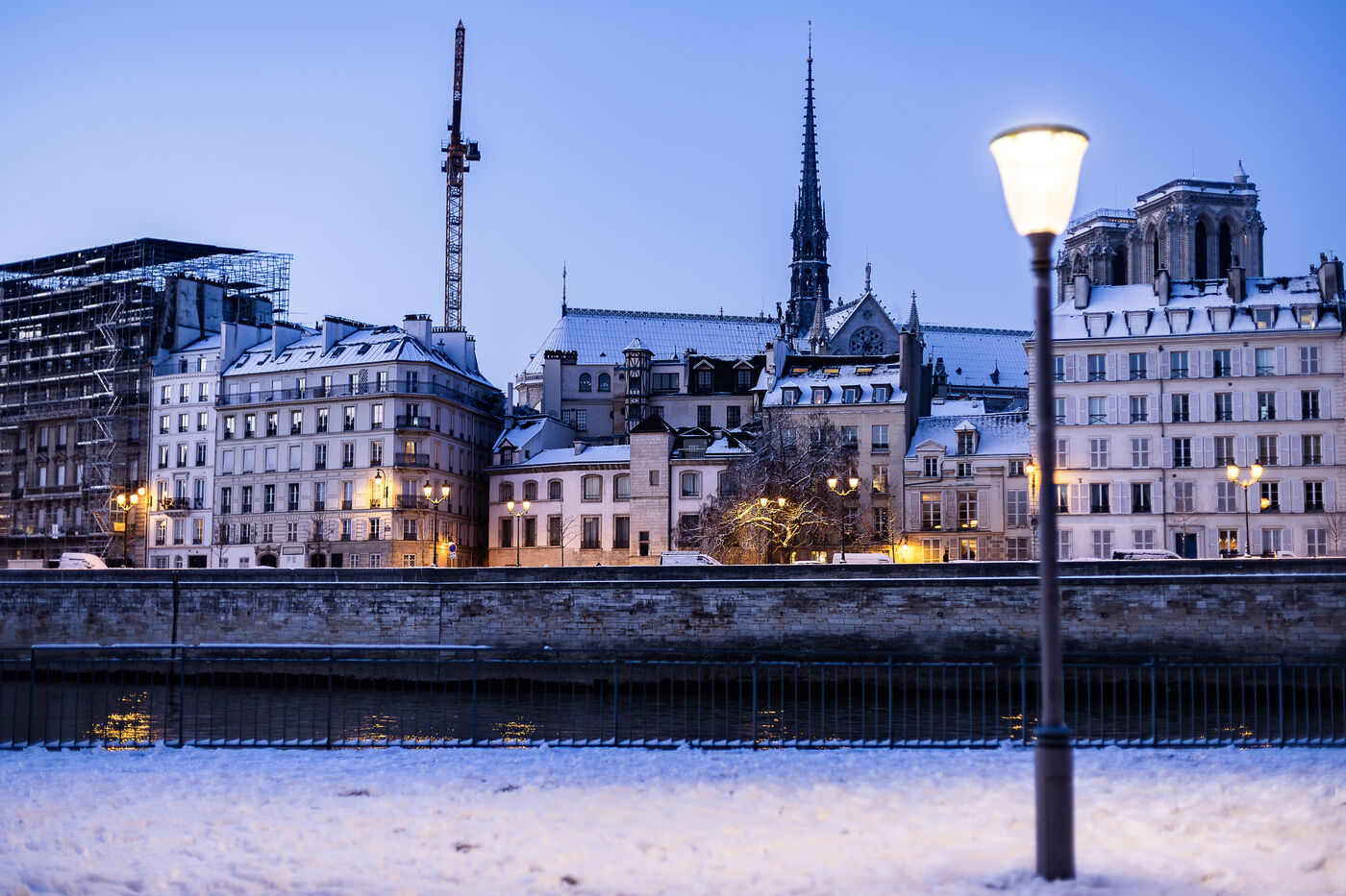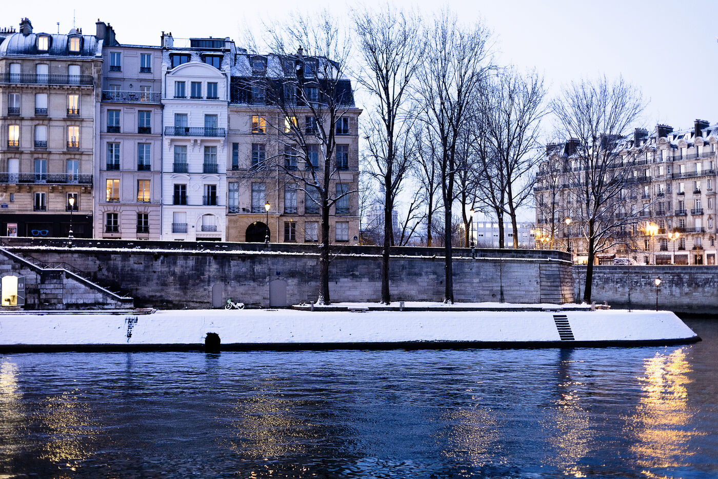 La journée du 6 janvier est marquée par la persistance de la neige tombée la veille sur Paris. Dans une ville qui se réveille enneigée, les Parcs publics sont fermés. Reste les berges de Seine et les vues extérieures aux allures de cartes postales touristiques.