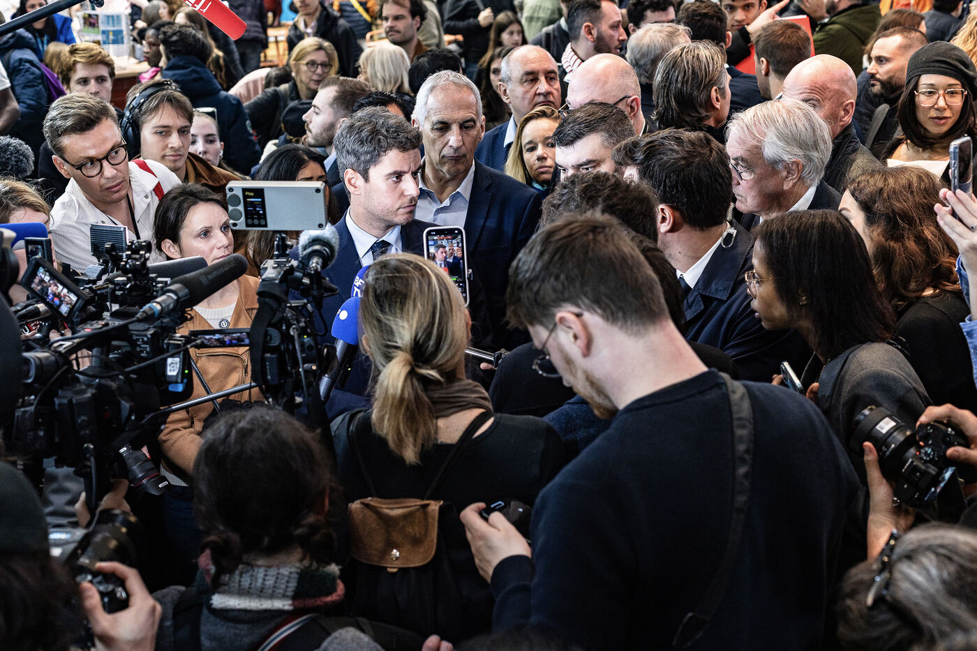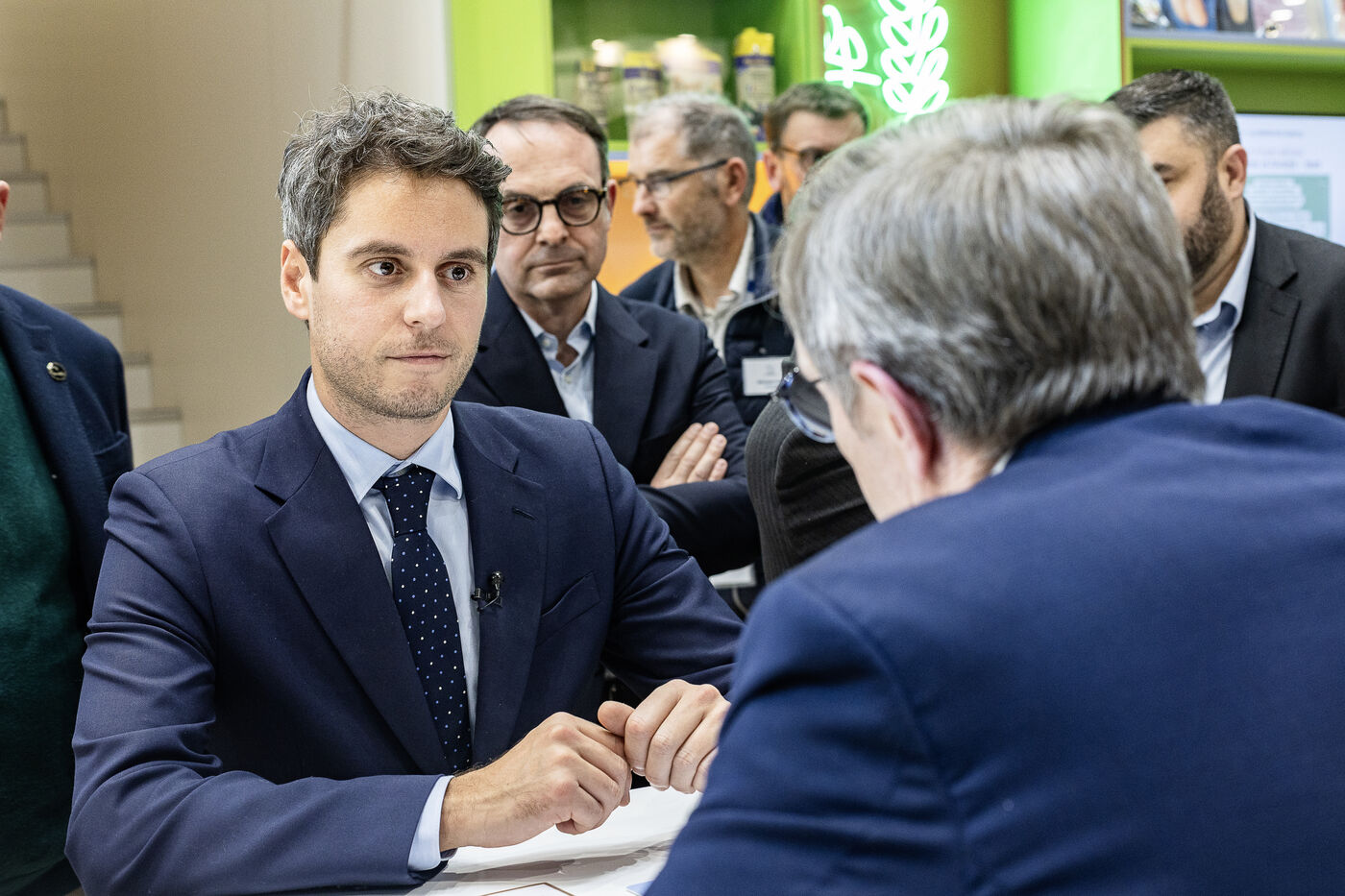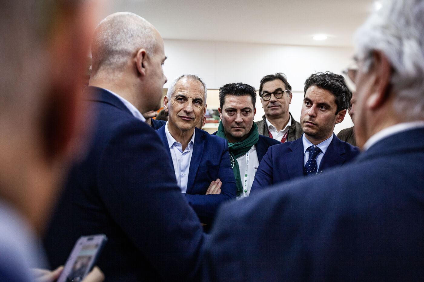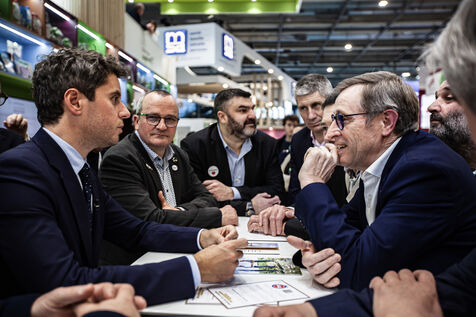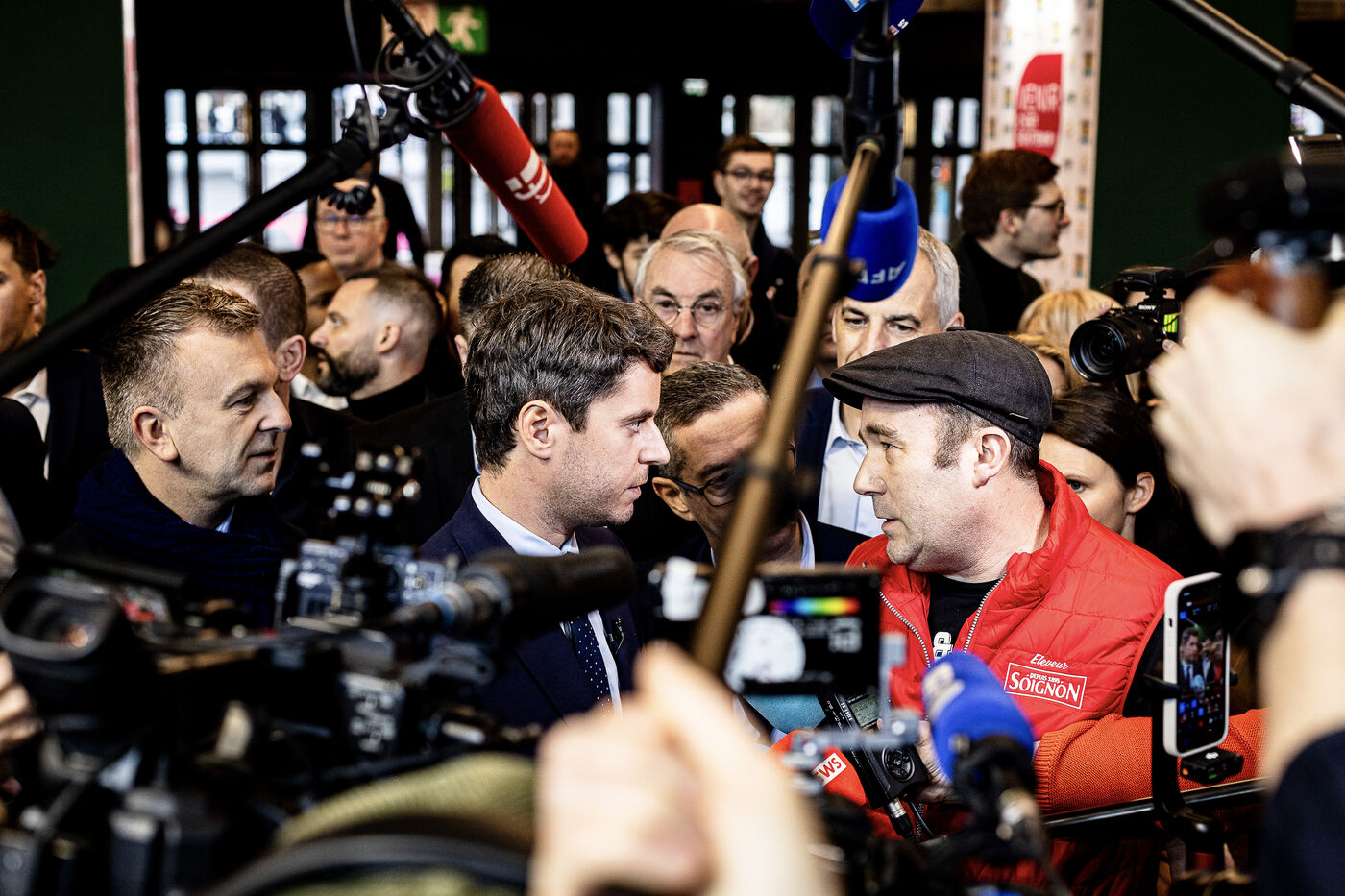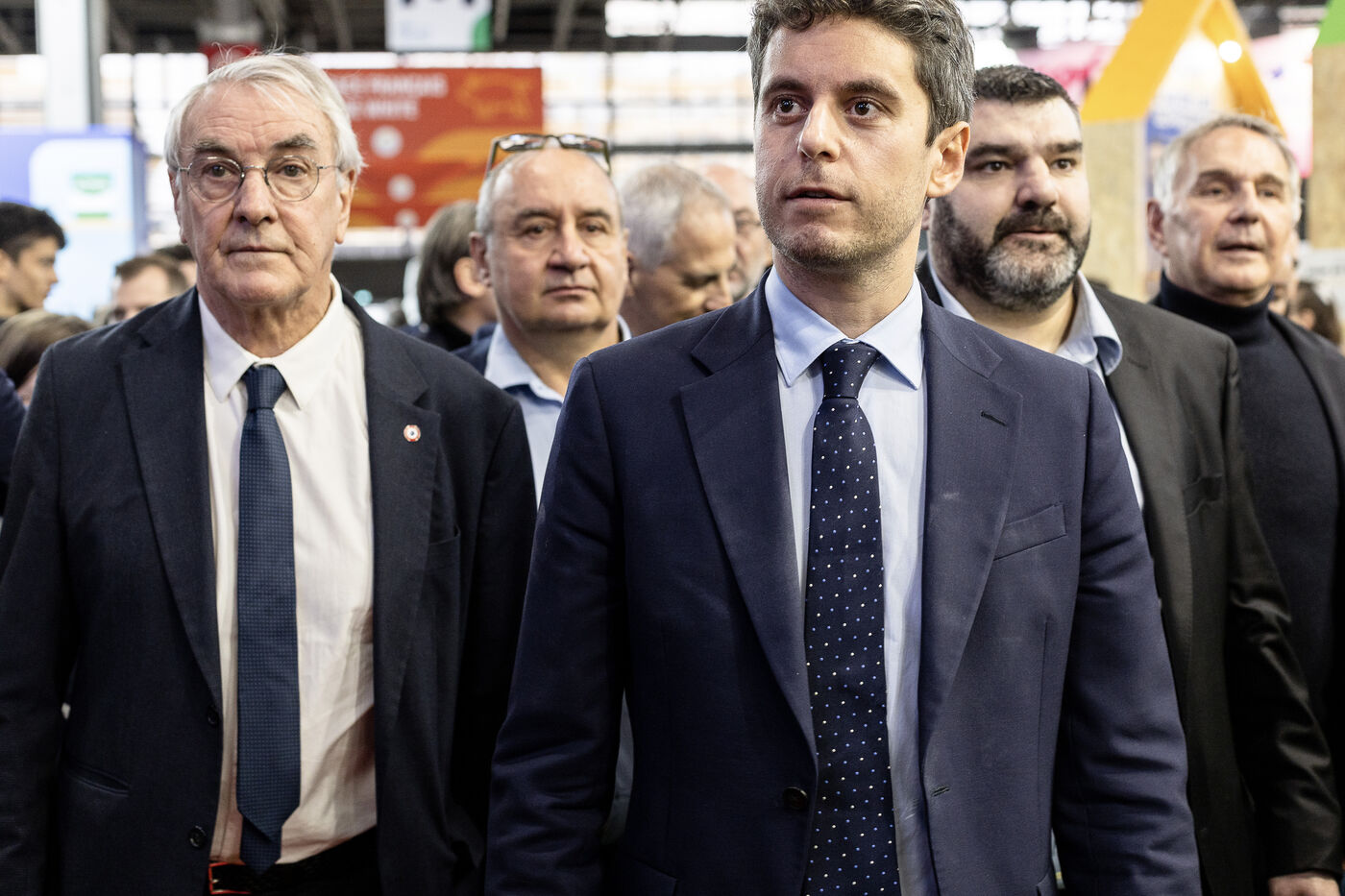 Former Prime Minister Gabriel Attal visited the International Agricultural Show where he walked the aisles meeting professionals, concluding his visit with a dialogue with the president of the FNSEA, Arnaud Rousseau.