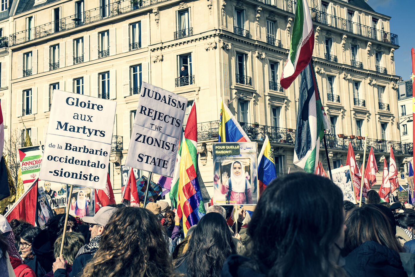 An anti-fascist, anti-racist, and anti-Zionist demonstration was organized by activist groups in Paris. Among the slogans, anti-American and anti-war slogans appeared alongside anti-Israel slogans and activists defending Palestine and Iran against war.
