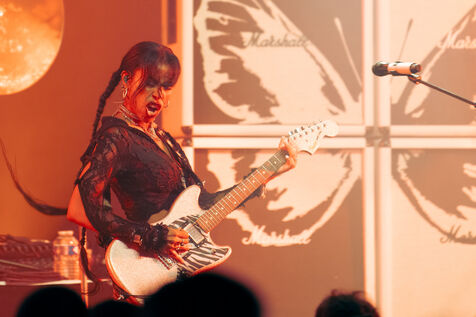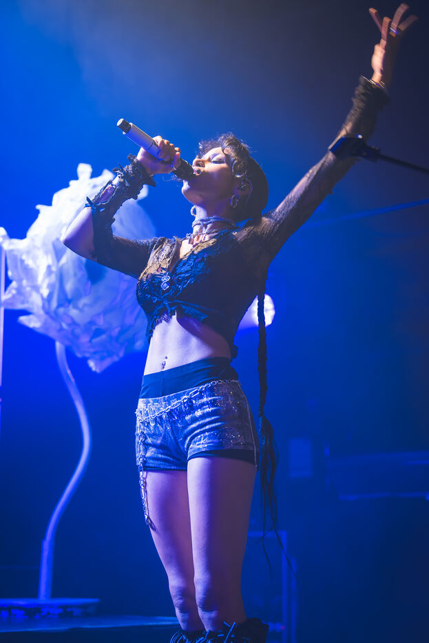 Final concert of the French tour by British band Nova Twins on stage at Le Chabada in Angers on October 7, 2025.