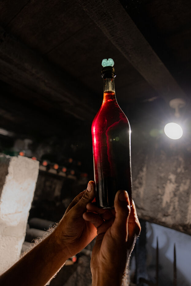 Emeri pays tribute to a bottle over 200 years old, found intact by Alain, sealed with emery.
