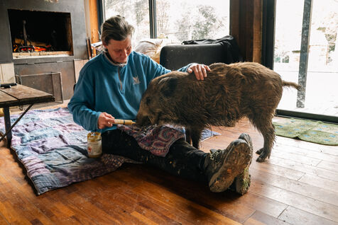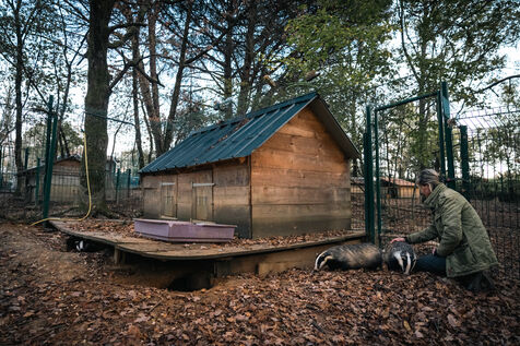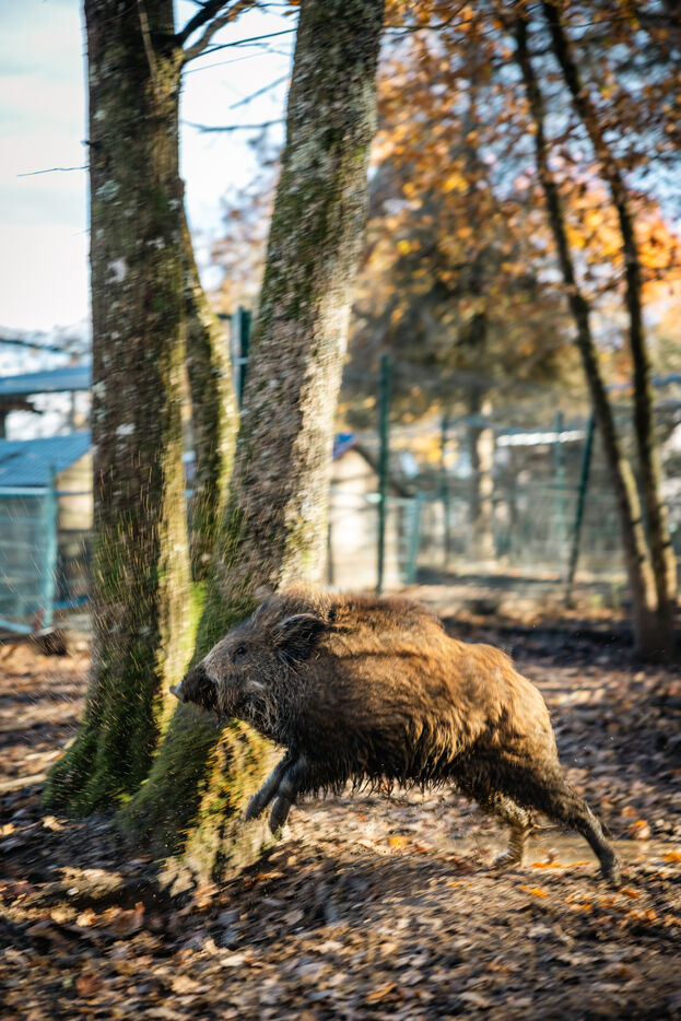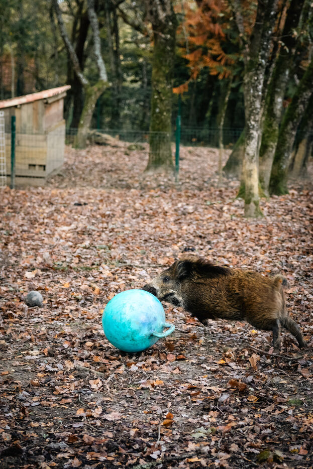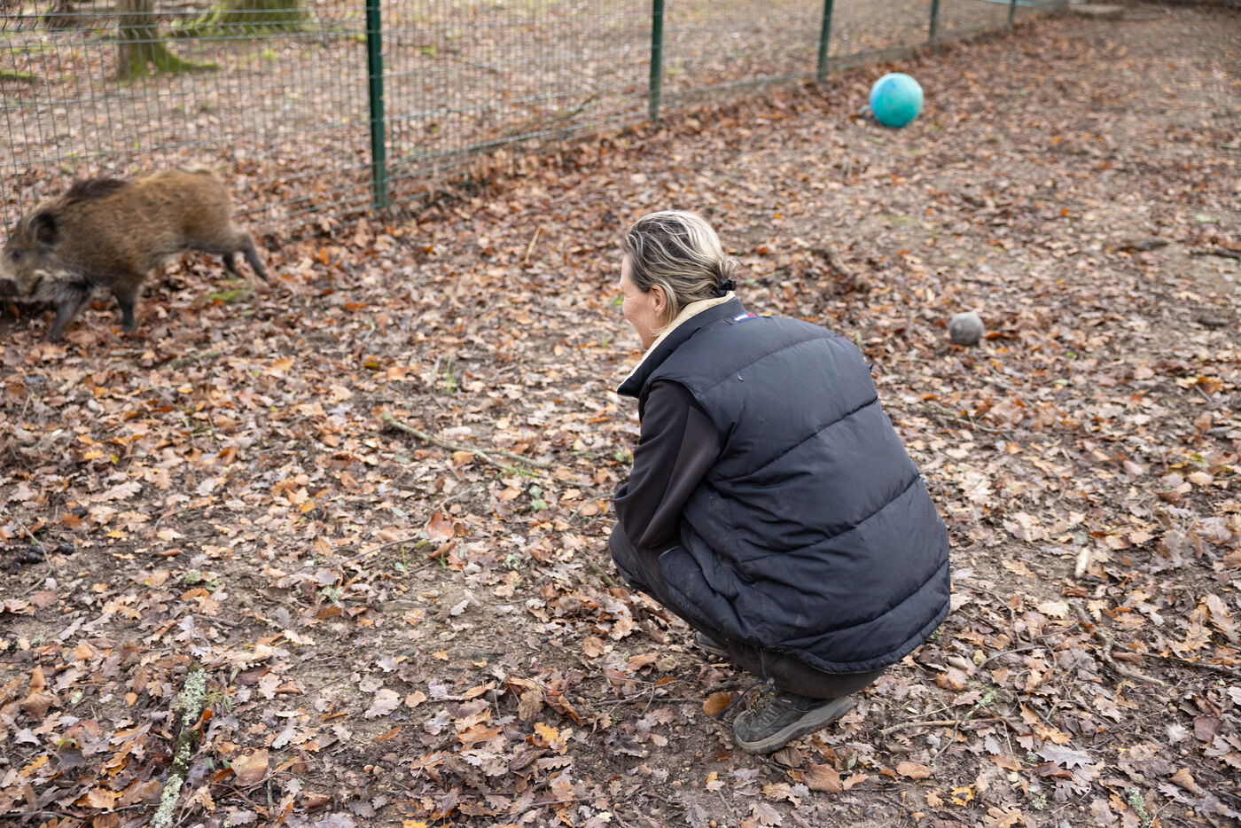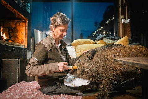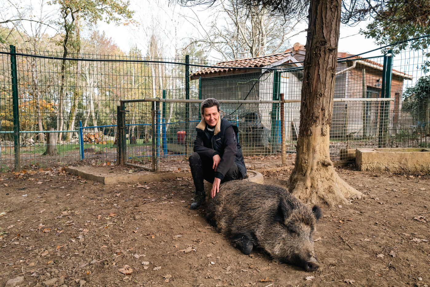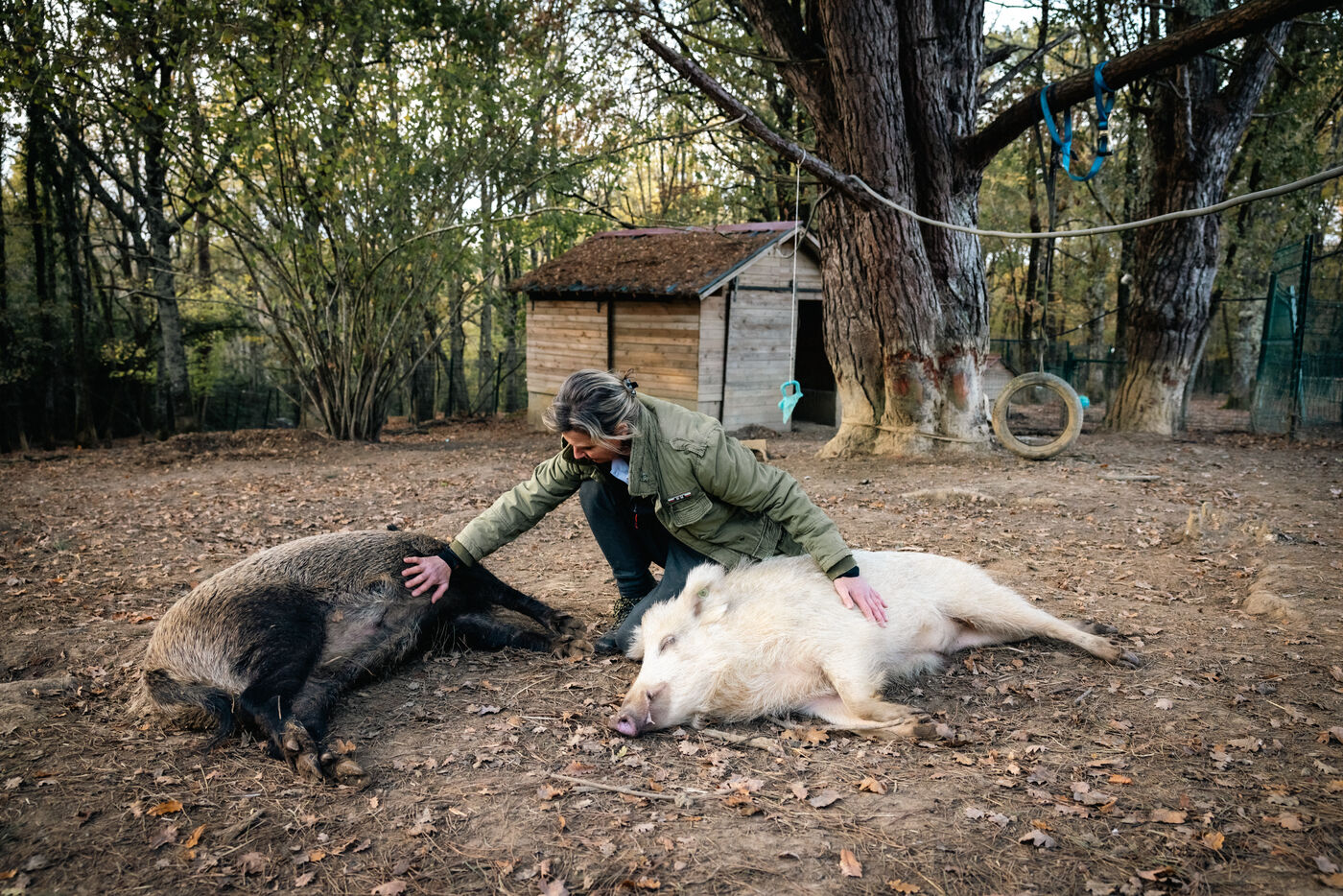 In 2014, Karine decided to devote her life to imprinted wild animals. In Gironde, she founded the Touche pas à mon popotte sanctuary, officially recognized in 2022, where wild boars and other rescued animals such as badgers live protected until the end of their days. Formative encounters, such as those with Sam and Lola, revealed deep bonds of attachment and the extraordinary emotional sensitivity of these often misunderstood animals.