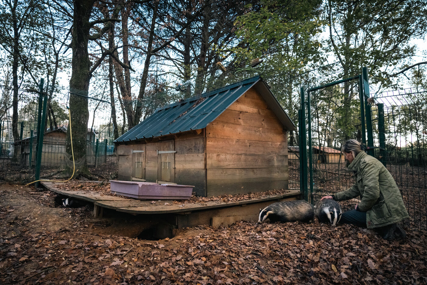 Karine a choisi en 2014 de consacrer sa vie aux animaux sauvages imprégnés. En Gironde, elle fonde le sanctuaire Touche pas à mon popotte, reconnu officiellement en 2022, où sangliers et autres animaux rescapés comme des blaireaux vivent protégés jusqu’à la fin de leurs jours. Des rencontres fondatrices, comme celles de Sam et Lola, ont révélé des liens d’attachement profonds et l’extraordinaire sensibilité émotionnelle de ces animaux souvent mal compris.