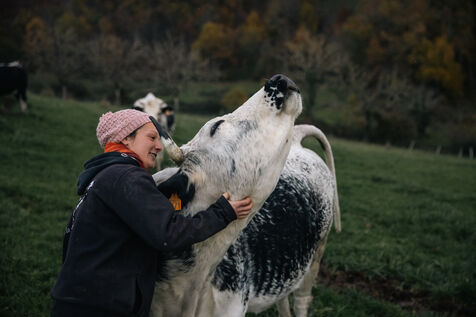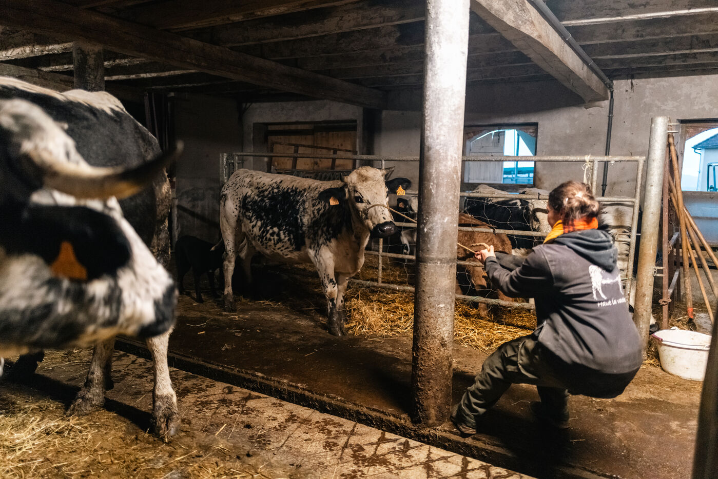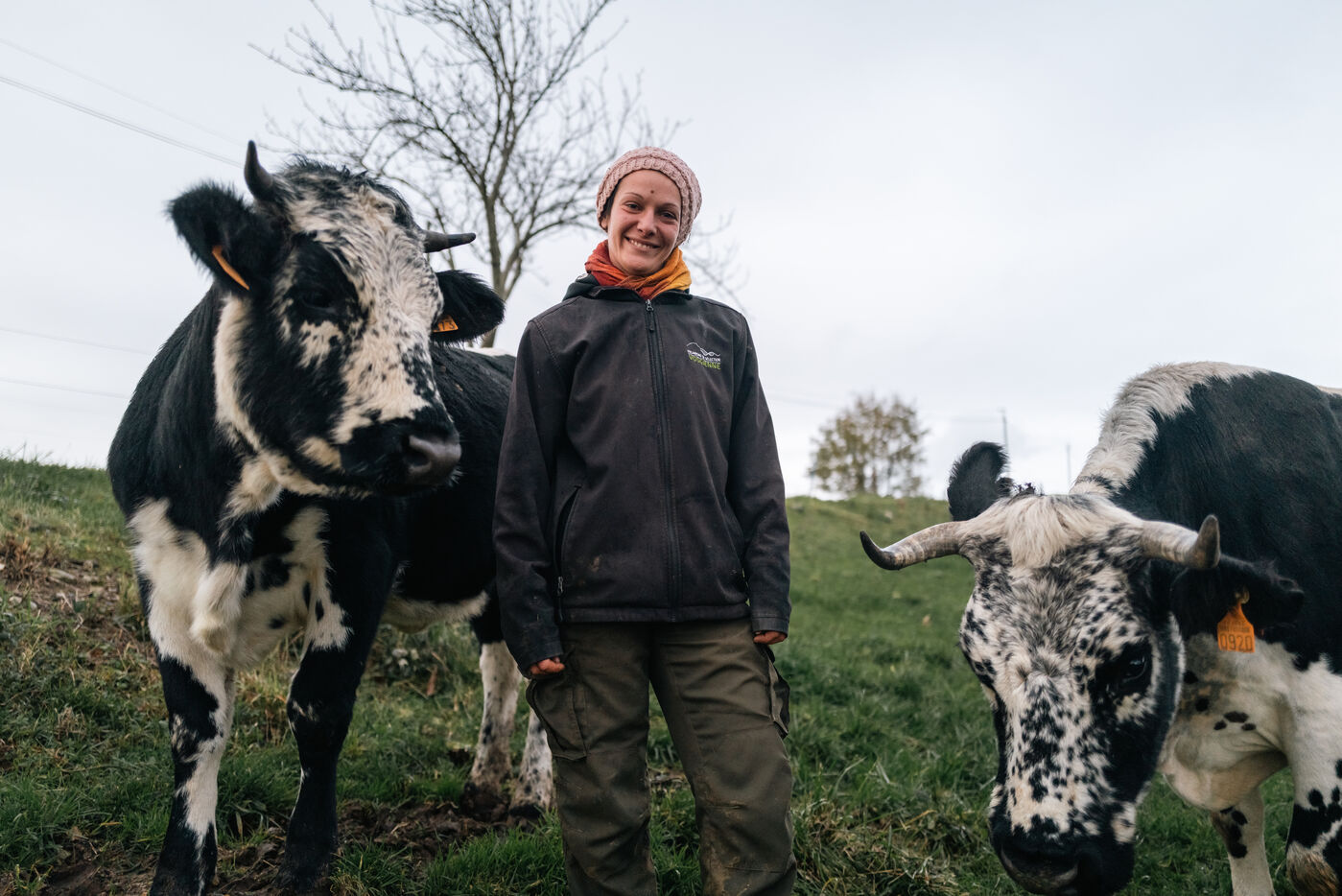Installée depuis 2017, issue d’une lignée de bouchers en Alsace, elle développe une agriculture en circuit court et élève une quinzaine de veaux de race Vosgienne par an, patrimoine génétique qu’elle s’attache à préserver. Refusant d’intégrer les regroupements locaux de la filière viande, elle doit aujourd’hui faire face à la fermeture de l’abattoir le plus proche : ses animaux sont transportés jusqu’à Aurillac, dans le Cantal, puis les carcasses sont découpées à Sarlat, en Dordogne, avant de revenir à la ferme. Un trajet total d’environ 300 km, contre 60 km auparavant, qui illustre les difficultés croissantes rencontrées par une productrice locale indépendante face à la concentration de la filière viande, à l’accès restreint aux marchés et aux enjeux de bien-être animal.