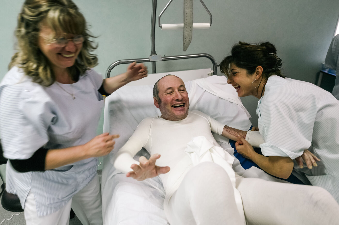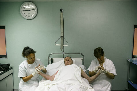 Going through fire transforms the individual in two ways: it destroys one body and creates a new one. The burn “gives” the individual a new identity. Someone who has been burned in the face will be confronted with this change even more when they have to renew their identity documents. I don't think I've ever met anyone who gets used to their scar, but many burn victims take life head-on. “You don't choose your burn, you live with it.” Here we follow Danielle, Jacques, Michael, and Joel during their stay at the Tour de Gassie in Bruges, France