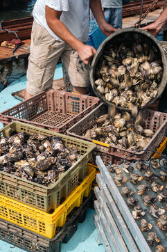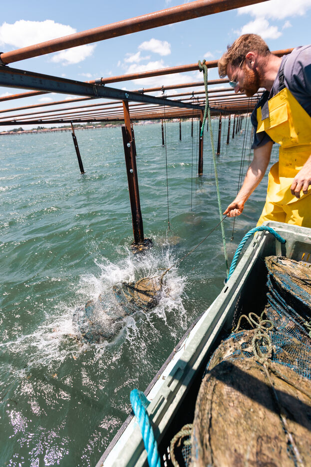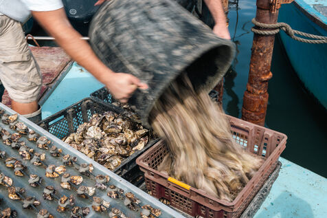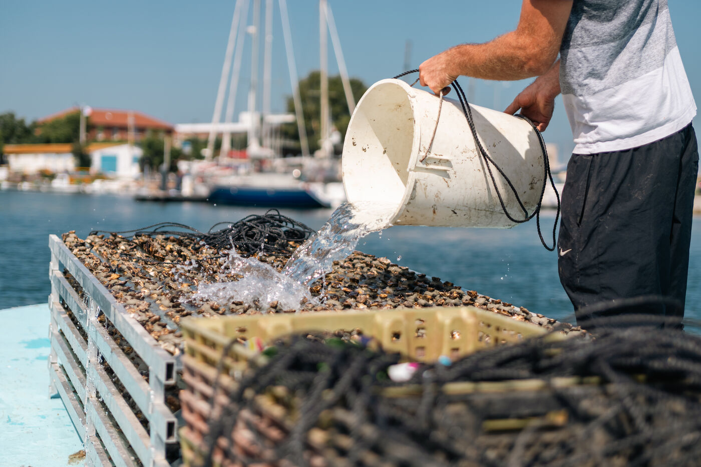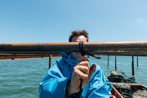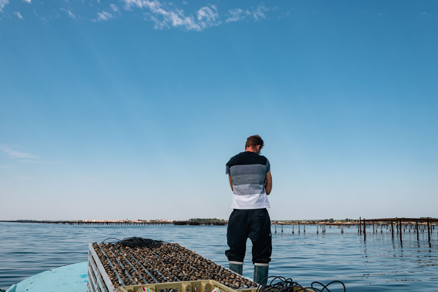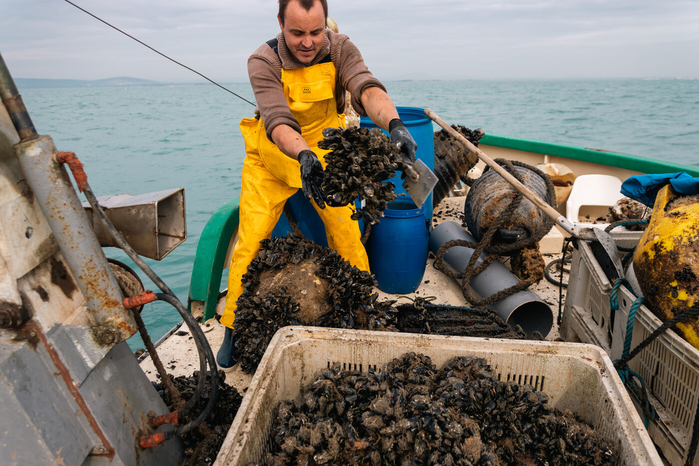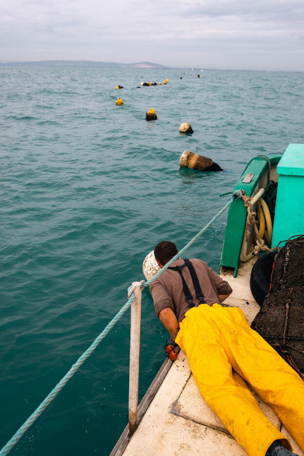 Shellfish farmers in the Thau lagoon