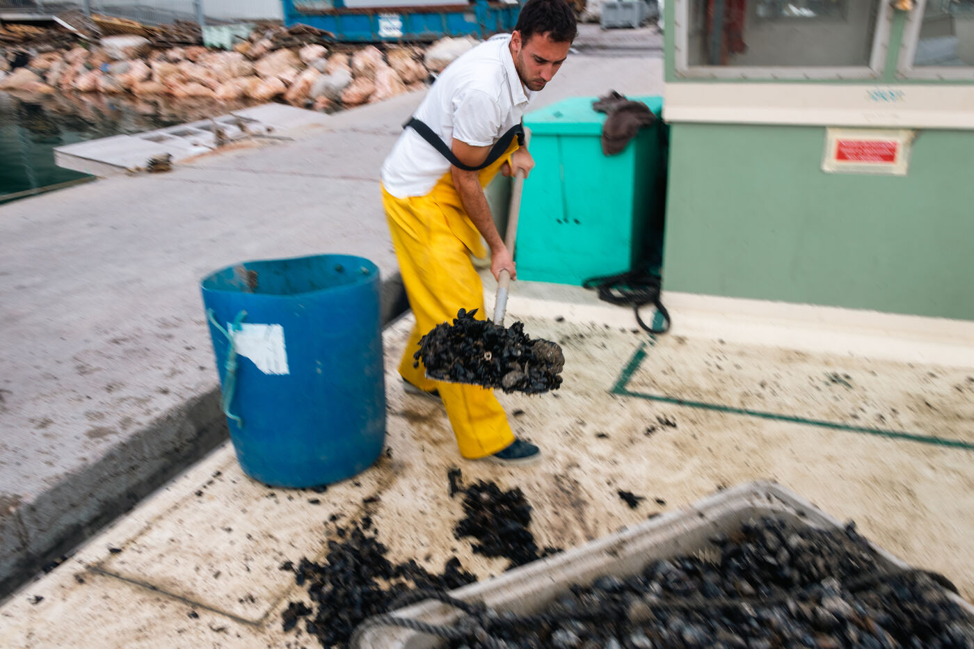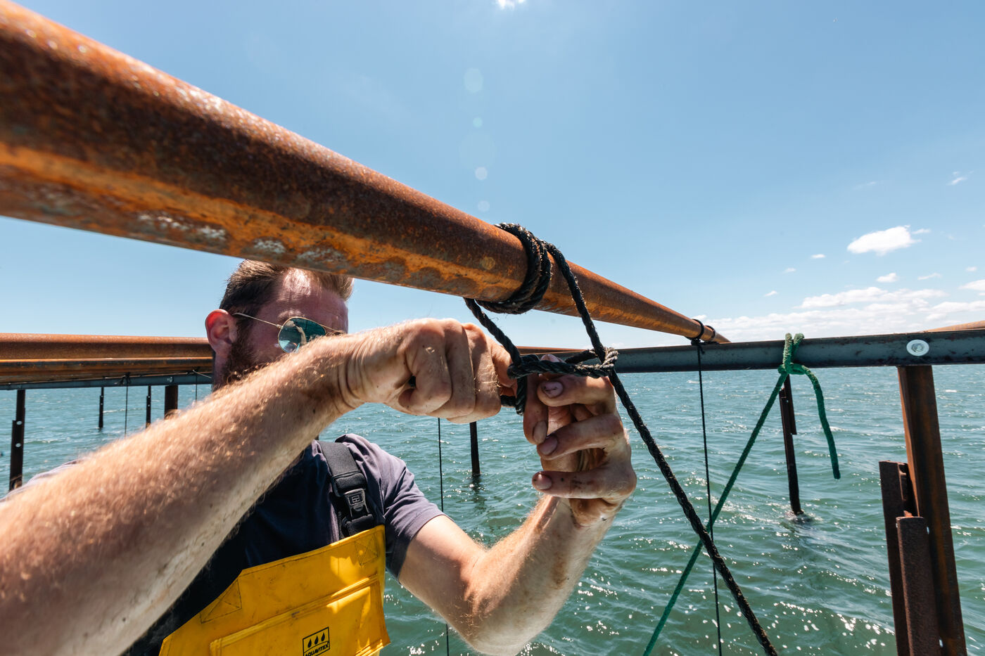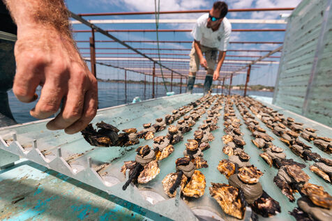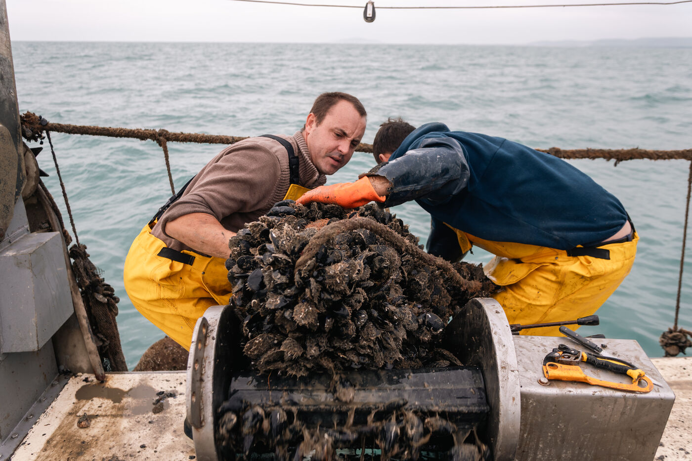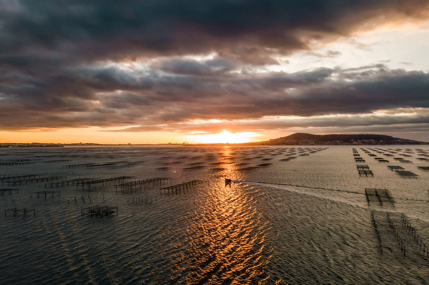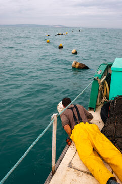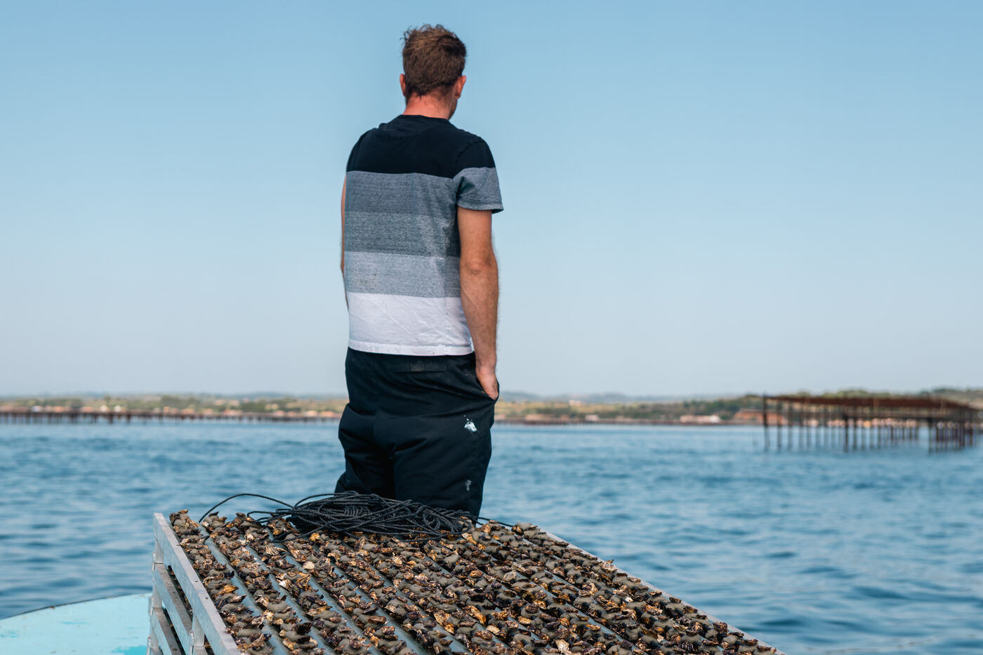 Shellfish farmers in the Thau lagoon