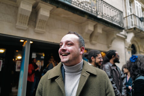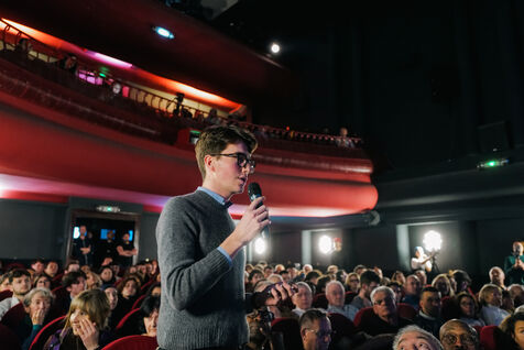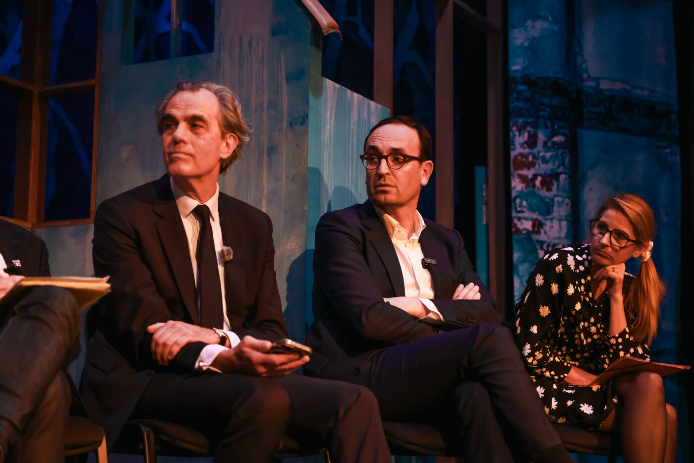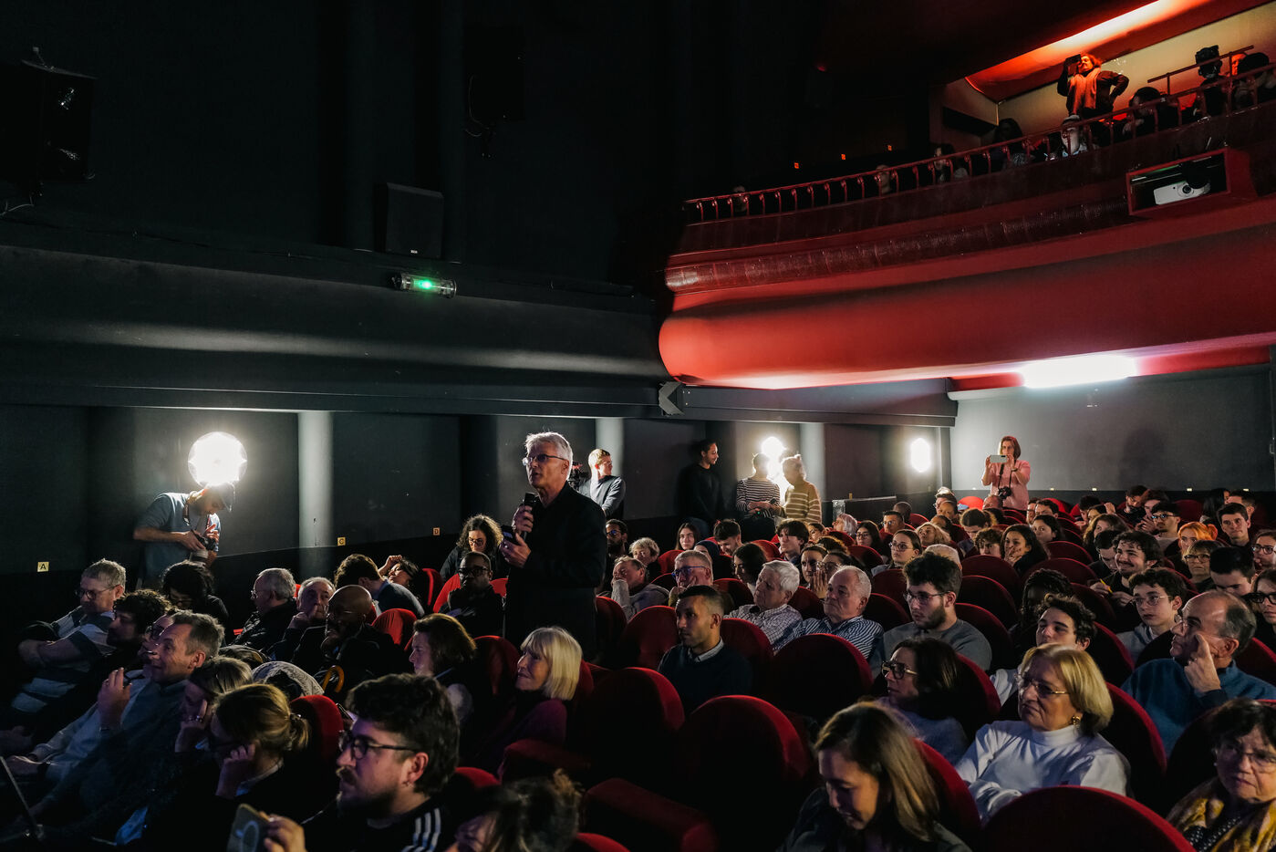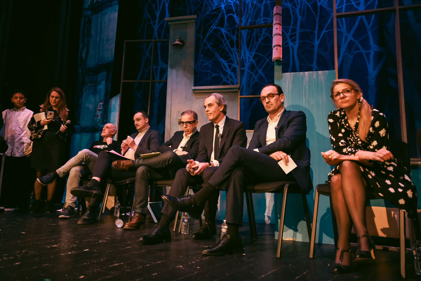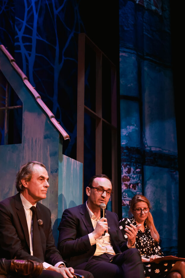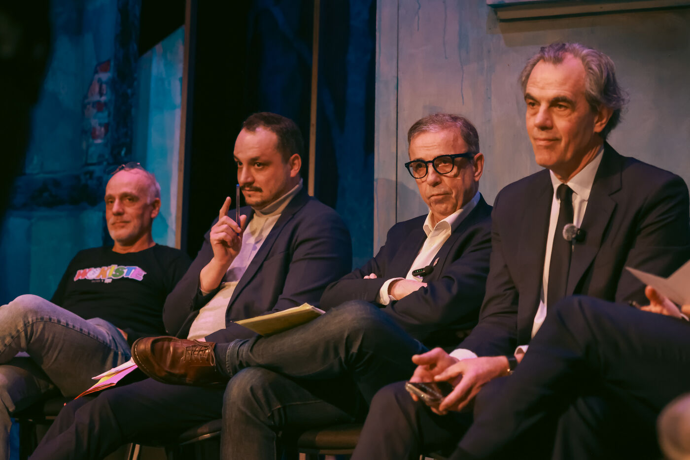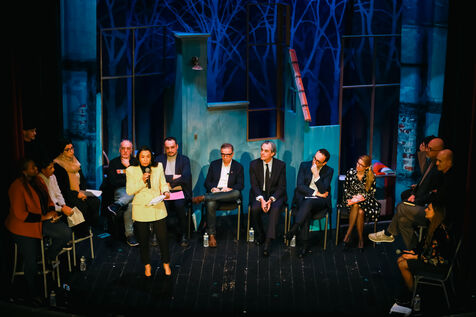 Débat public organise par la chaire de recherche internationale "Inclusivité et Santé", Université de Bordeaux, dirigée par la sociologue de l’université de Bordeaux Yamina Meziani qui à réunis, de gauche a droite, Philippe Poutou, Nordine Raymond, Pierre Hurmic, Philippe Dessertine, Thomas Cazenave, Virginie Bonthoux-Tournay; candidats aux municipales 2026 de la ville de Bordeaux, France. Débat publique lors duquel Yves Simone, candidat indépendant à fait part de son mécontentement de ne pas participer au débat sur scène.