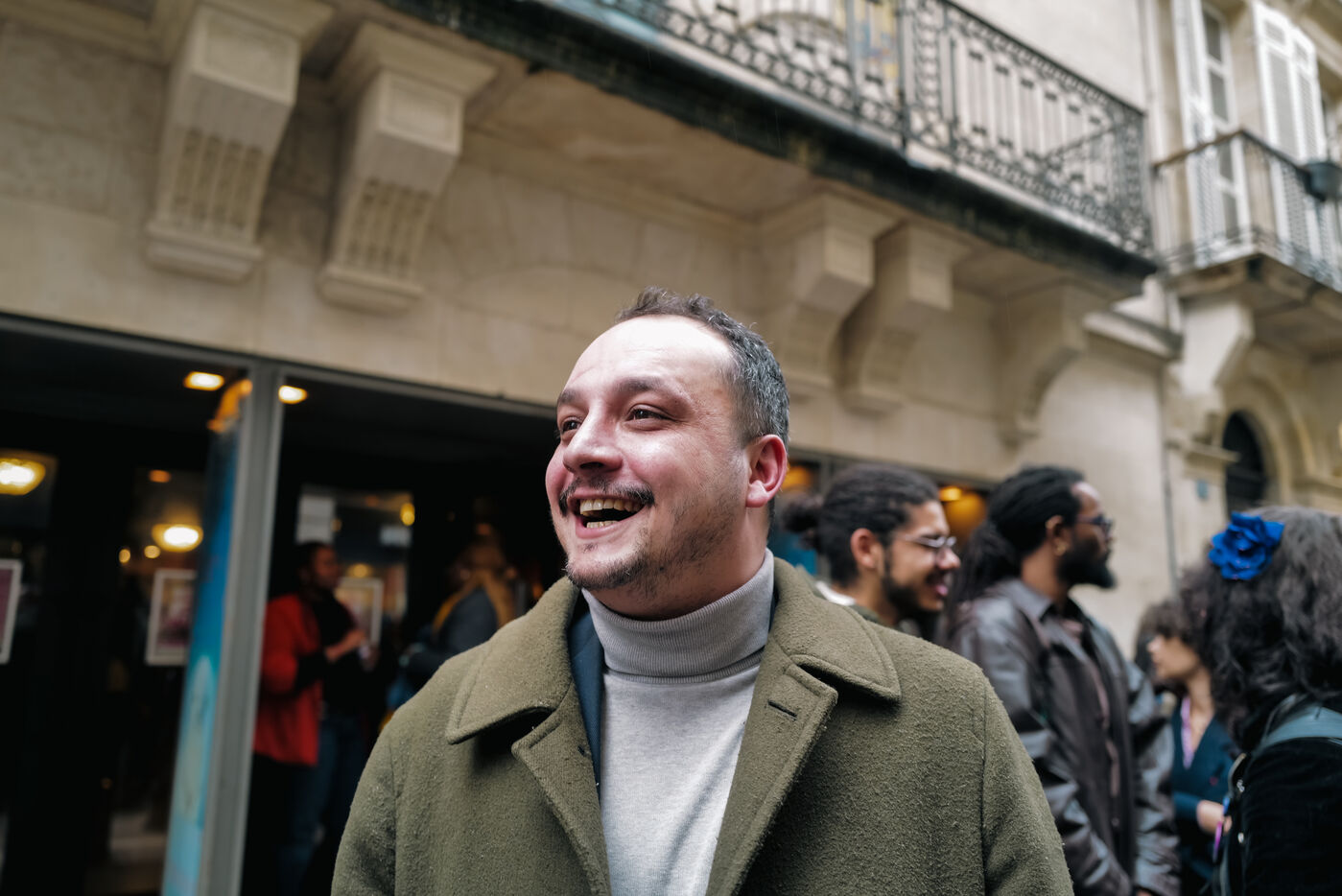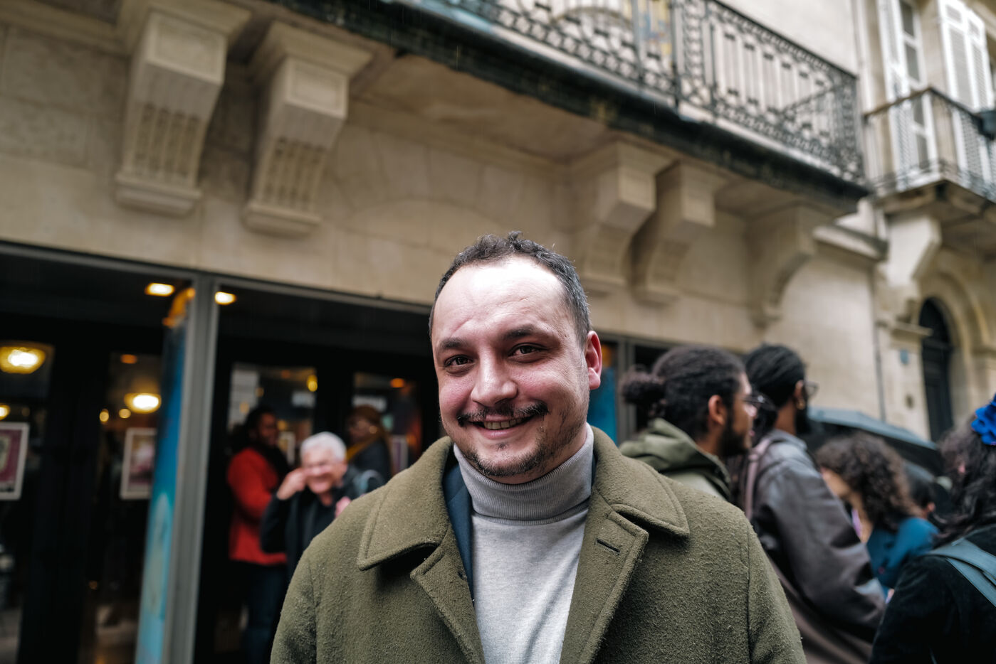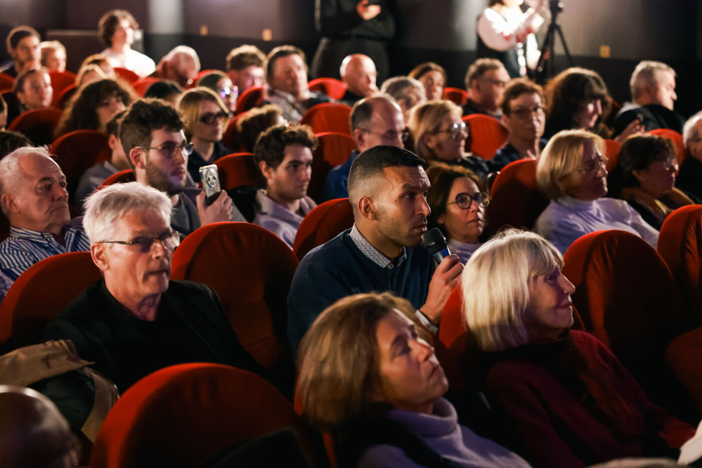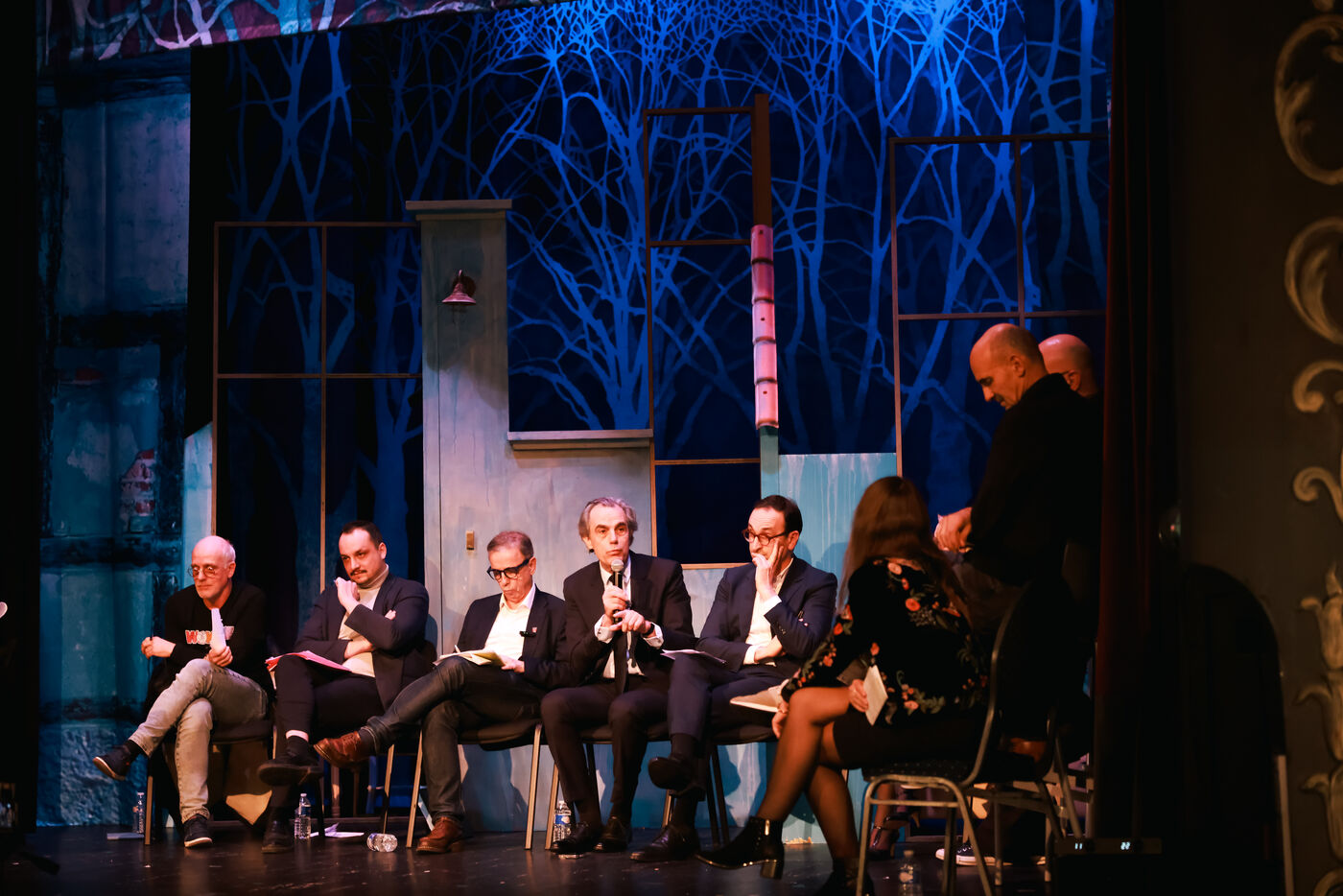 Public debate organized by the International Research Chair “Inclusiveness and Health,” University of Bordeaux, led by sociologist Yamina Meziani from the University of Bordeaux, bringing together, from left to right, Philippe Poutou, Nordine Raymond, Pierre Hurmic, Philippe Dessertine, Thomas Cazenave, and Virginie Bonthoux-Tournay; candidates for the 2026 municipal elections in the city of Bordeaux, France. Public debate during which Yves Simone, an independent candidate, expressed his dissatisfaction at not being allowed to participate in the debate on stage.
