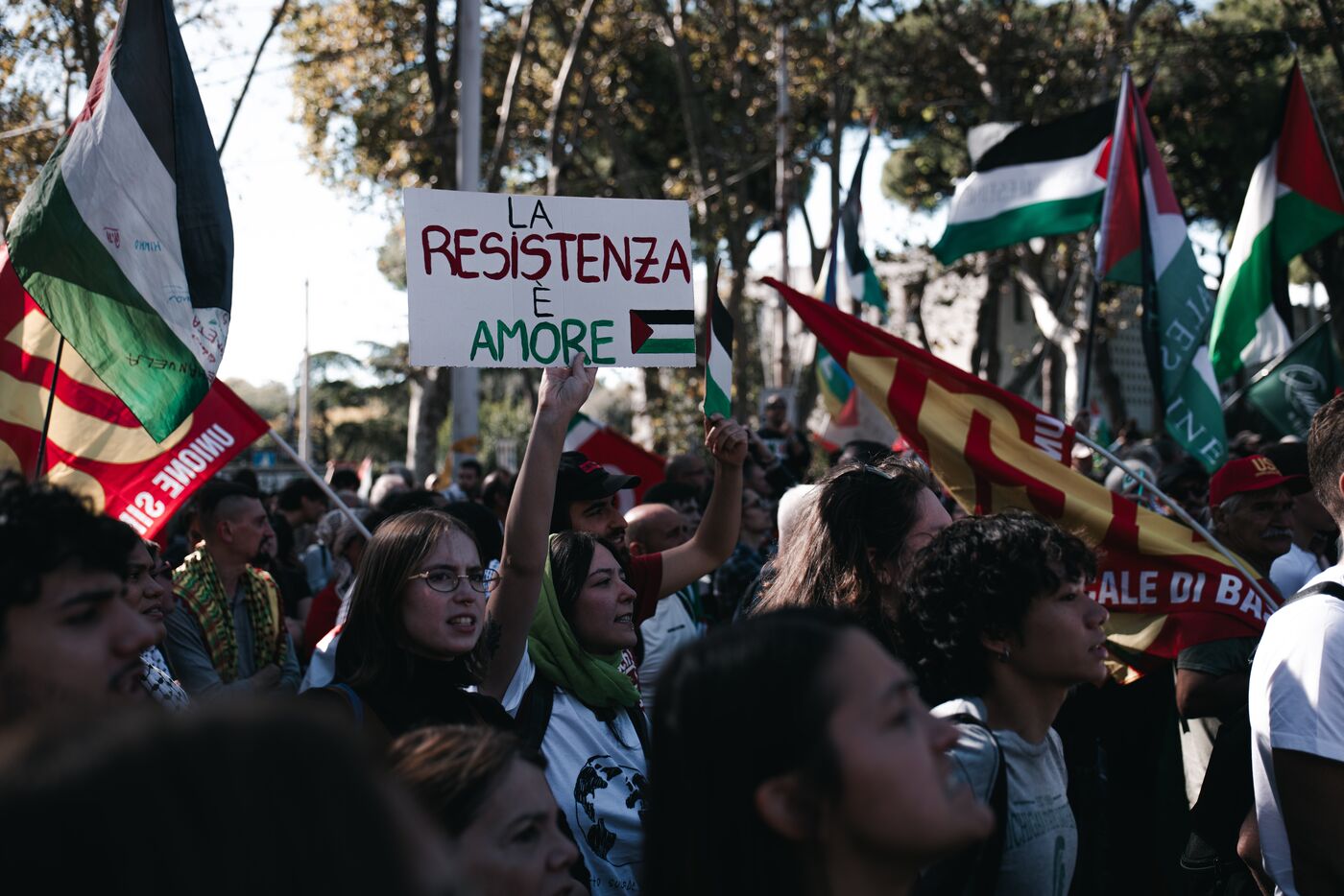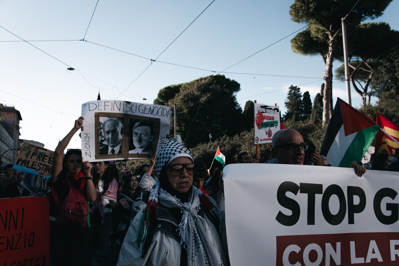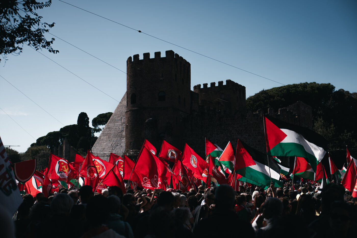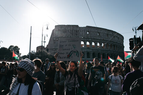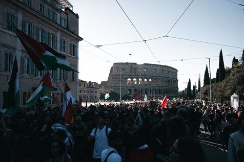Environ plusieurs dizaines de milliers de personnes ont participé aux manifestations pro-palestiniennes à Rome le 4 octobre 2025. Organisées avec le soutien des principaux syndicats italiens après une grève générale nationale, ces marches font suite à l’interception par Israël de la flottille humanitaire Global Sumud acheminant des fournitures à Gaza. Les manifestants ont brandi des drapeaux palestiniens et syndicaux, porté des banderoles et des affiches, et ont défilé dans des lieux emblématiques du centre-ville, notamment le Colisée et San Giovanni in Laterano, perturbant temporairement la circulation et les transports publics.