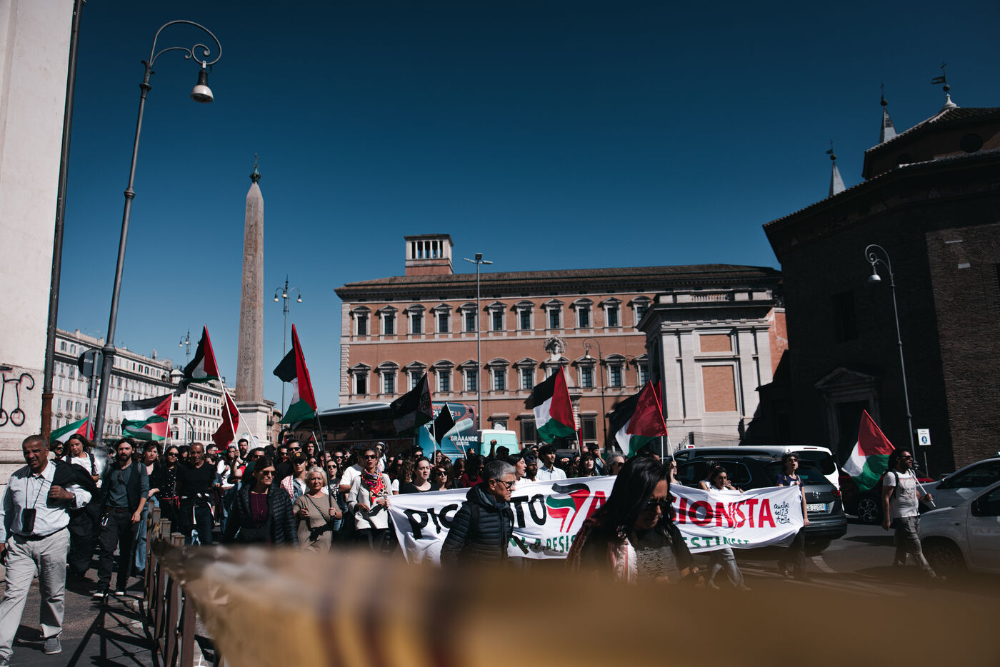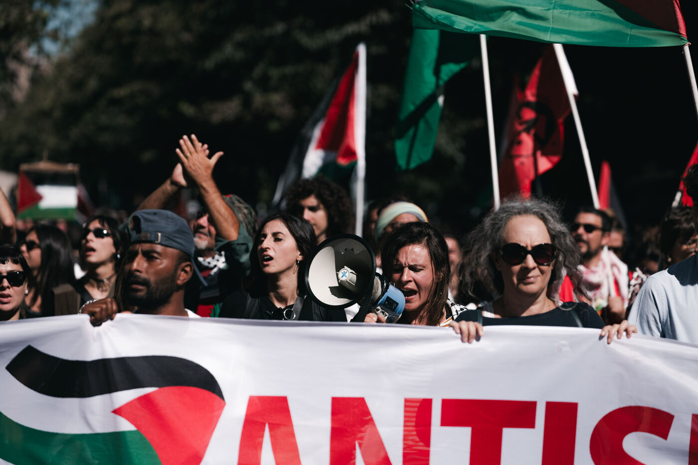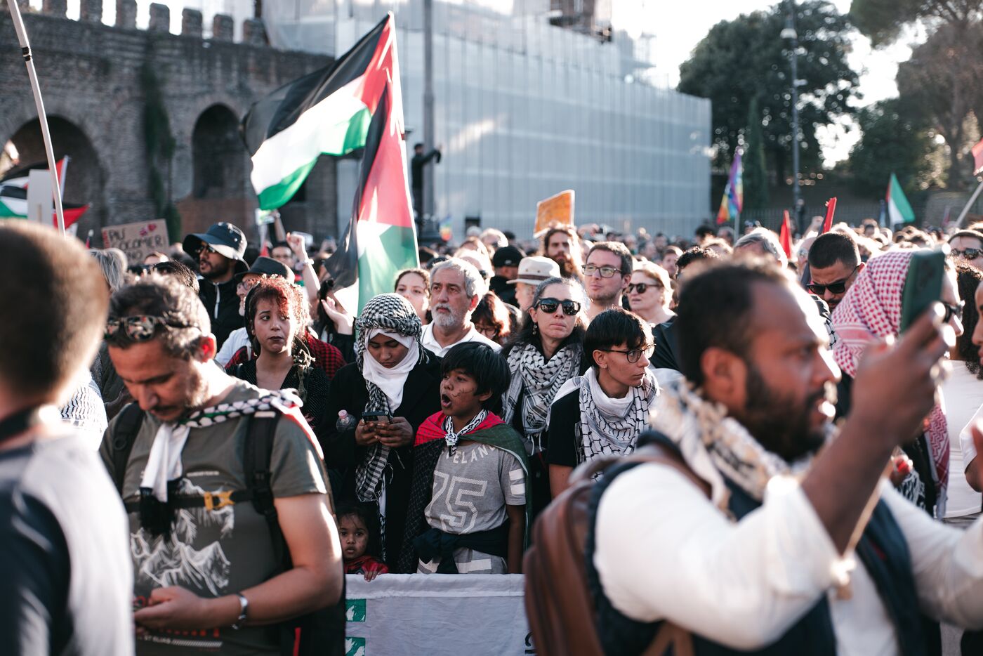Environ plusieurs dizaines de milliers de personnes ont participé aux manifestations pro-palestiniennes à Rome le 4 octobre 2025. Organisées avec le soutien des principaux syndicats italiens après une grève générale nationale, ces marches font suite à l’interception par Israël de la flottille humanitaire Global Sumud acheminant des fournitures à Gaza. Les manifestants ont brandi des drapeaux palestiniens et syndicaux, porté des banderoles et des affiches, et ont défilé dans des lieux emblématiques du centre-ville, notamment le Colisée et San Giovanni in Laterano, perturbant temporairement la circulation et les transports publics.