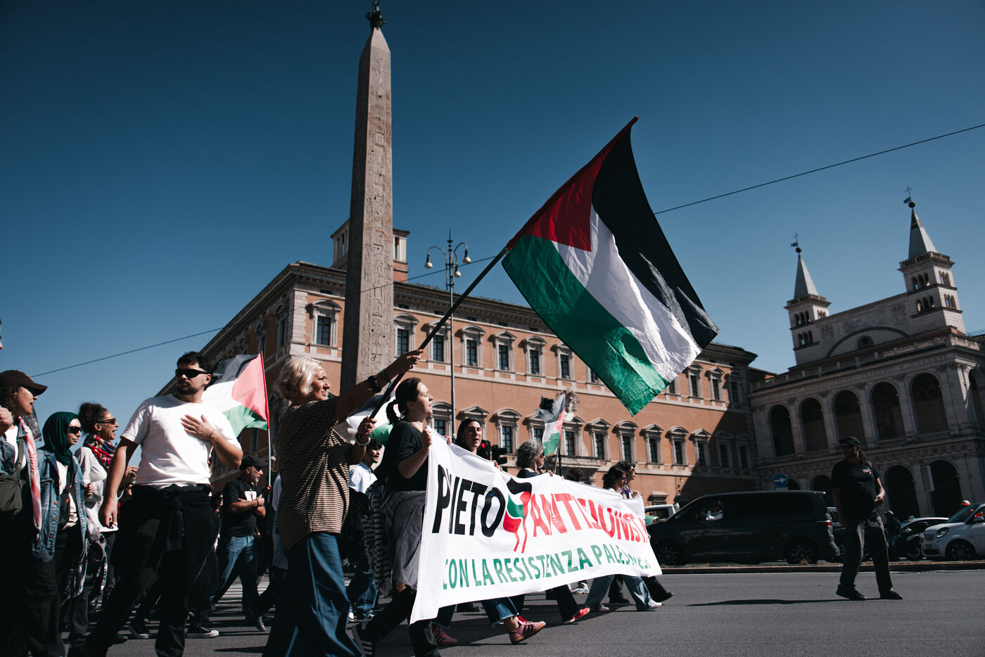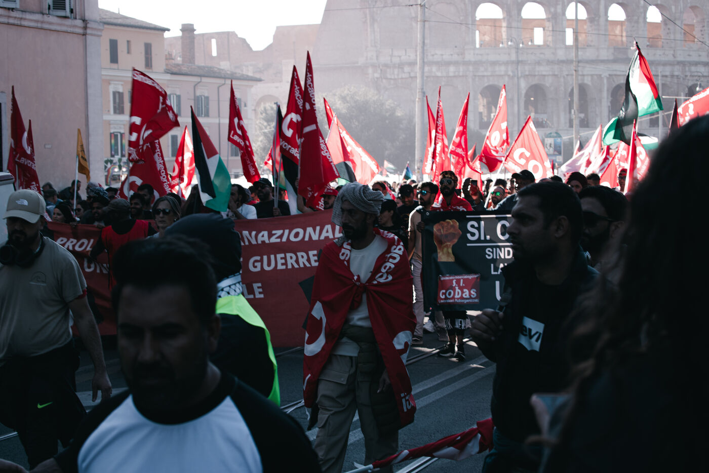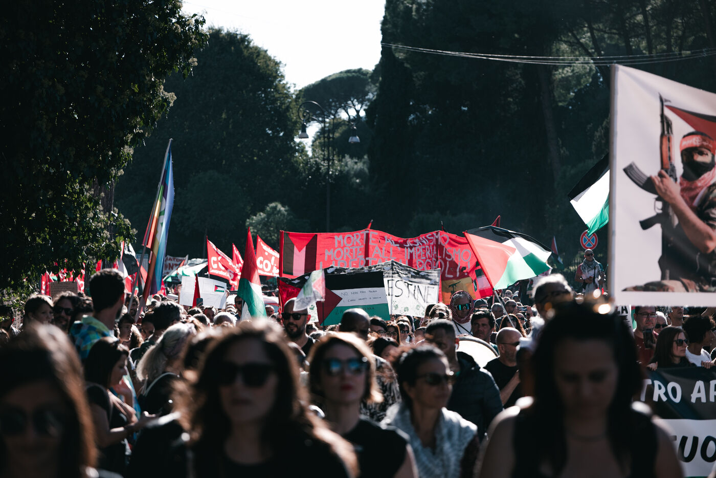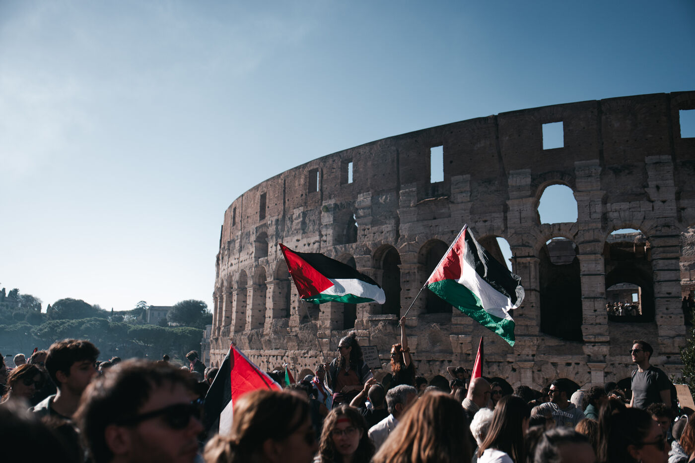 An estimated tens of thousands of people took part in pro-Palestinian demonstrations in Rome on October 4, 2025. Organized with the support of major Italian unions after a nationwide general strike, the marches follow Israel’s interception of the Global Sumud aid flotilla bringing supplies to Gaza. Protesters waved Palestinian and union flags, carried banners and posters, and marched through central landmarks including the Colosseum and San Giovanni in Laterano, temporarily affecting traffic and public transportation.