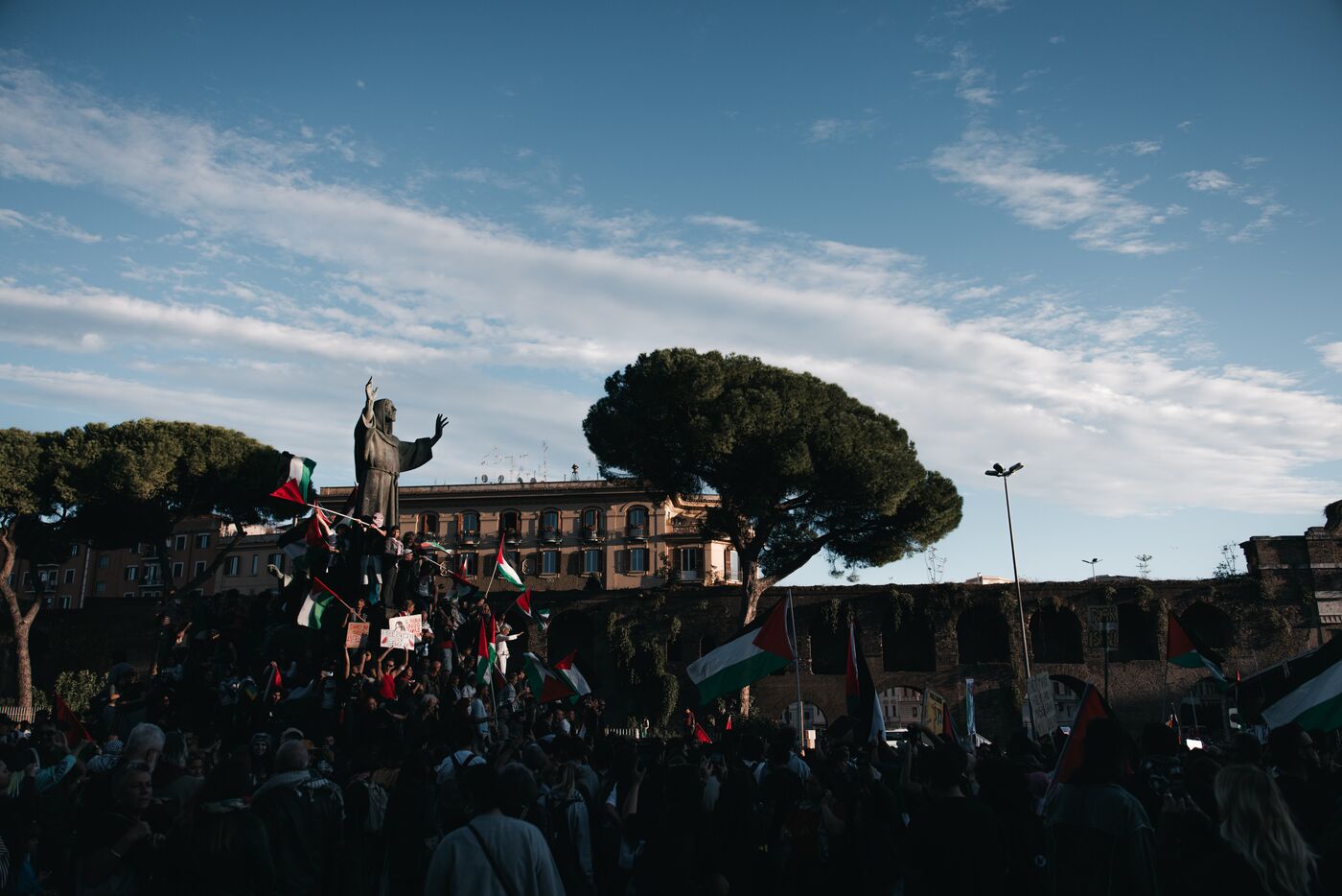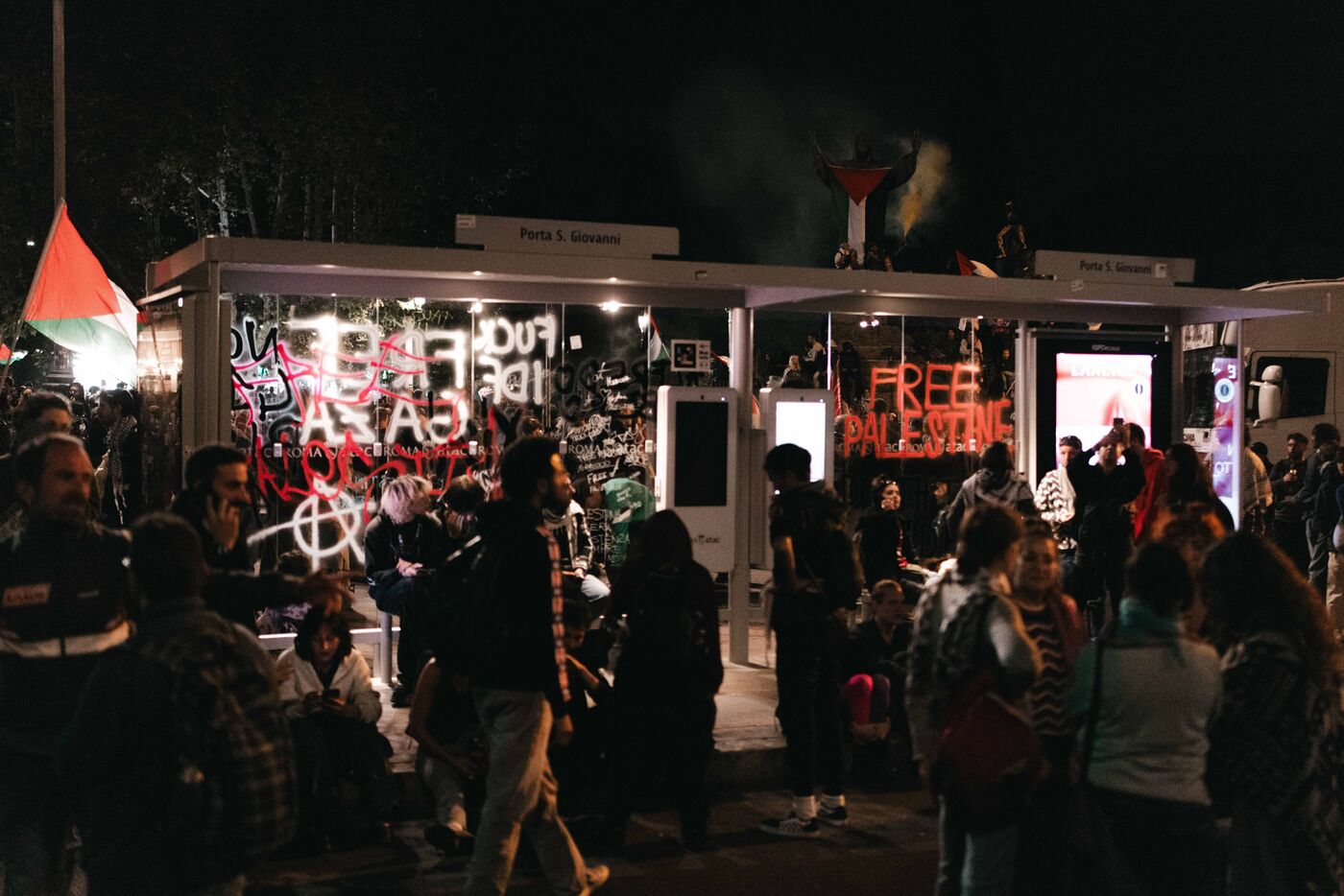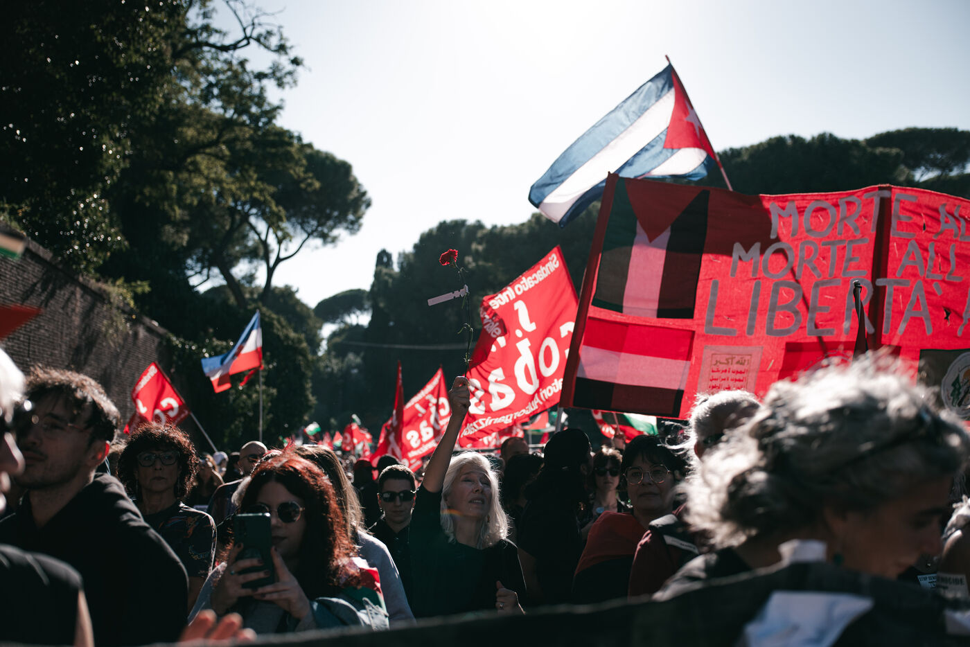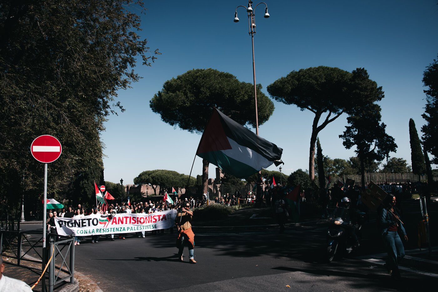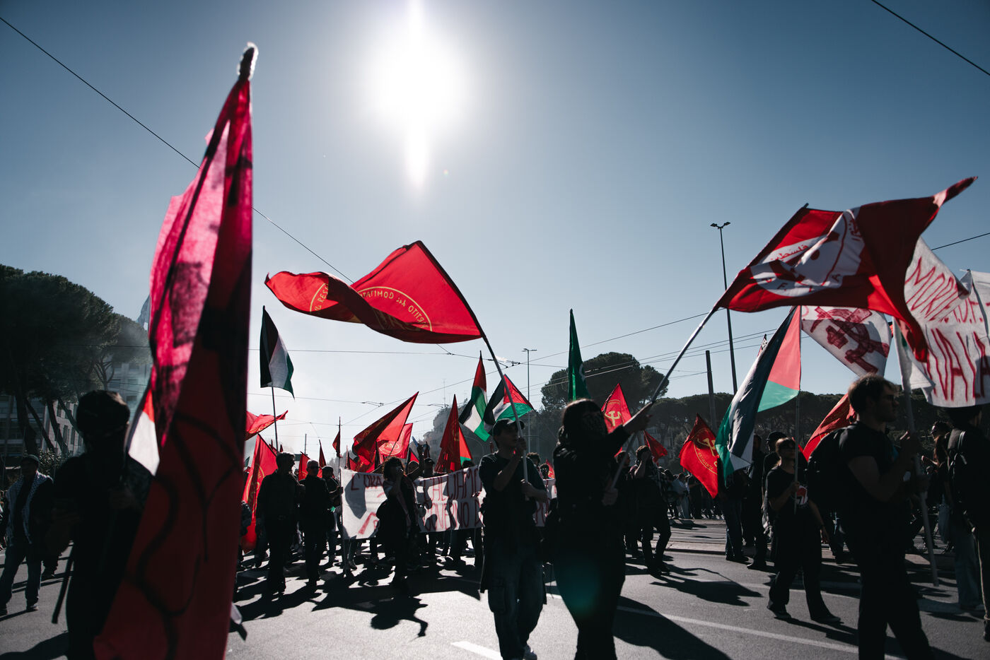 An estimated tens of thousands of people took part in pro-Palestinian demonstrations in Rome on October 4, 2025. Organized with the support of major Italian unions after a nationwide general strike, the marches follow Israel’s interception of the Global Sumud aid flotilla bringing supplies to Gaza. Protesters waved Palestinian and union flags, carried banners and posters, and marched through central landmarks including the Colosseum and San Giovanni in Laterano, temporarily affecting traffic and public transportation.