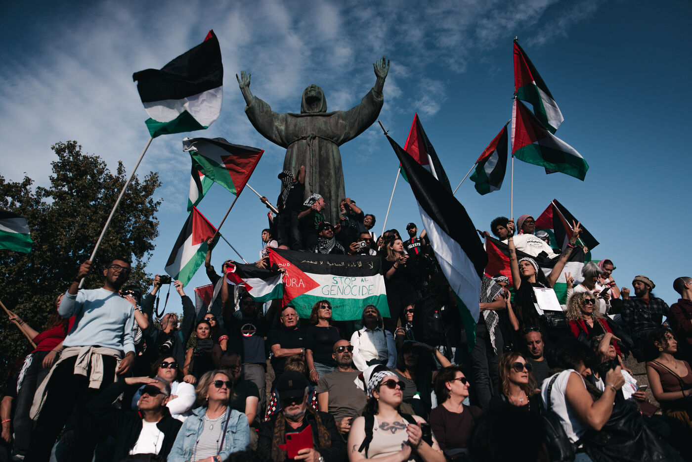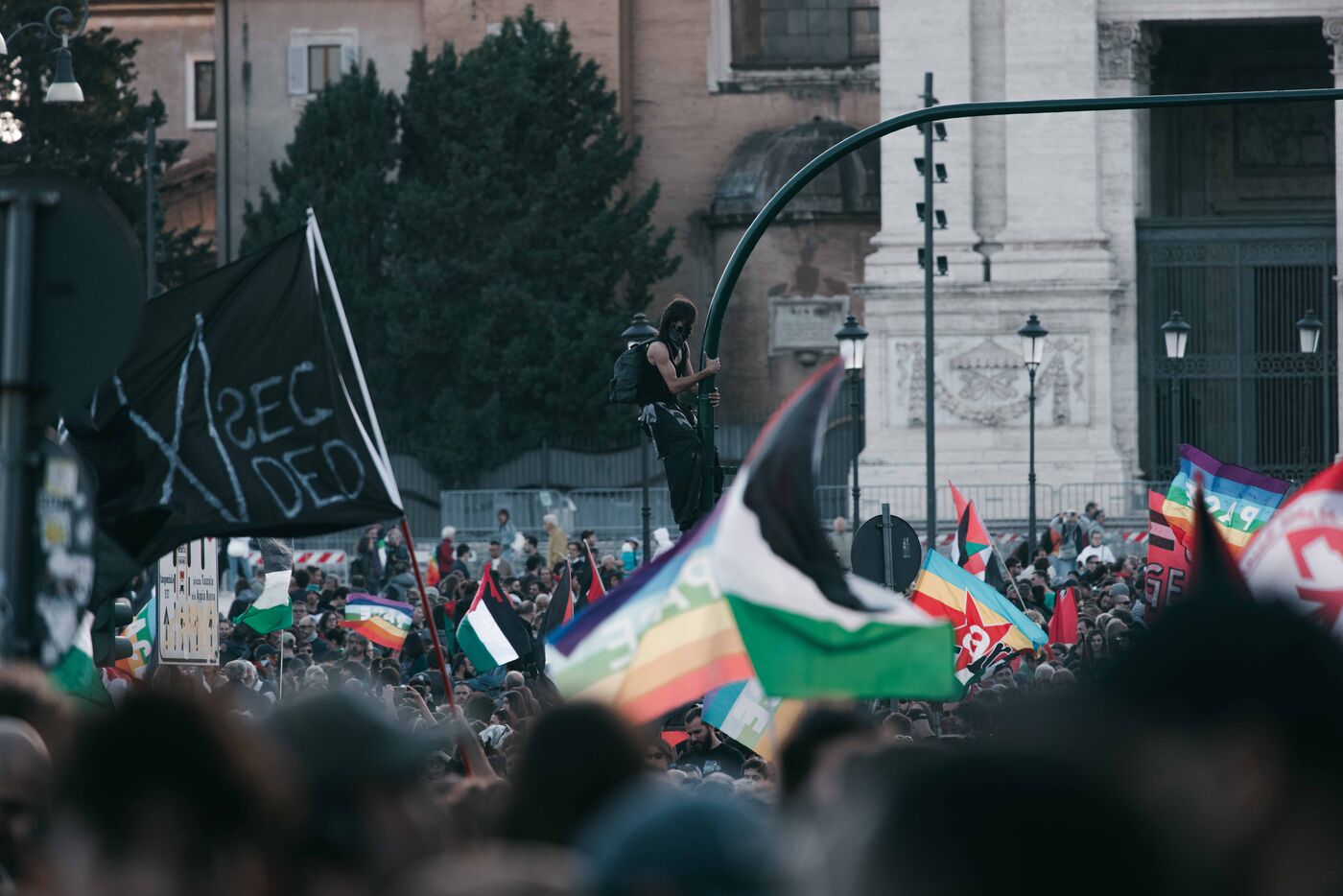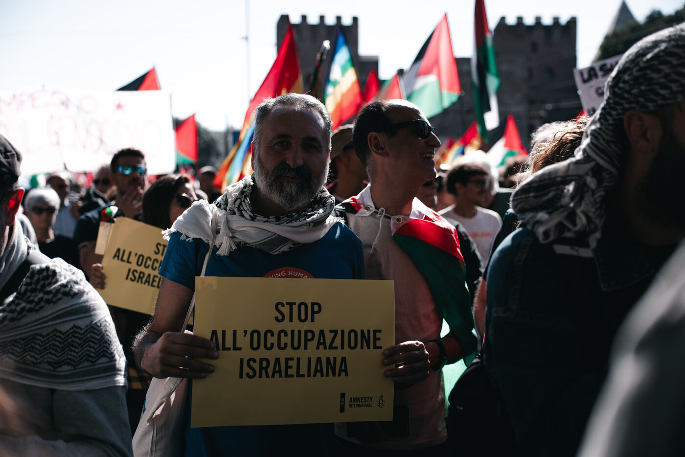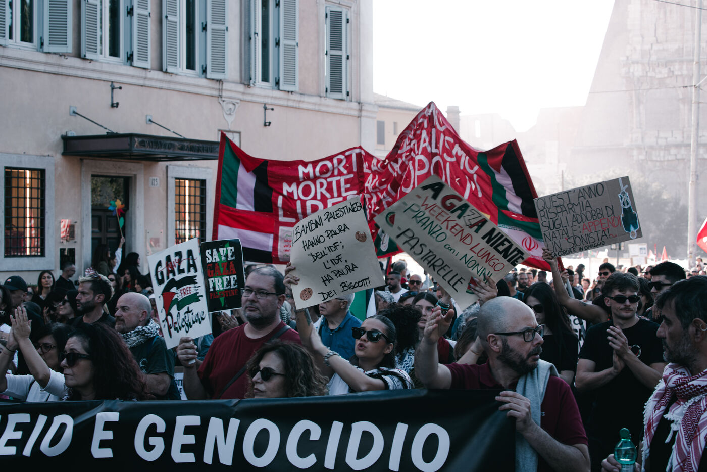 An estimated tens of thousands of people took part in pro-Palestinian demonstrations in Rome on October 4, 2025. Organized with the support of major Italian unions after a nationwide general strike, the marches follow Israel’s interception of the Global Sumud aid flotilla bringing supplies to Gaza. Protesters waved Palestinian and union flags, carried banners and posters, and marched through central landmarks including the Colosseum and San Giovanni in Laterano, temporarily affecting traffic and public transportation.