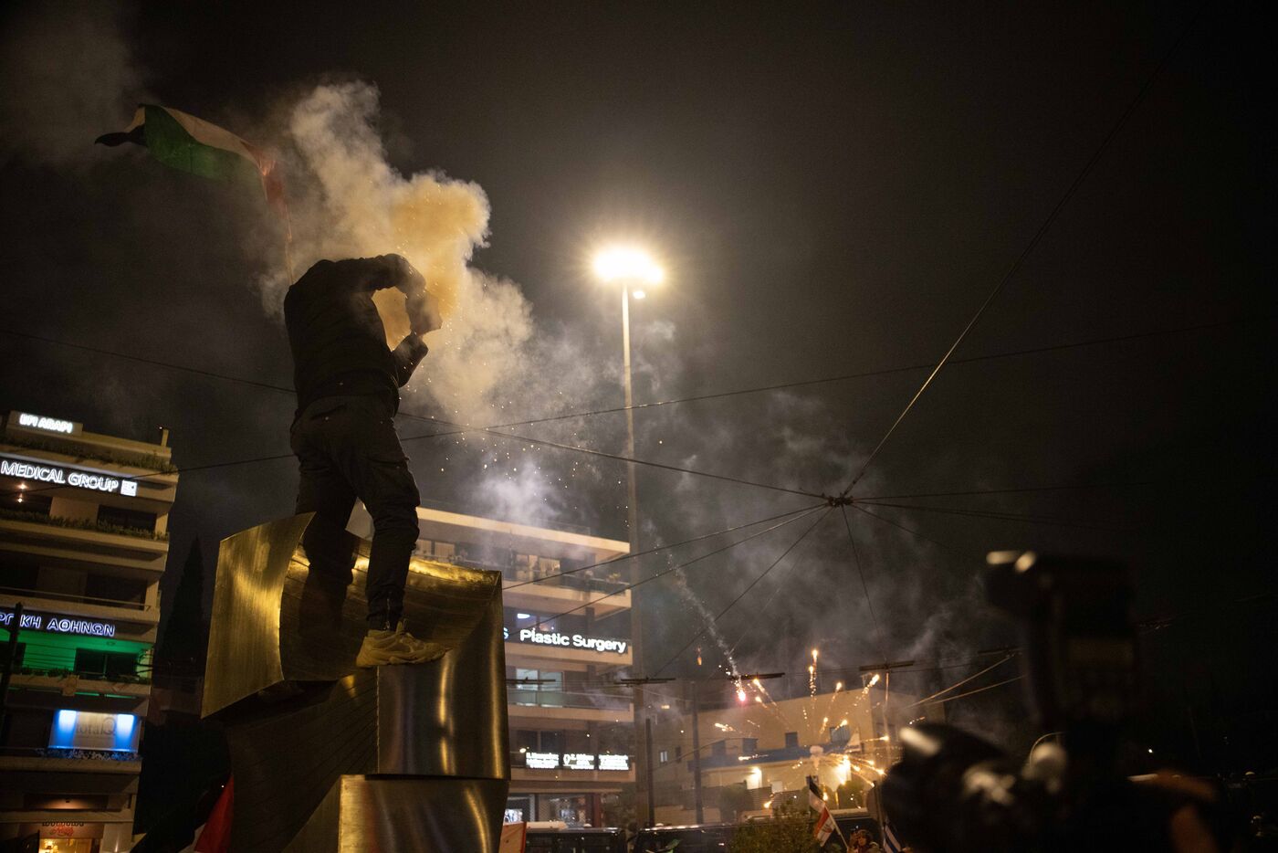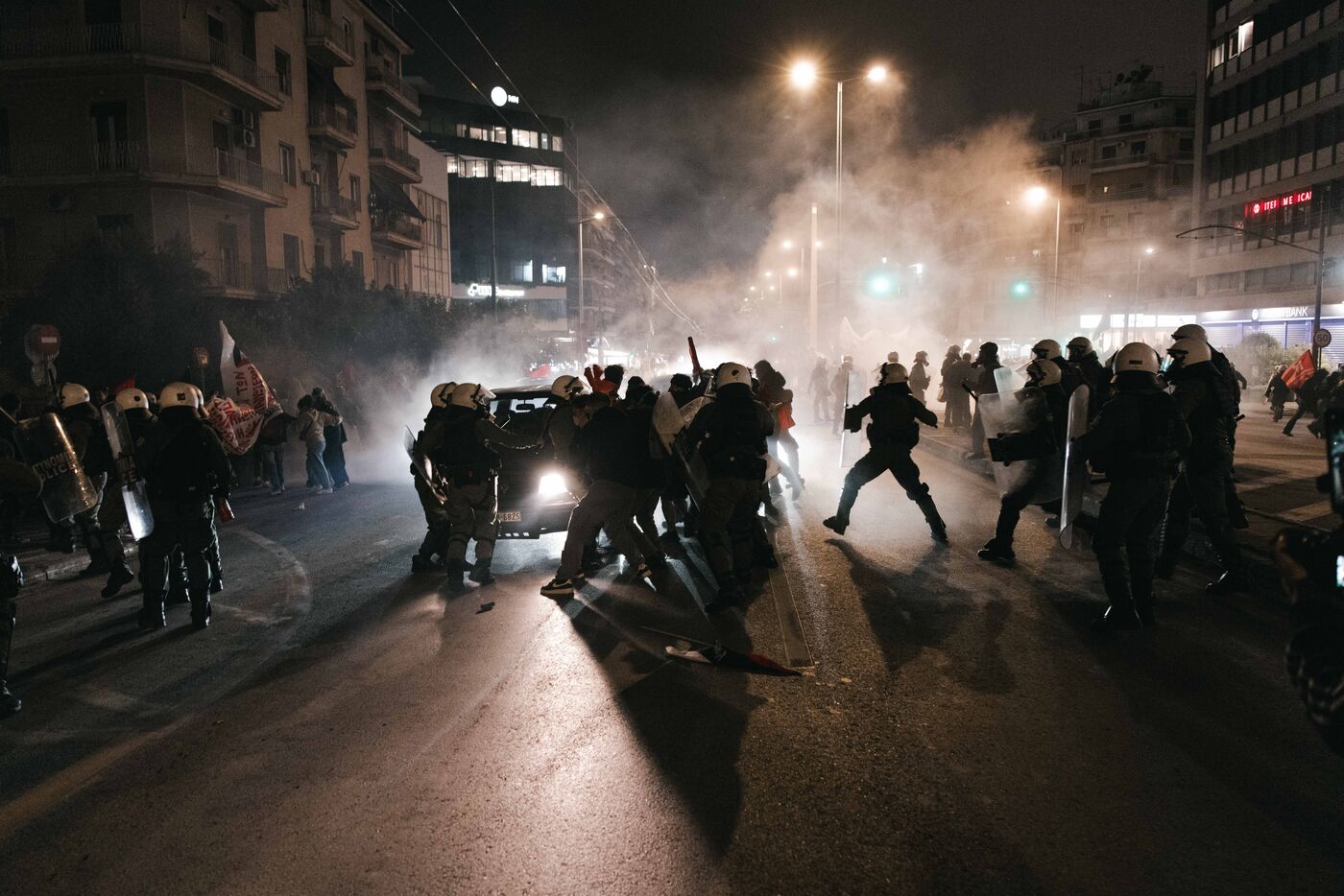 Des milliers de manifestants pro-palestiniens défilent dans les rues centrales en brandissant des drapeaux et des banderoles près des ambassades israélienne et américaine à Athènes, Grèce le 7 octobre 2025. La manifestation a été organisée par l'Open Anti-Zionist Assembly, le Palestinian Youth Movement et d'autres groupes de solidarité pour marquer deux ans depuis le début du génocide en Palestine. Les participants ont scandé des slogans et exprimé leur solidarité avec le peuple palestinien.