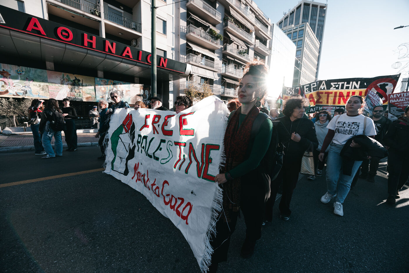 On November 29, 2025, protesters gathered in Athens for a march marking the International Day of Solidarity with the Palestinian People. Beginning at Parko Eleftherias and moving toward the Israeli Embassy, participants waved Palestinian flags, carried banners, and chanted for the protection of civilians and respect for international law. The event was organized by solidarity networks, community organizations, unions, and activists who condemned ongoing violence in Gaza and expressed support for Palestinian rights. The demonstration highlighted ongoing public concern in Greece for an immediate ceasefire and humanitarian access, along with broader calls for justice and liberation for the Palestinian people.