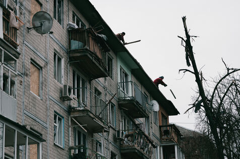 During a Russian aerial attack on Kyiv on December 23, 2025, debris fell onto a five-storey residential building in the Sviatoshynskyi district, causing partial damage to the roof and facade, Ukrainian police said. Building structures were not critically damaged. Four civilians were injured, including a teenage girl who was hospitalized, while others received medical assistance on site or on an outpatient basis.