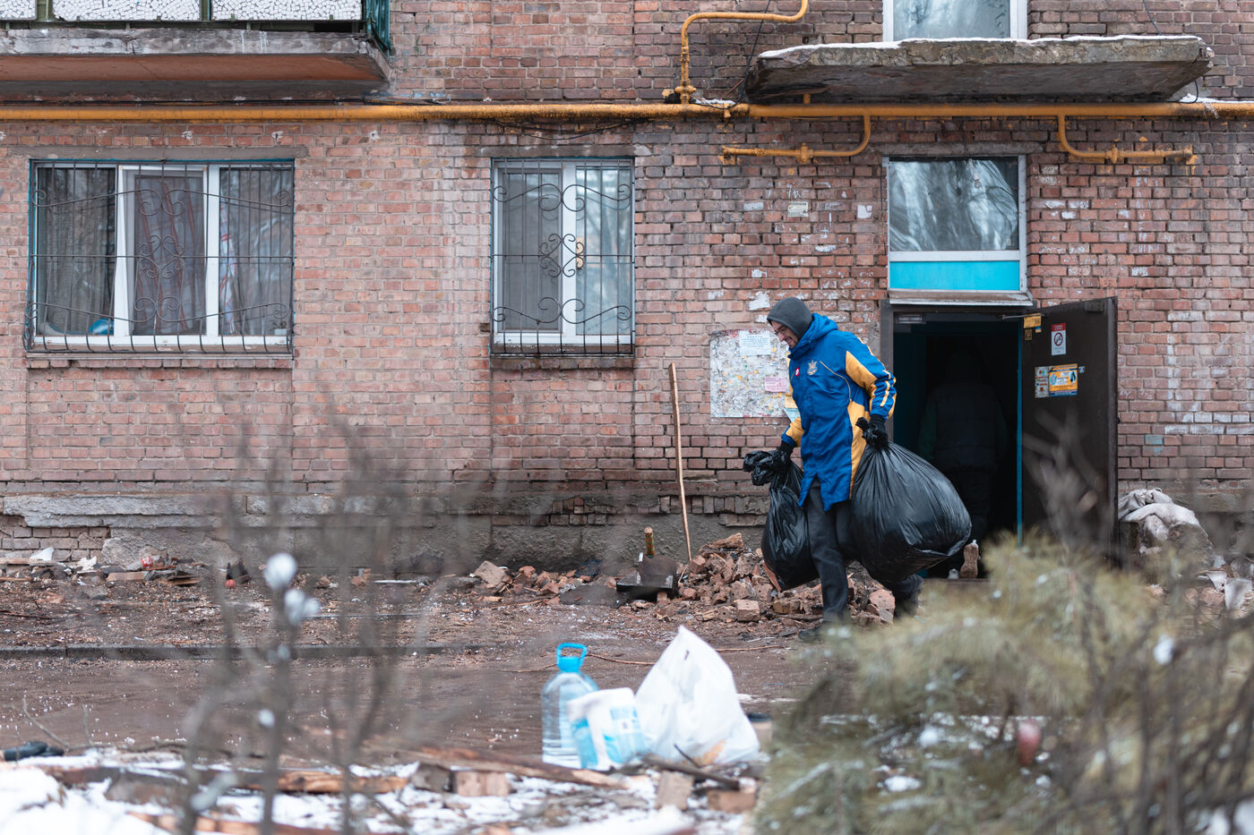 On December 27, 2025, Kyiv was targeted by a Russian Shahed drone attack that struck residential areas and infrastructure, including buildings on Oleny Telihy Street, damaging apartment buildings and disrupting daily life. On December 28, emergency services continued clearing debris, securing unstable structures, and assisting residents as civilians took part in cleanup efforts around damaged buildings and nearby streets. The attack is part of ongoing Russian aerial assaults on the Ukrainian capital amid the full-scale war.